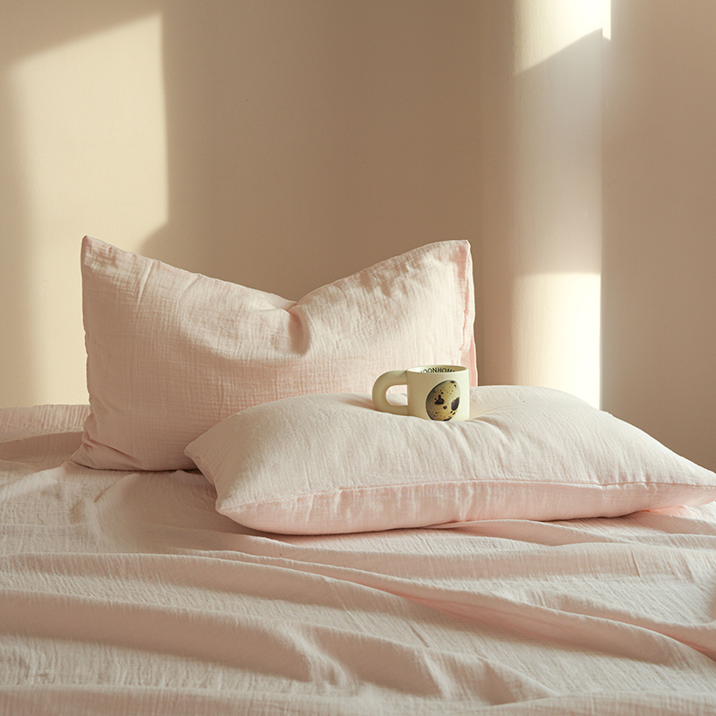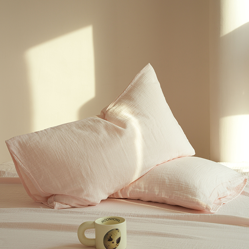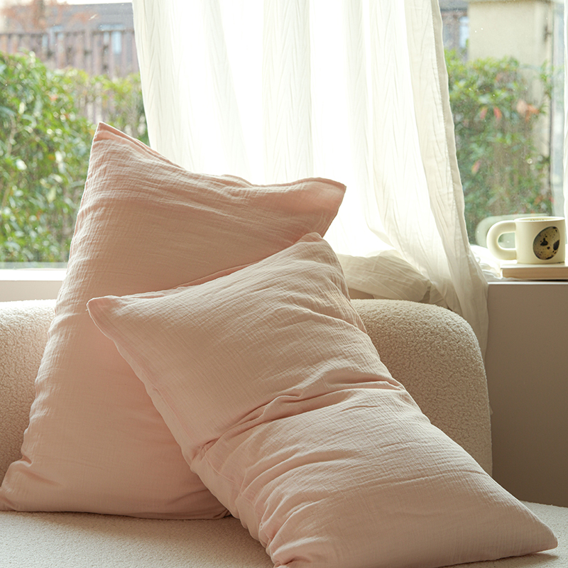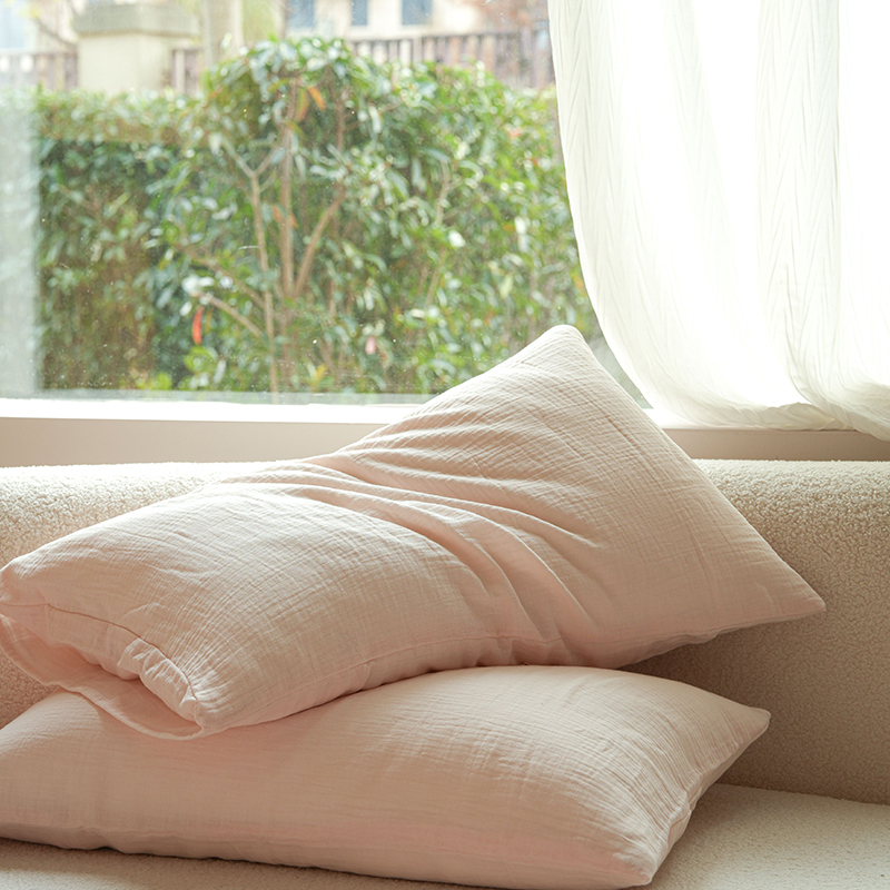 简纯主义 2025新款全棉有机雾感纱双层皱皱纱系列单枕套棉花糖