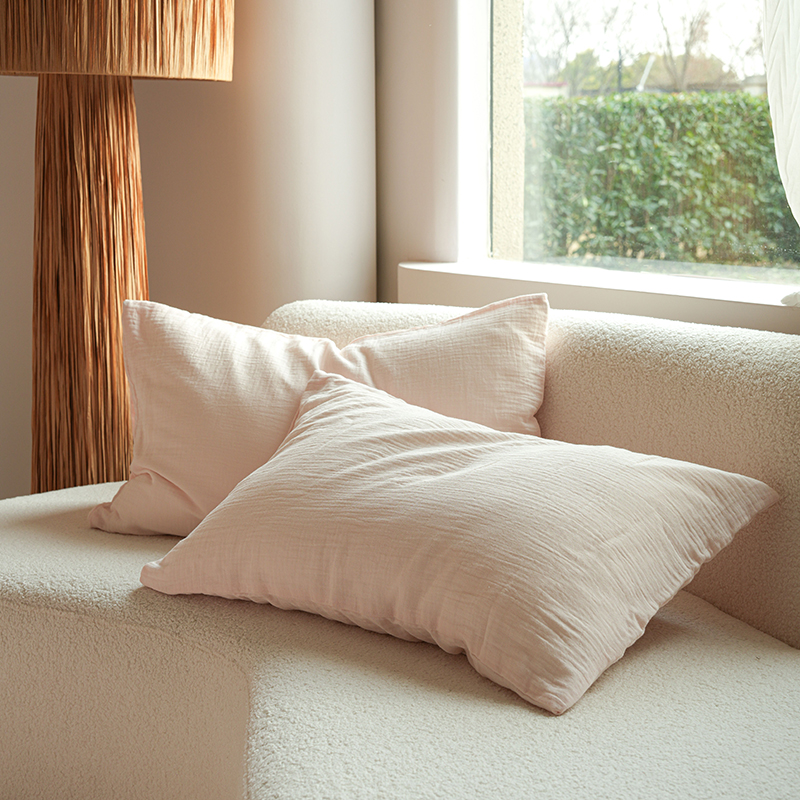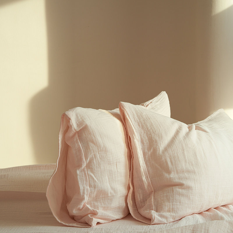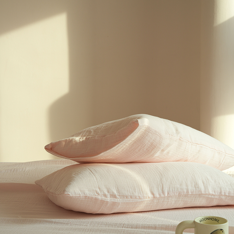 商品名称:简纯主义 2025新款全棉有机雾感纱双层皱皱纱系列单枕套棉花糖