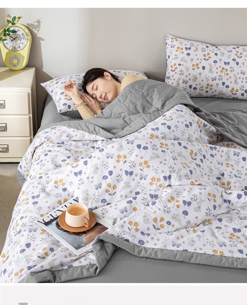 • 91家纺网 家纺一手货源 找家纺 慕木家纺 2025新款A类水洗棉印花新疆棉花夏被空调被(抽空压缩可供跨境) 春熙花语