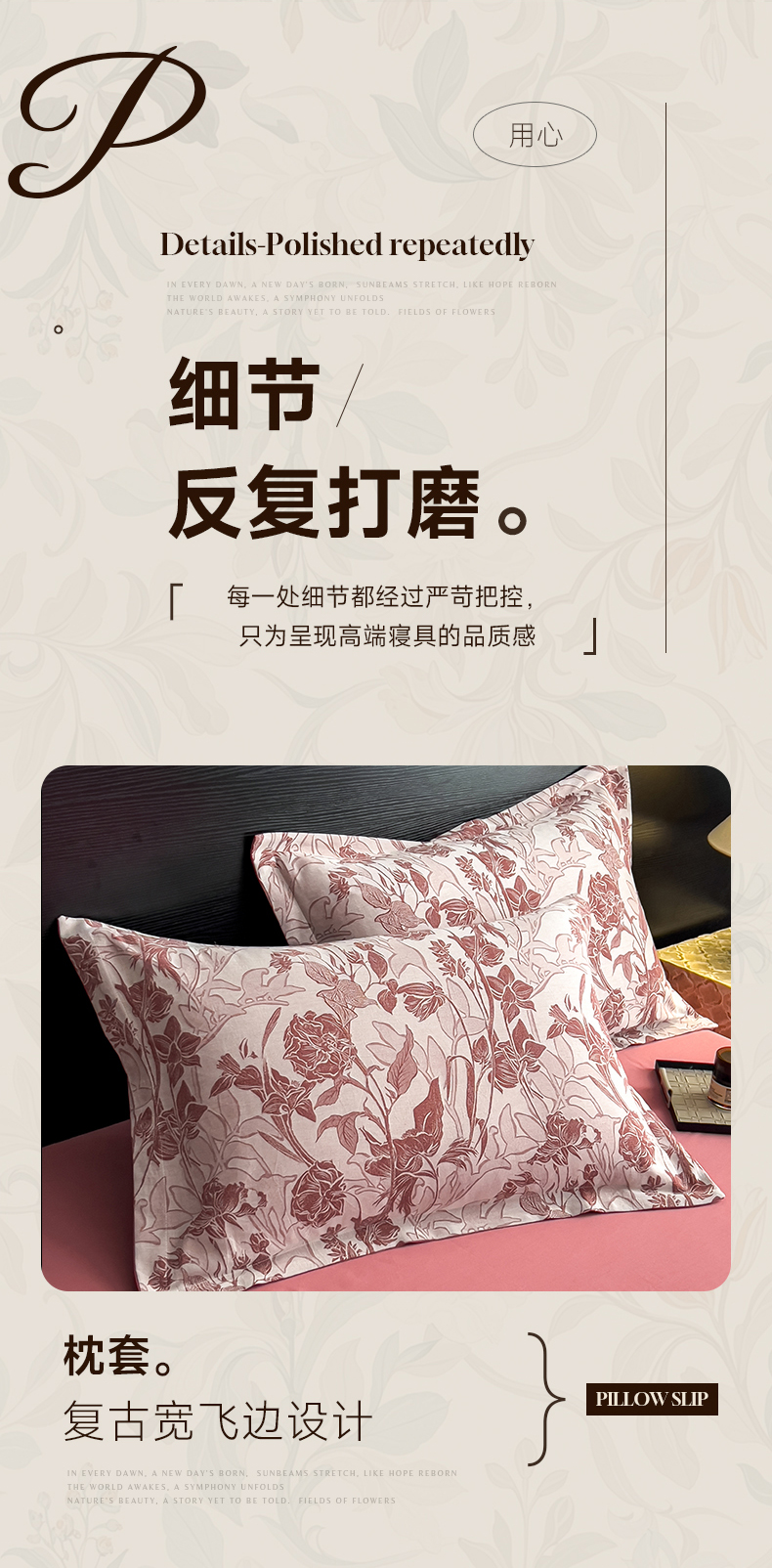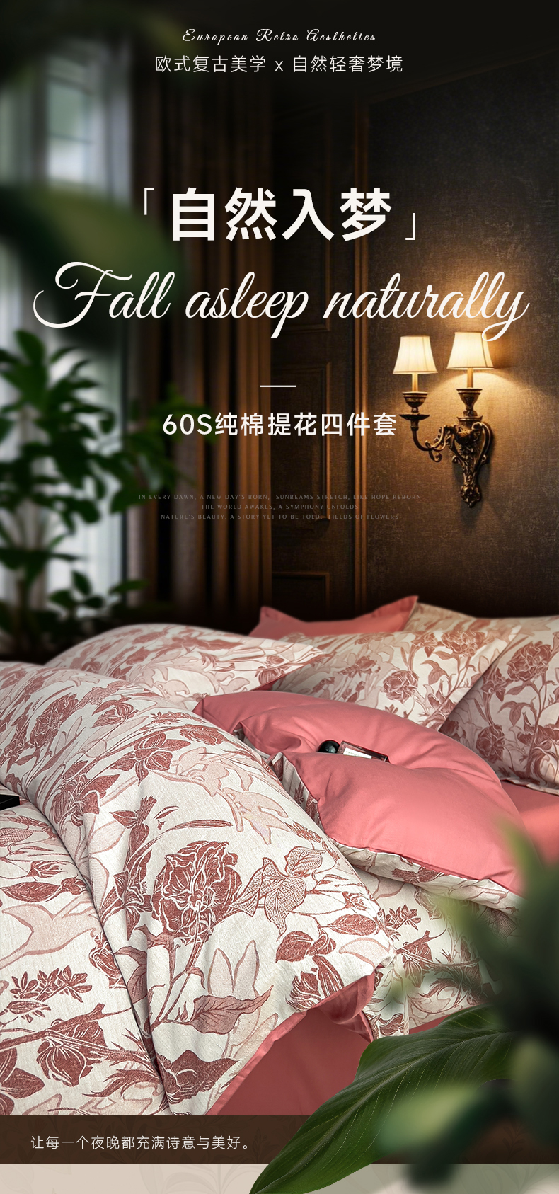 倾慕家纺 2025新款60S提花全棉单品被套 洛丽塔红