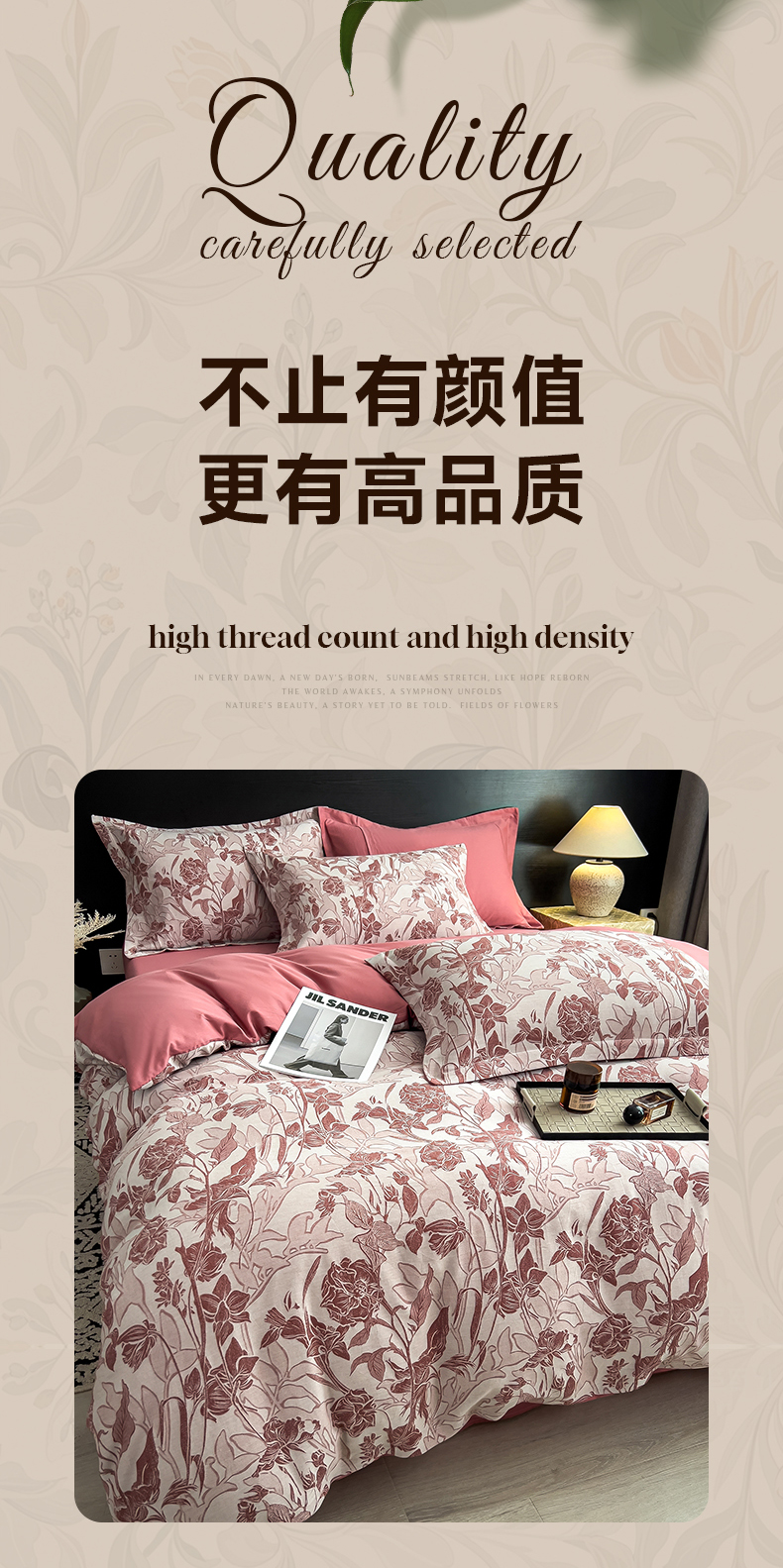 (总)倾慕 2025新款数码纯棉加厚磨毛产品系列四件套,蝶舞粉,蕾丝花粉,丽思黄,丽思兰,绿茵,梦幻屋紫,清风来咖,晚笙粉,云嘉粉,芷兰粉