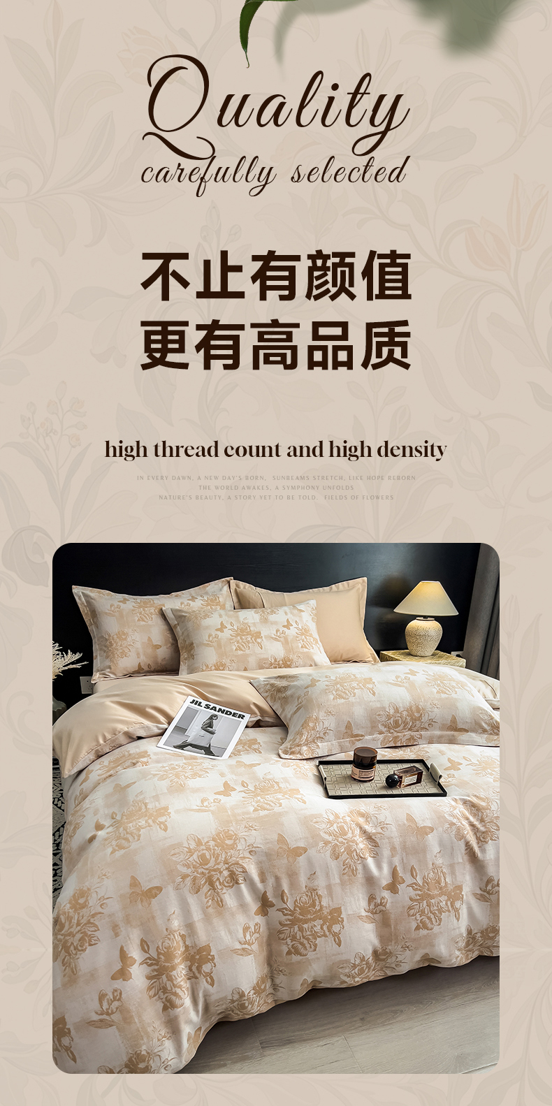 商品名称:倾慕家纺 2025新款60S提花全棉单品被套 知画卡其