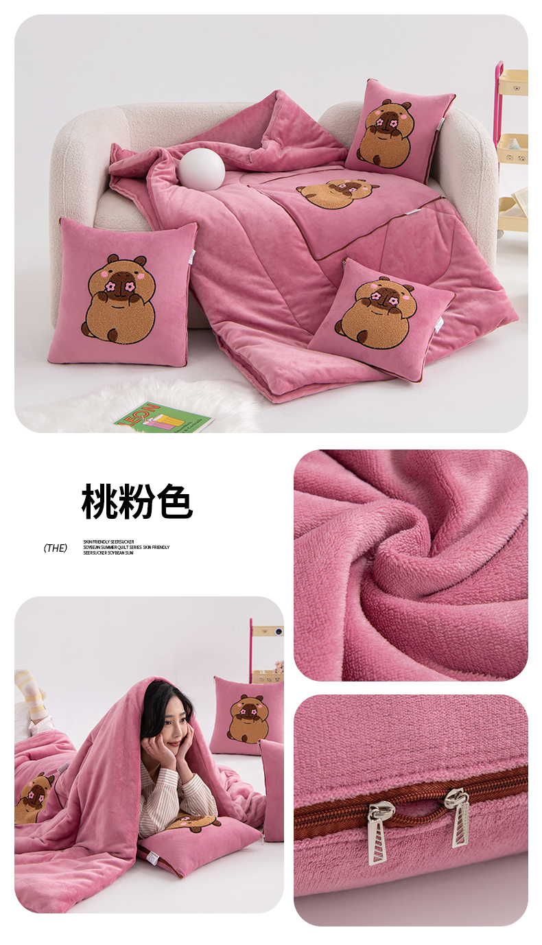 宝马家纺(原梦童画)2025新款卡皮巴拉牛奶绒毛巾绣抱枕被 桃粉色