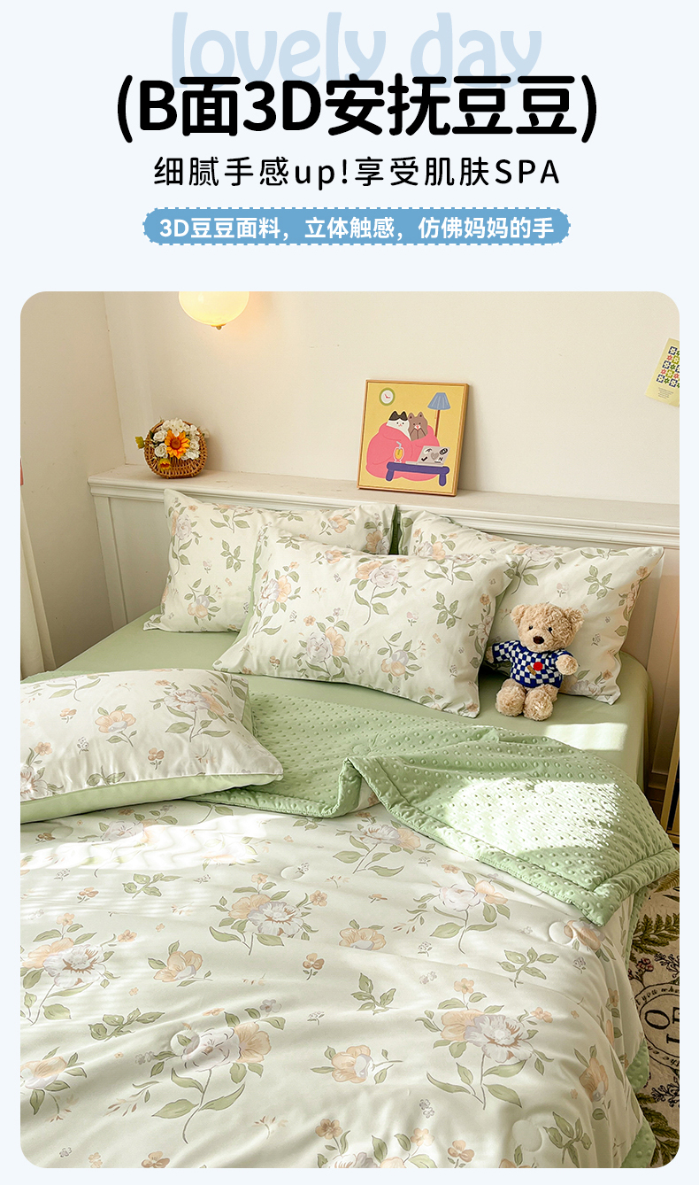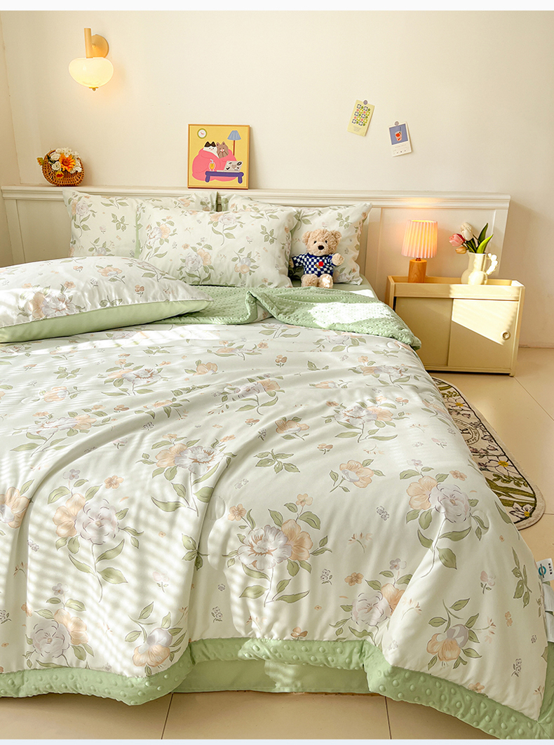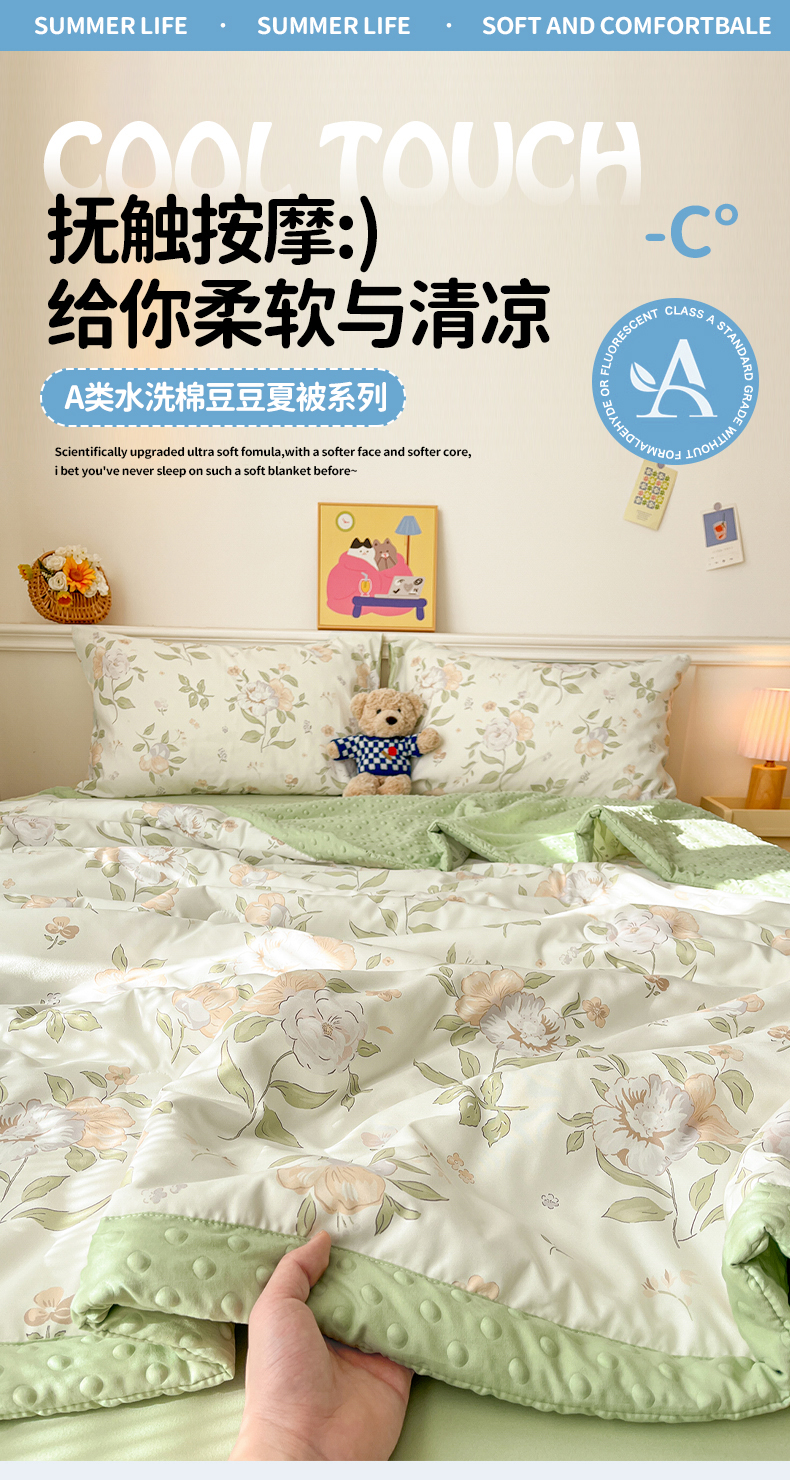 盛秋家纺 2026新款A类水洗棉豆豆夏被系列 铃兰+灰绿