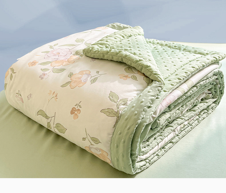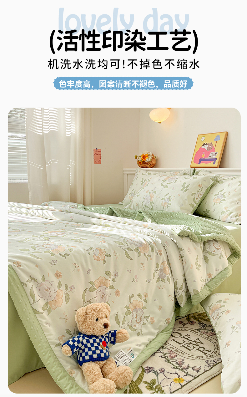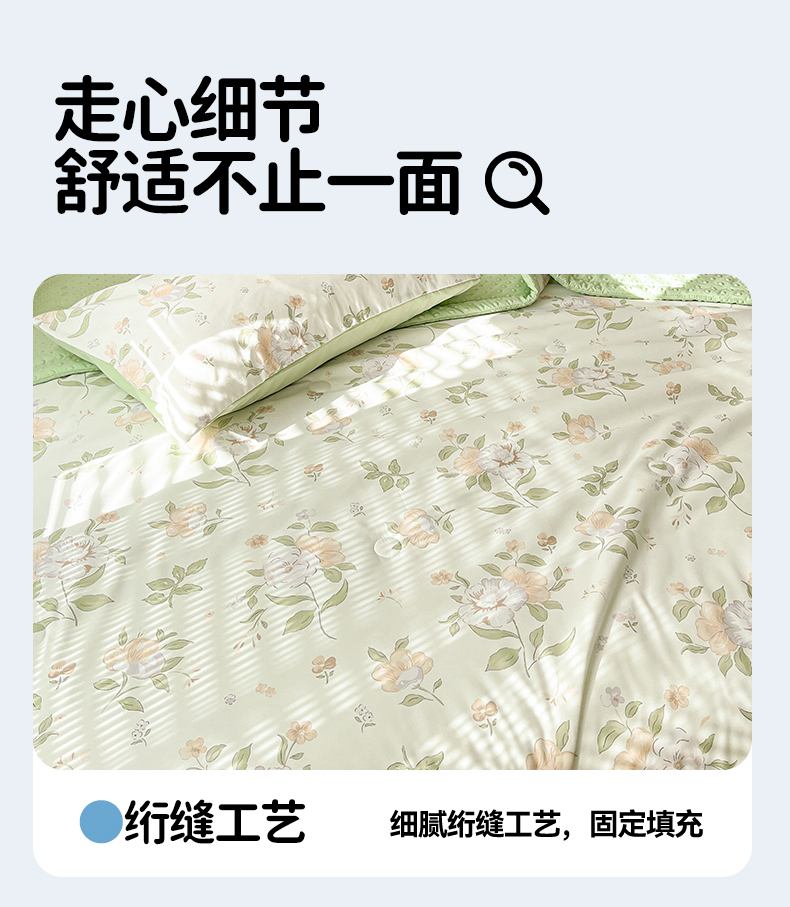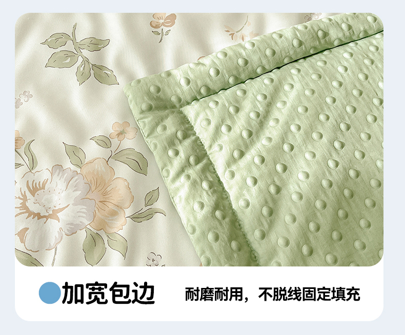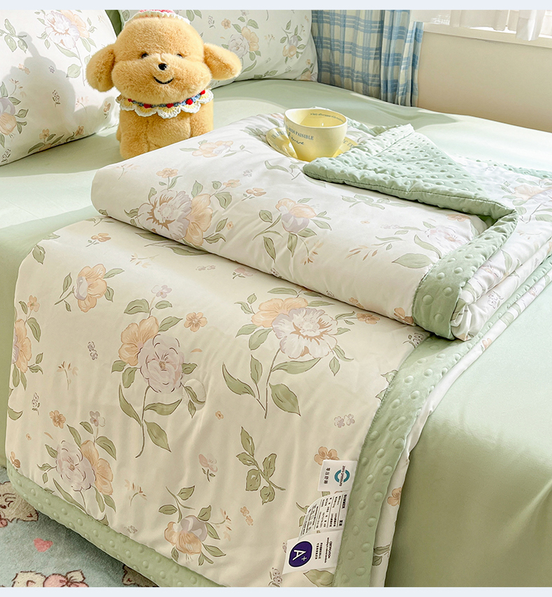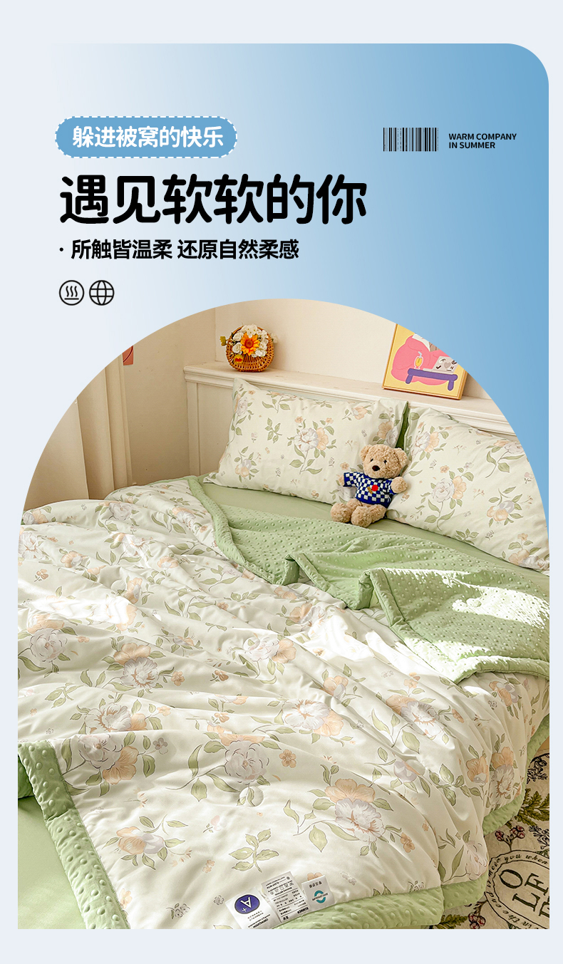 • 91家纺网 家纺一手货源 找家纺 盛秋家纺 2026新款A类水洗棉豆豆夏被系列 铃兰+灰绿