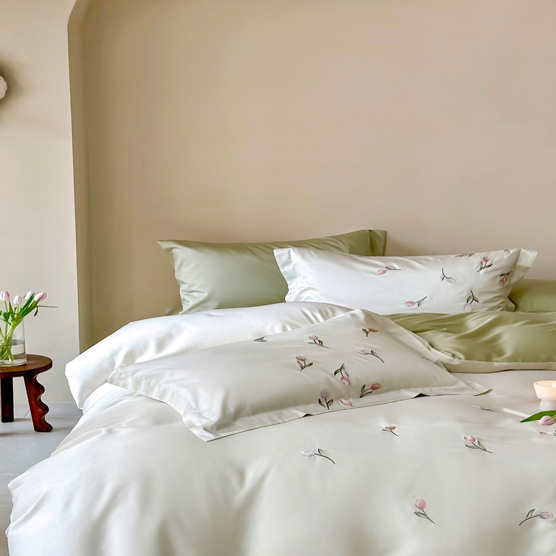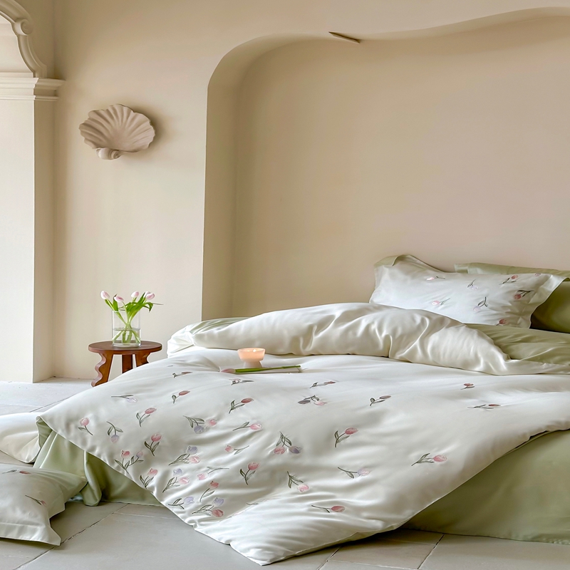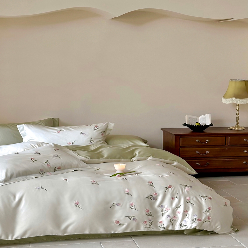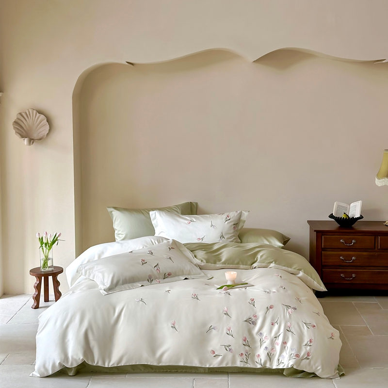佳汐蓝家纺 2025新款春夏新品TENCEL兰精天丝四件套绣花系列 墨菲花园·珍珠绿