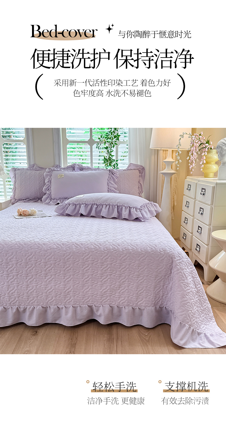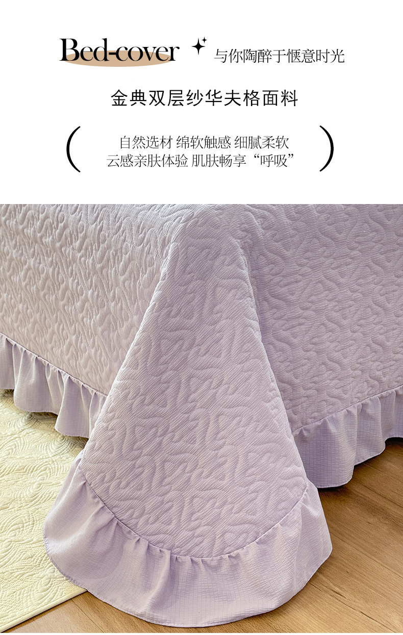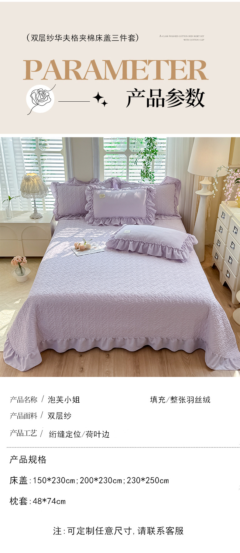 当前位置: 91家纺网 > 商品网购 > 床品套件 > 三件套 > 花香四季家纺 2025新款泡芙小姐双层纱华夫格柔棉夹棉绗缝床盖床垫子单件三件套 泡芙小姐-紫