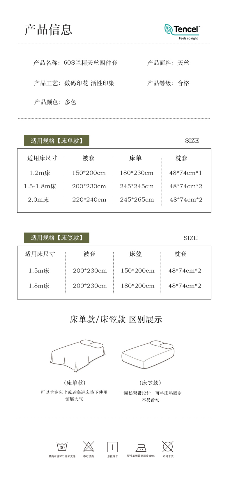 1.5m床笠款四件套 | ¥190.00 |