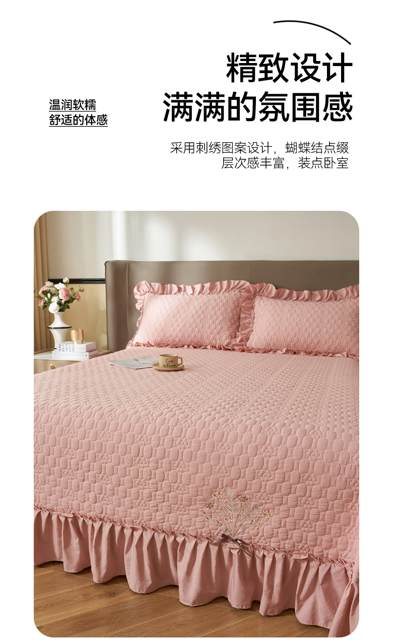 商品名称:2025新款A类多功能床盖单品单床盖床盖单件-情缘 浅豆沙