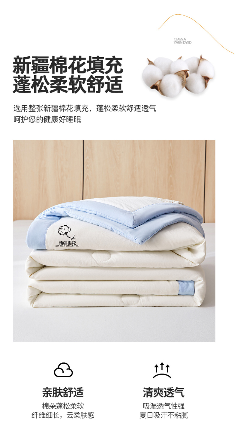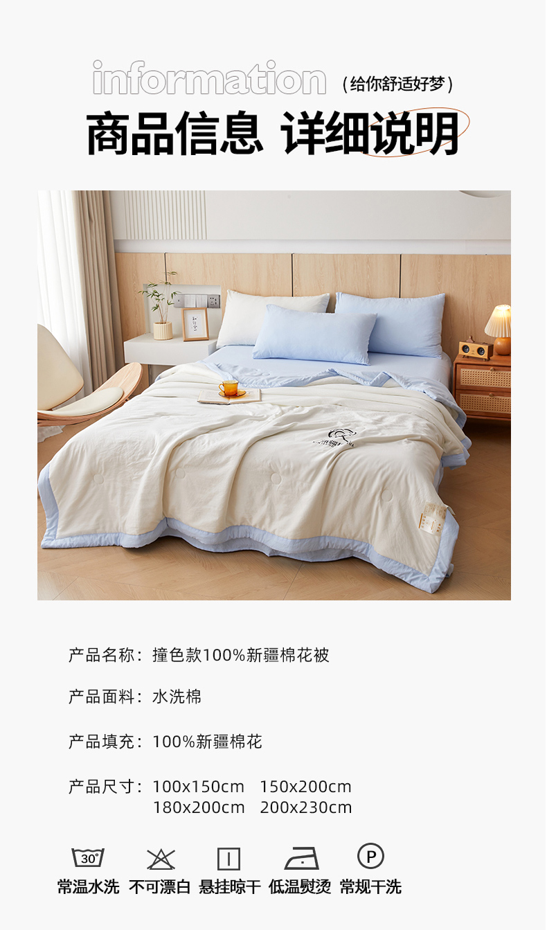 商品名称:爱屋及屋 2025新款纯色撞色100%棉花填充夏被夏凉被空调被夏季可机洗薄被子被芯 浅灰+天蓝