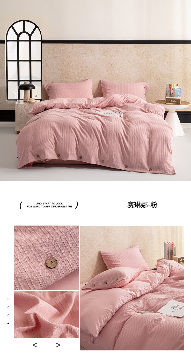 恋之语 2025新款亲肤舒适提花纽扣款四件套 赛琳娜-粉
