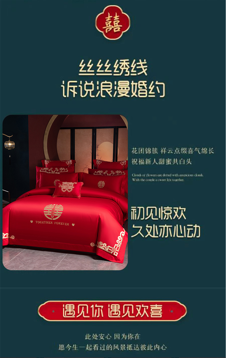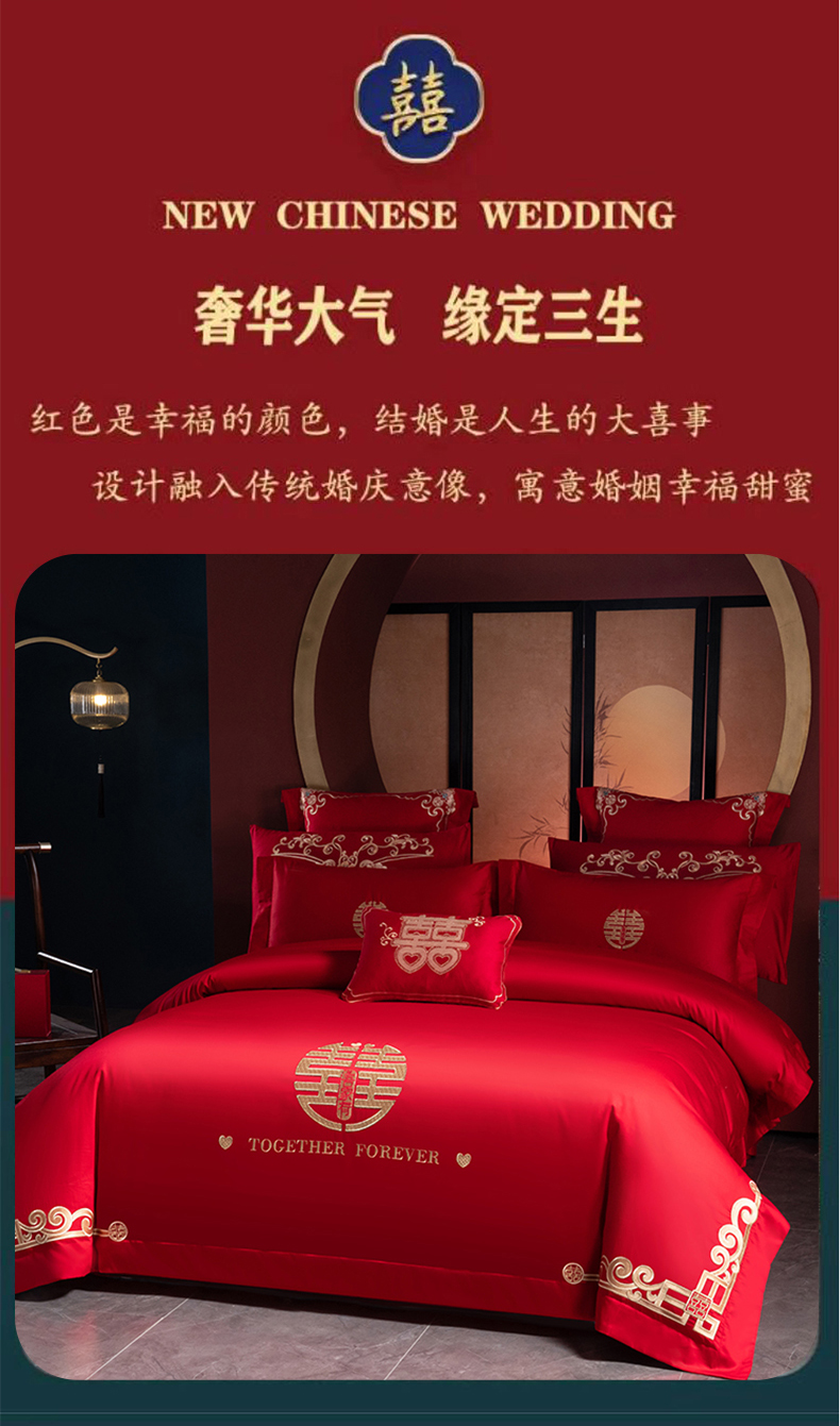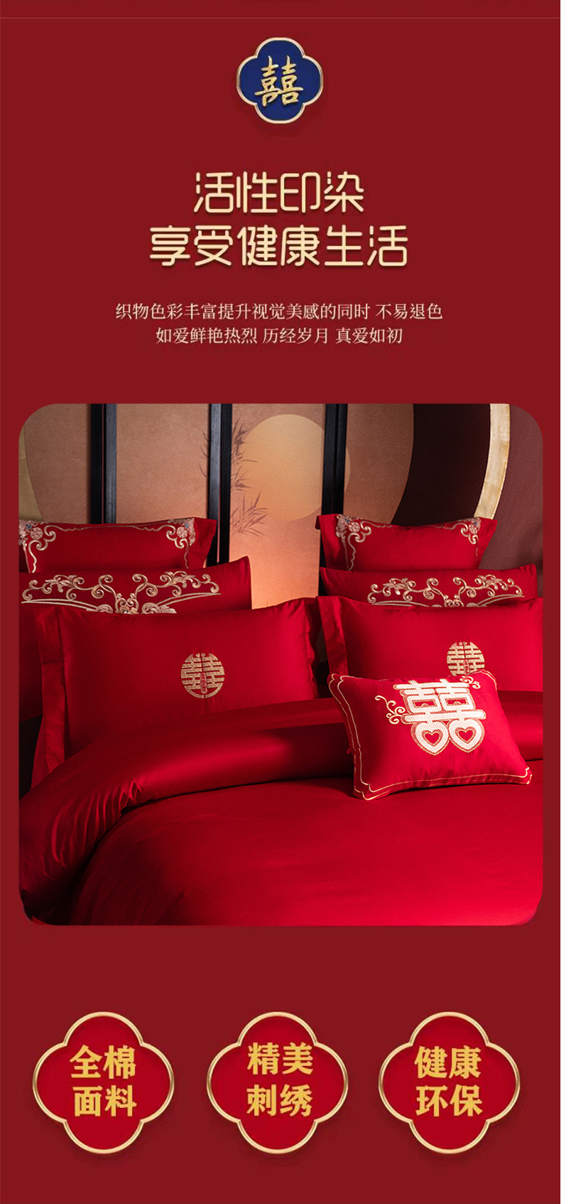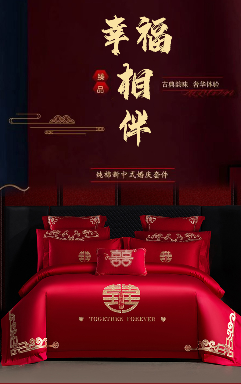 当前位置: 91家纺网 > 商品网购 > 床品套件 > 多件套 > 多件套 > 博之洋婚庆 2025新款全棉长绒棉刺绣新中式婚庆系列多件套 幸福相伴