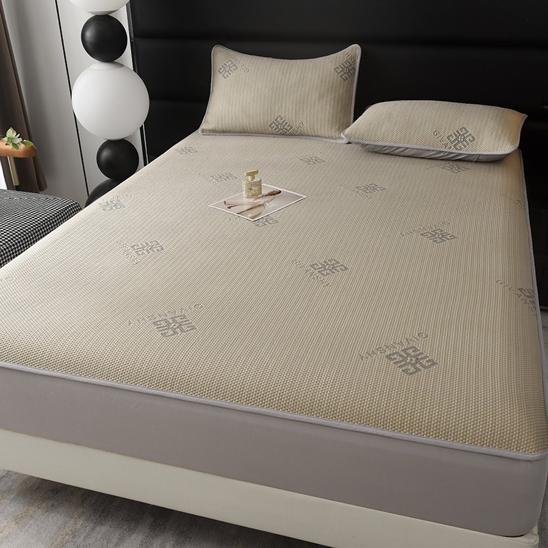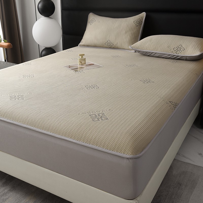 • 91家纺网 家纺一手货源 找家纺 (总)绒多多 2025新款A类凉感冰豆豆席子凉席床笠款,绅士灰,豆沙粉,果绿,薄荷绿,雾霾蓝,香槟色