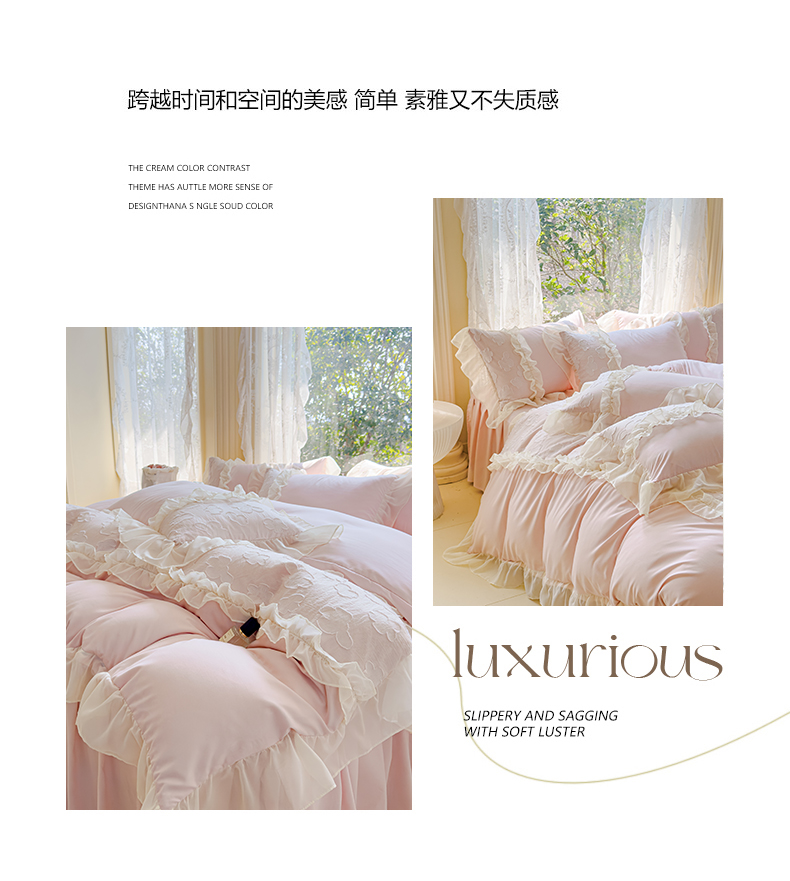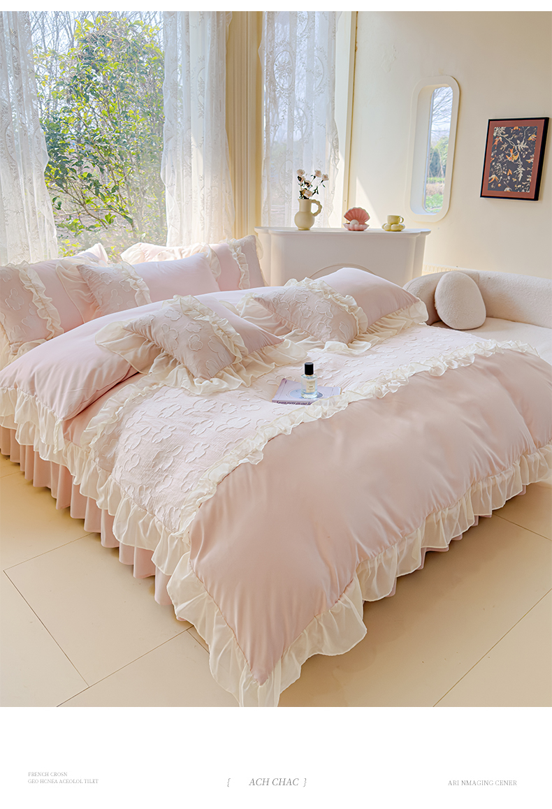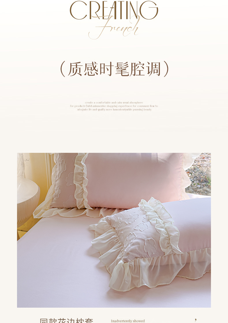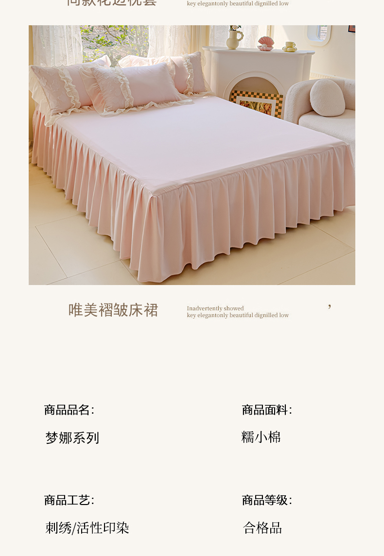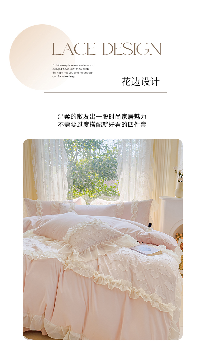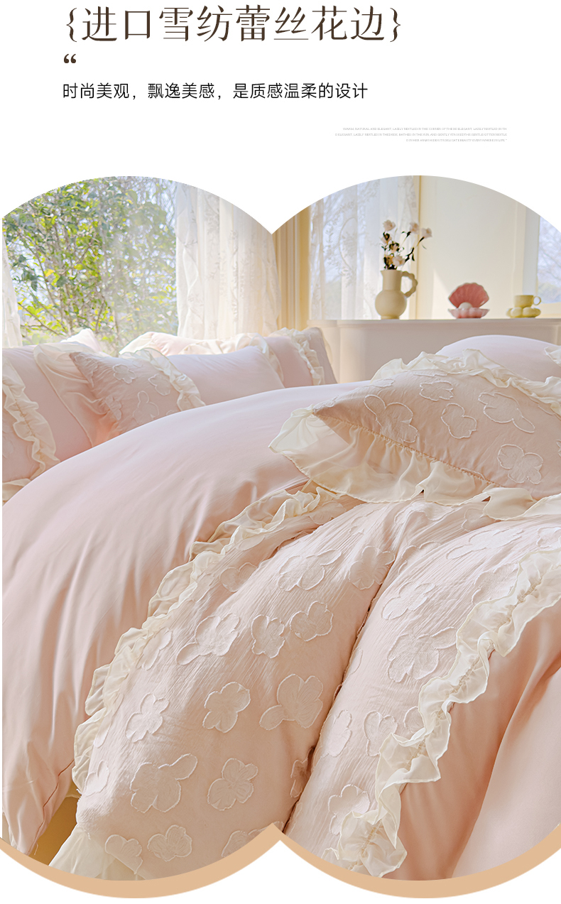 当前位置: 91家纺网 > 商品网购 > 床品套件 > 四件套 > 全棉普通四件套 > 狂想家 2025新款立体蕾丝花边梦娜系列四件套 梦娜茶花粉