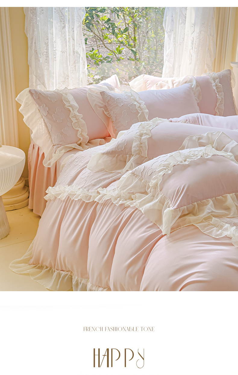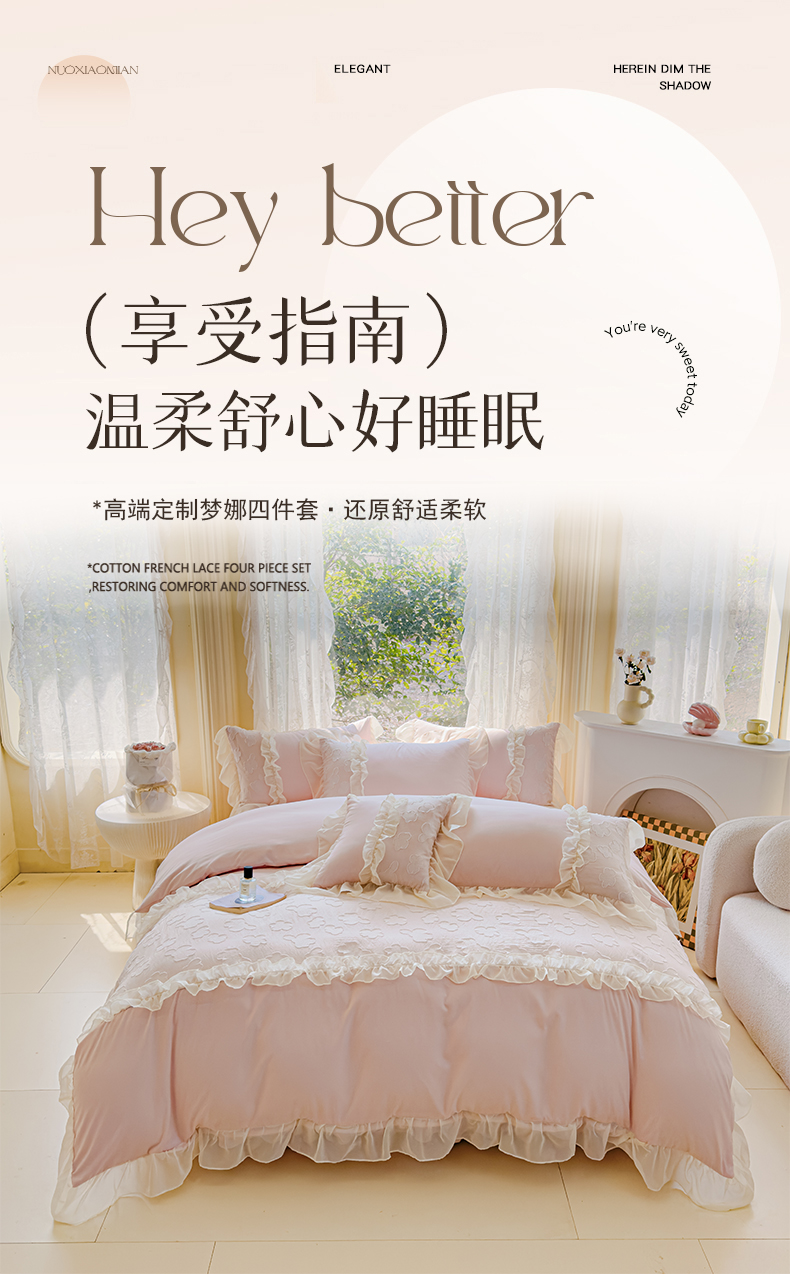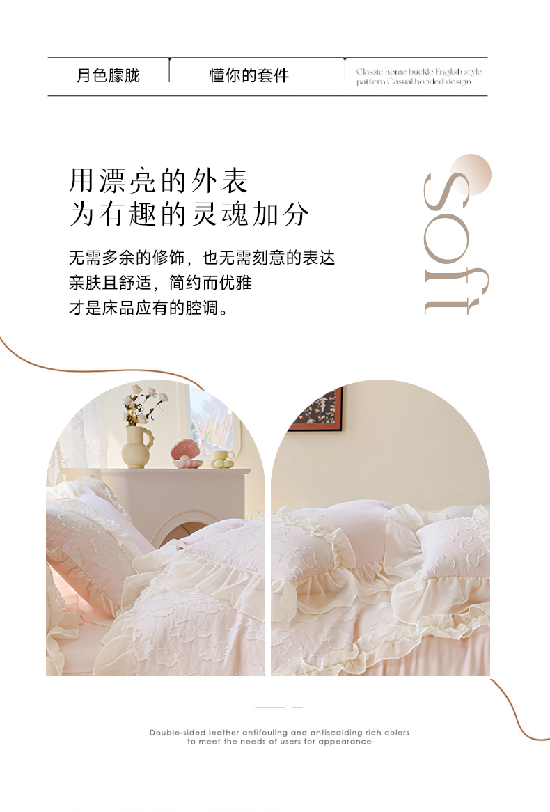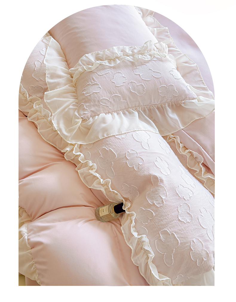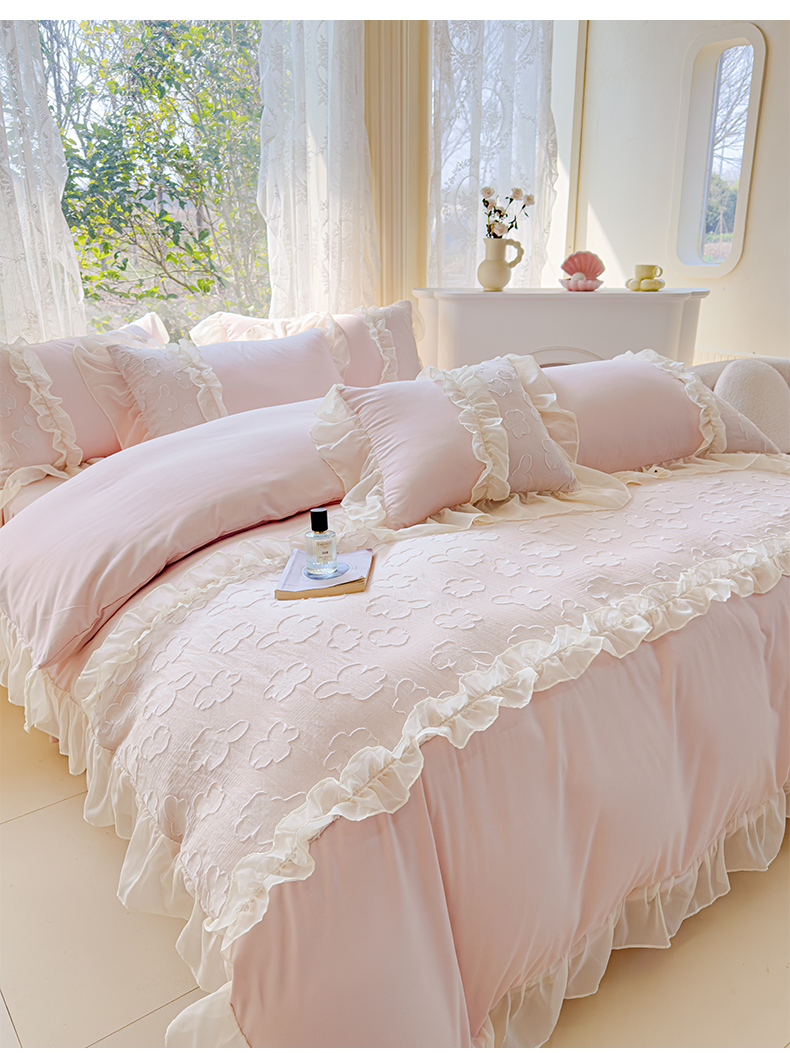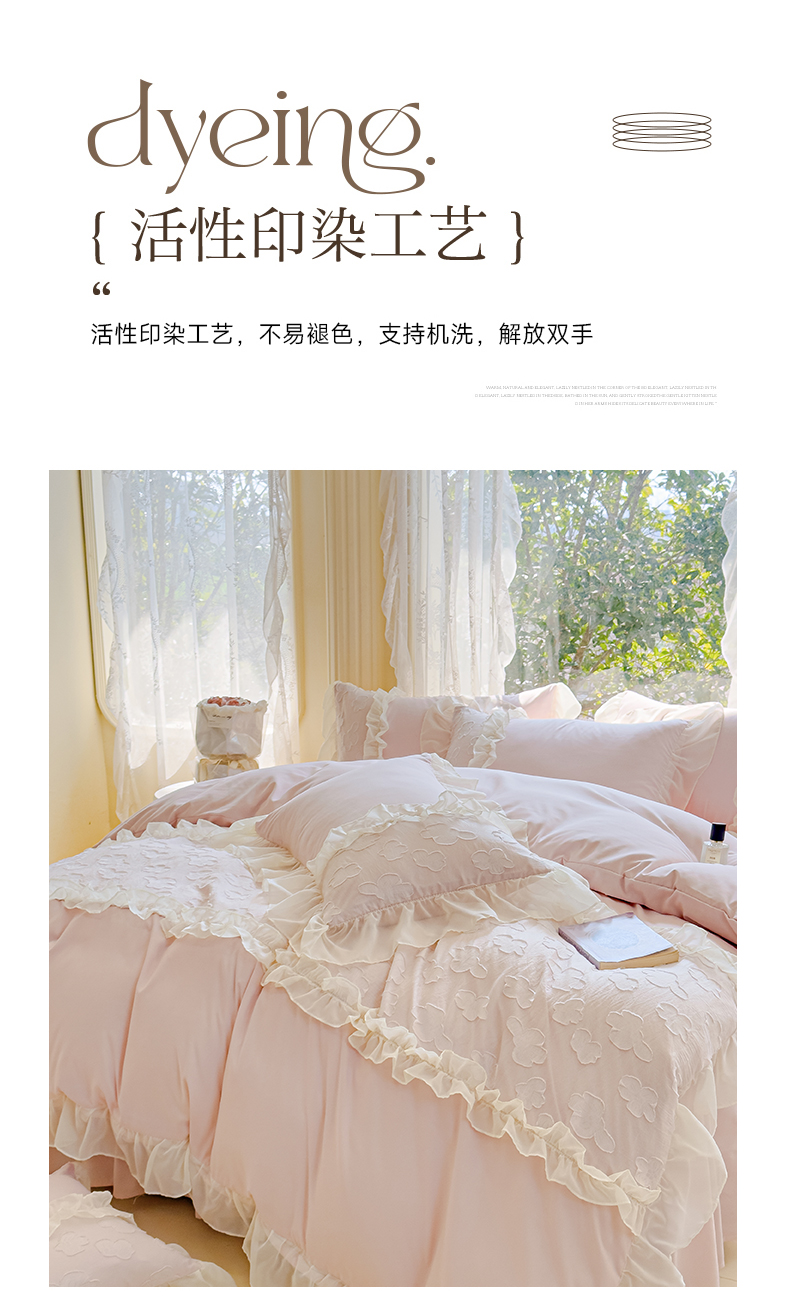 当前位置: 91家纺网 > 商品网购 > 床品套件 > 四件套 > 全棉普通四件套 > 狂想家 2025新款立体蕾丝花边梦娜系列四件套 梦娜茶花粉