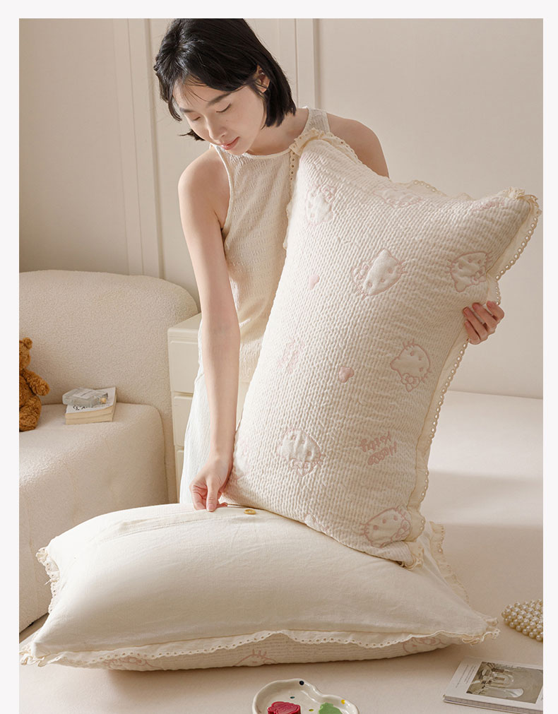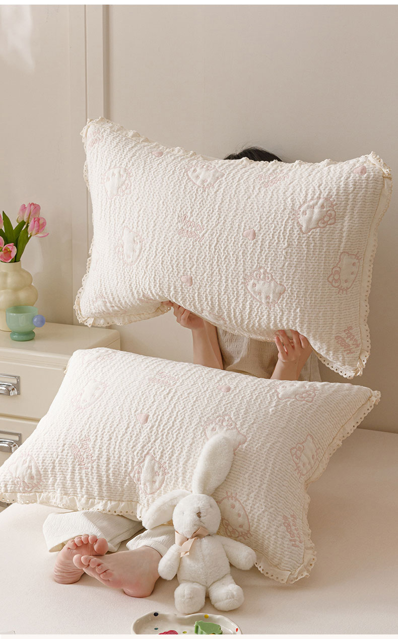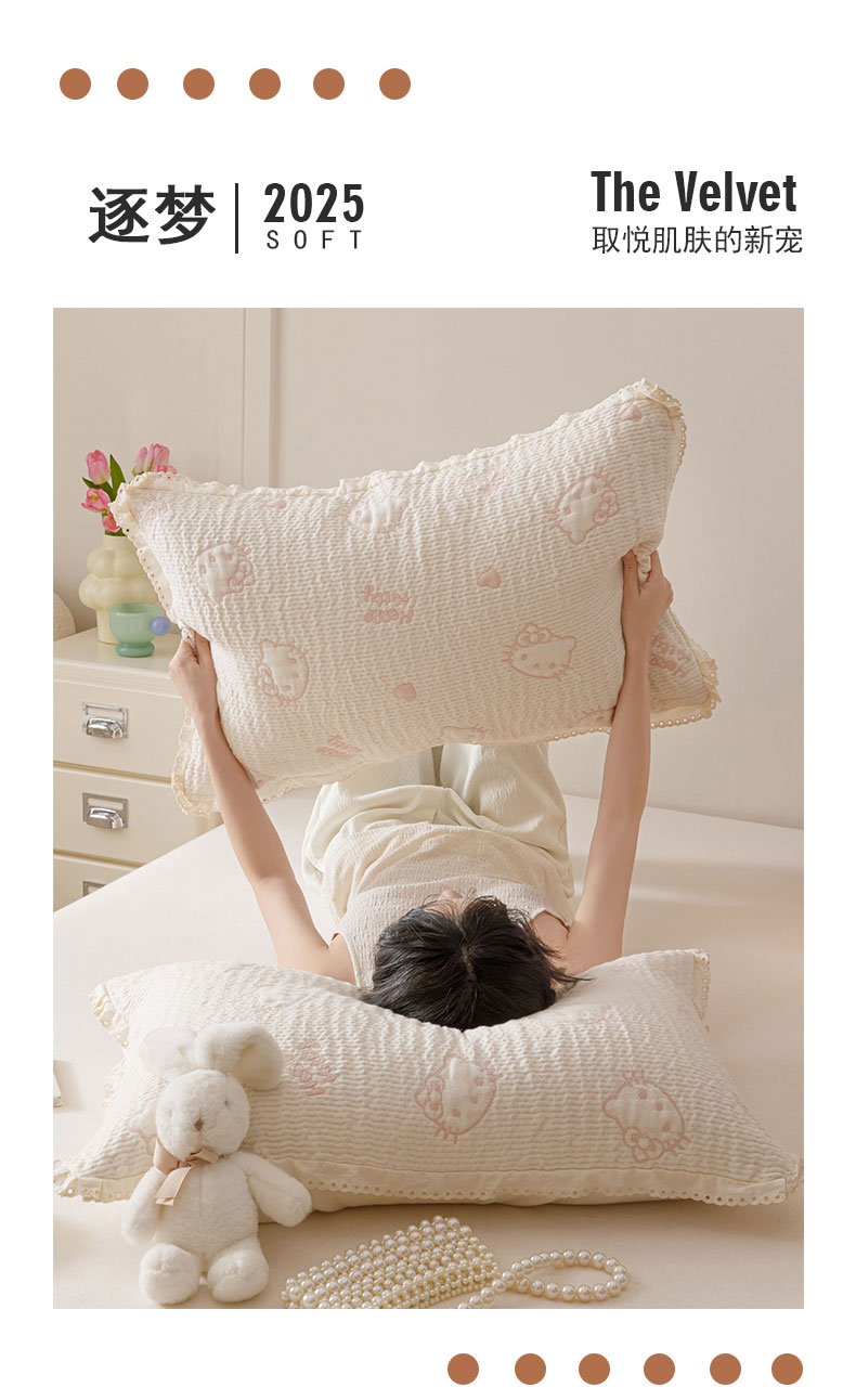 商品名称:麻依 2025新款韩国纱布色织提花枕套柔软顺滑 奶盖KT