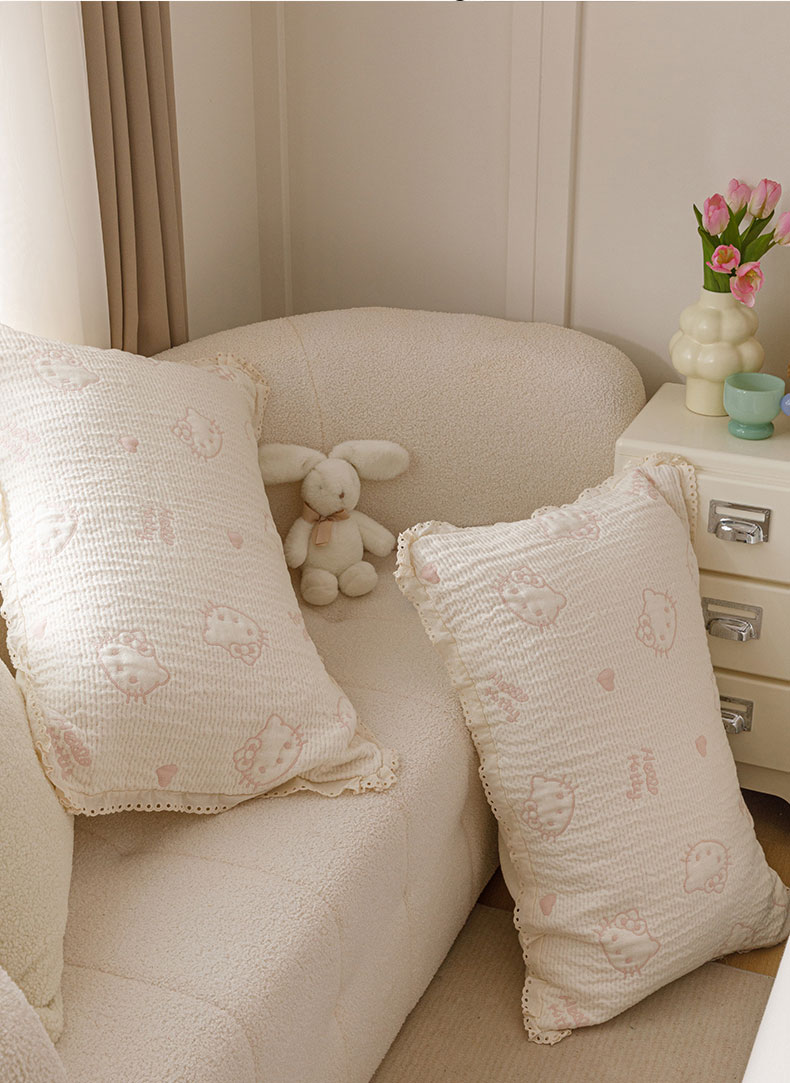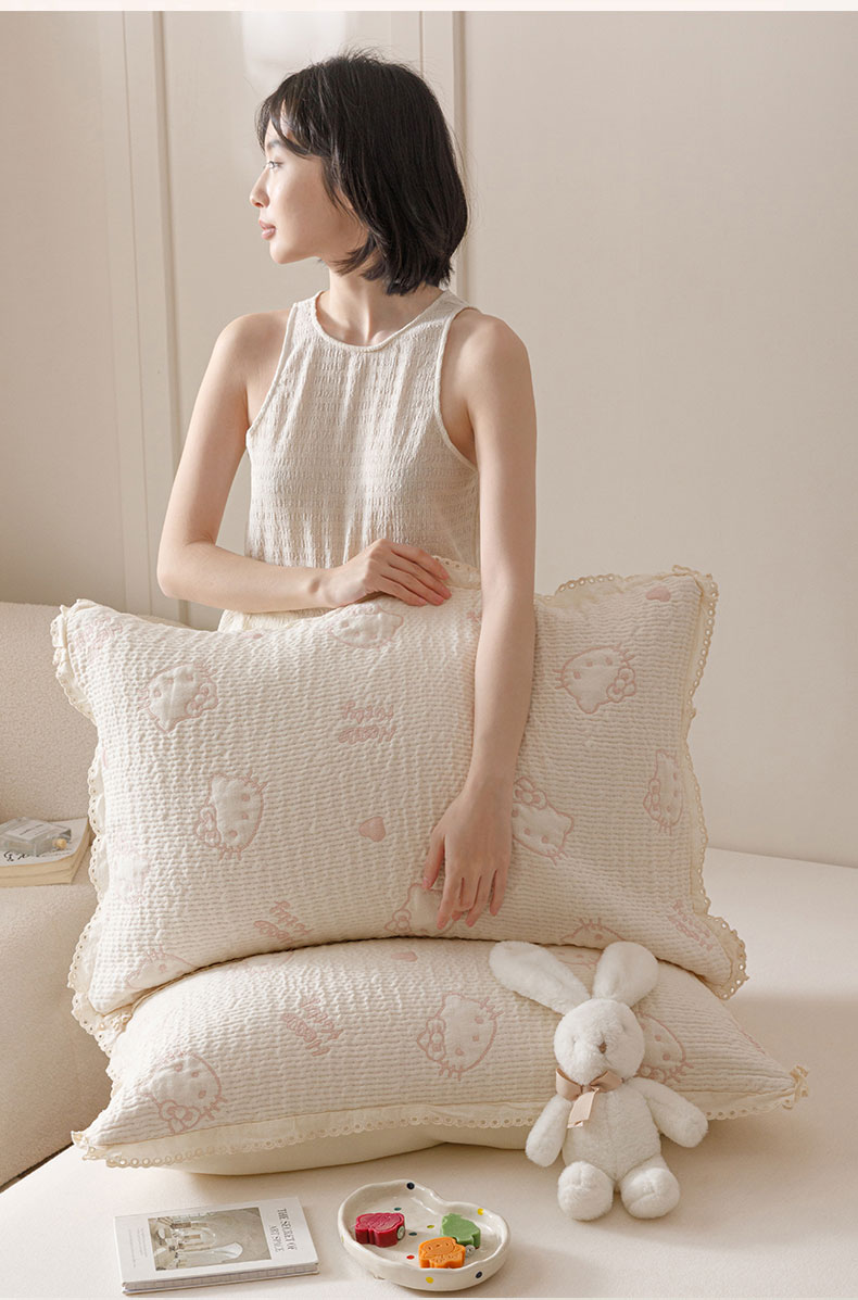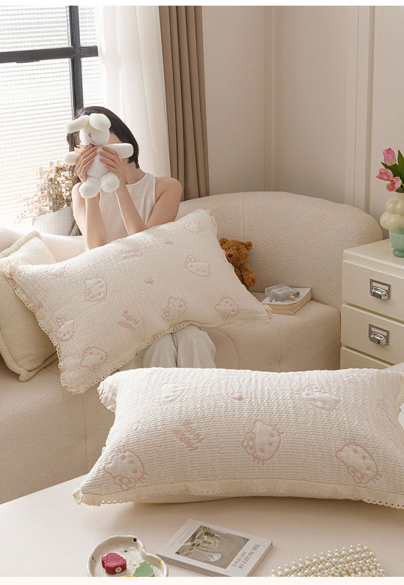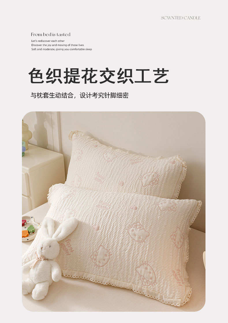 商品名称:麻依 2025新款韩国纱布色织提花枕套柔软顺滑 奶盖KT