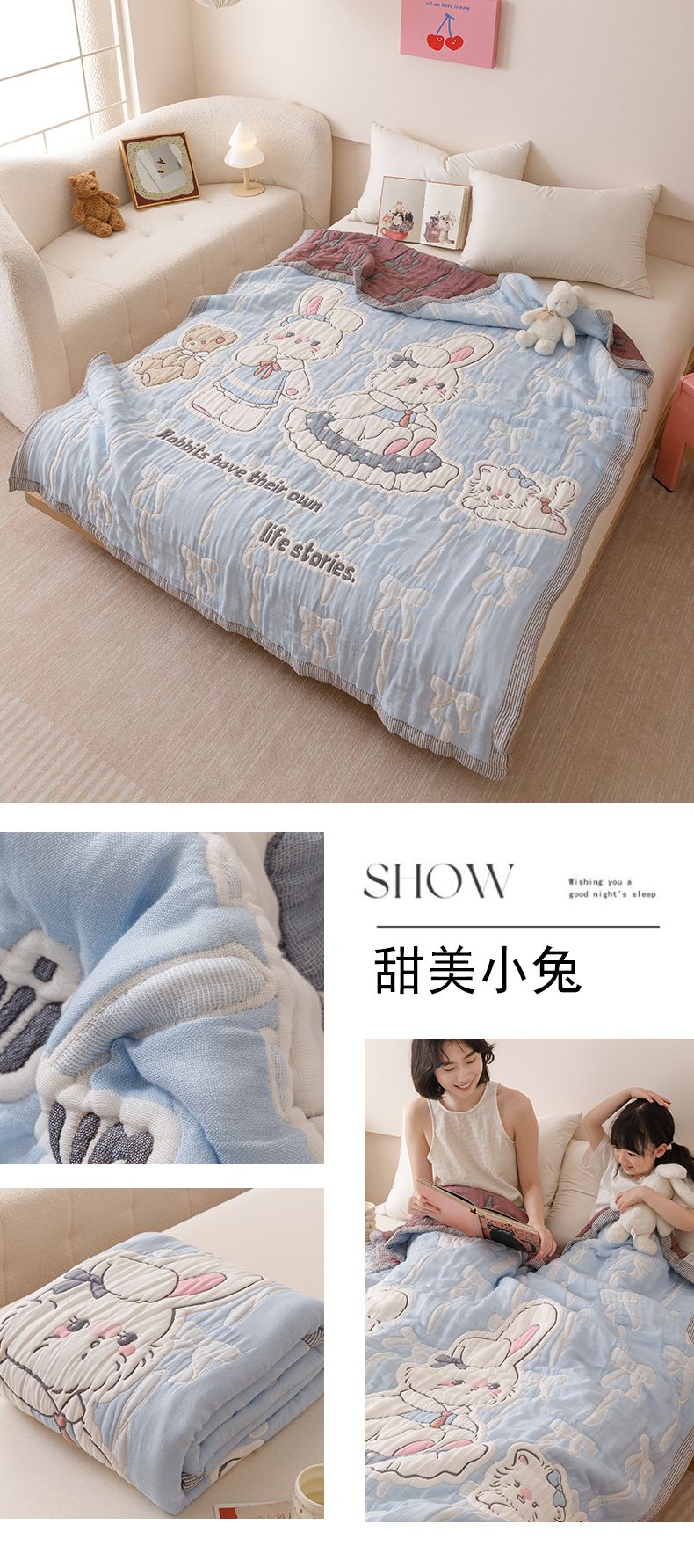 (总)麻依 2025新款四层全棉纱布毯盖毯毛巾被子被芯,白小兔,布偶熊,格子熊,考拉宝宝,咩咩羊,平安果,软萌小狗,甜点熊,甜甜圈,小猫崽,熊仔,总动员,KT日记