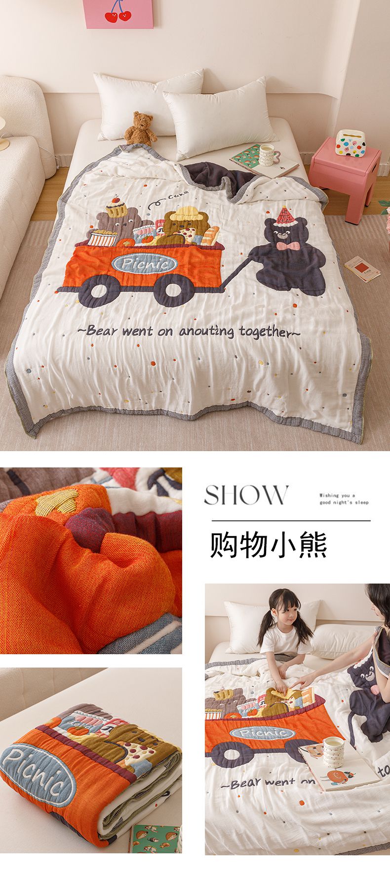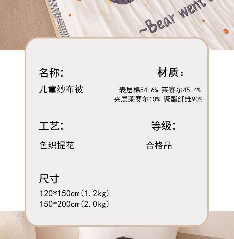 商品名称:麻依 2025新款纯棉儿童纱布被 购物熊