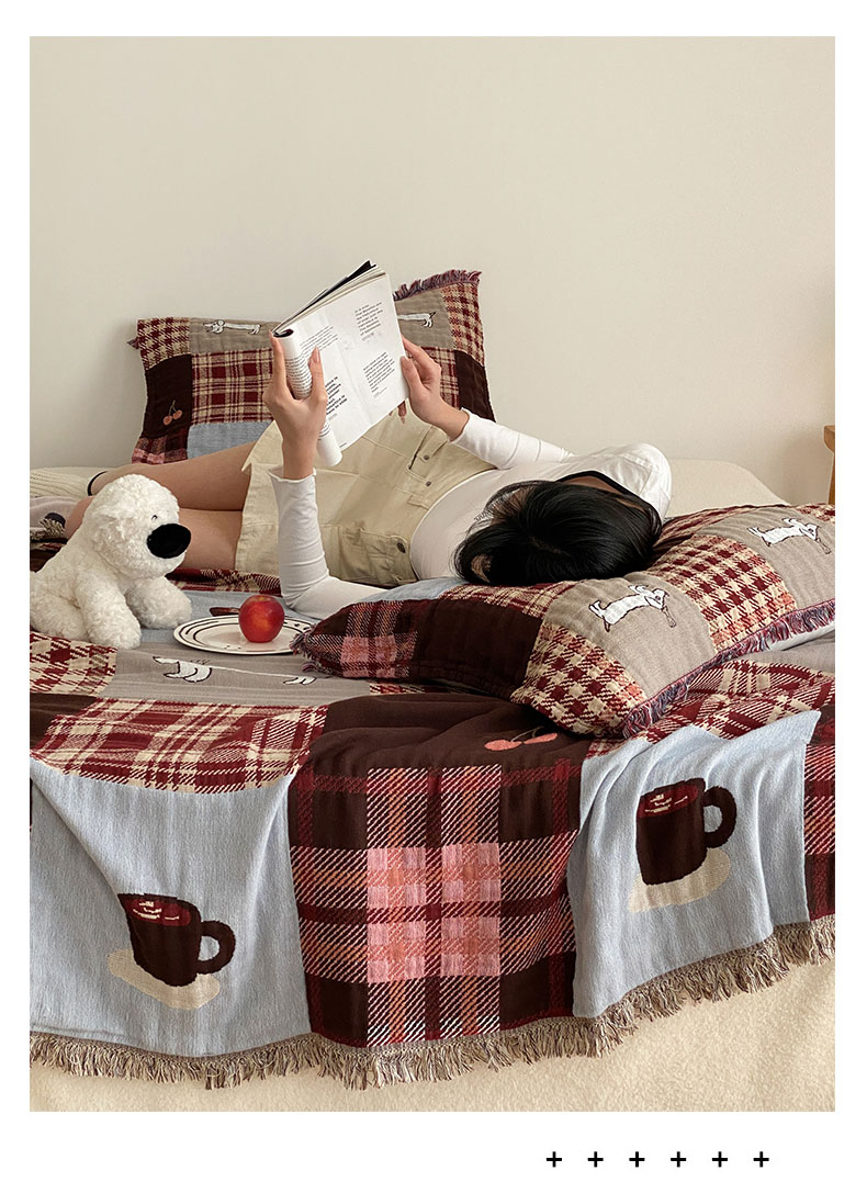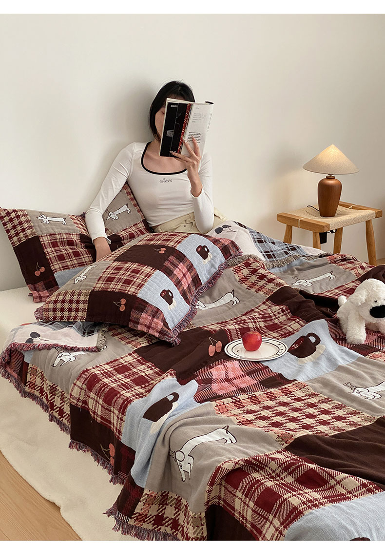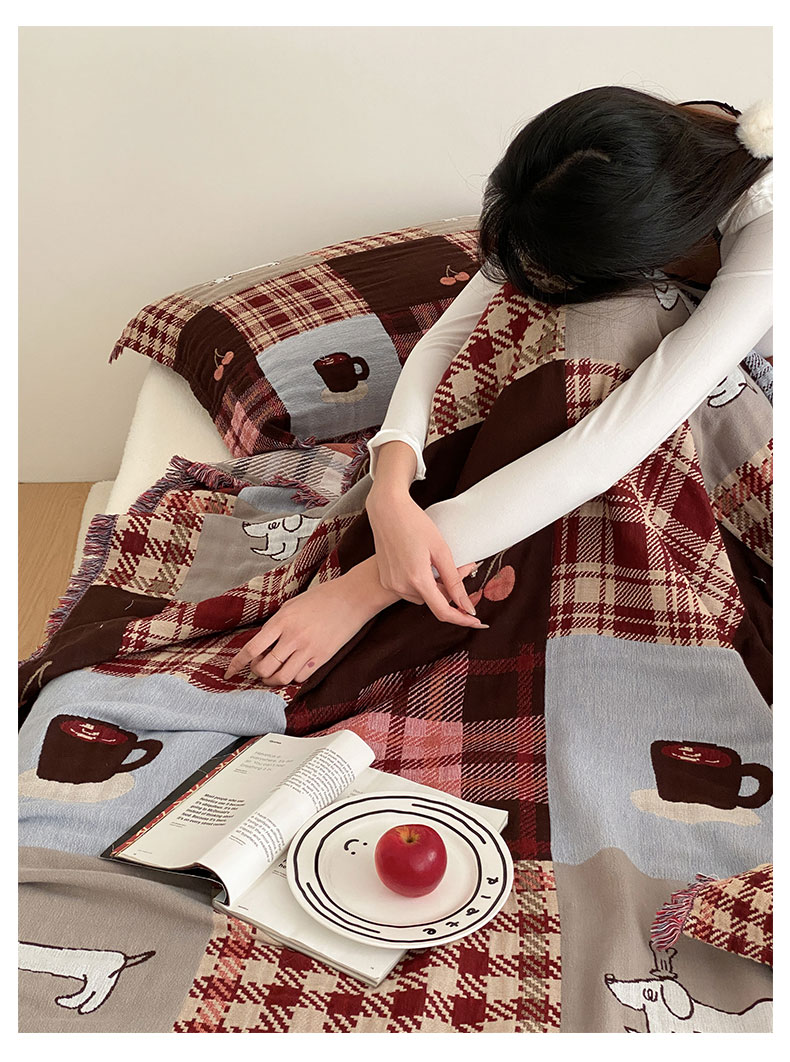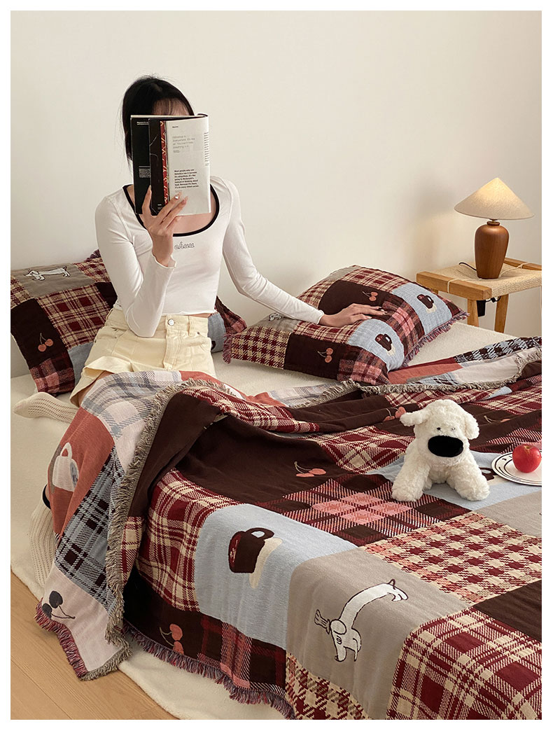 商品名称:麻依 2025新款全棉四层纱布流苏毯旅行披肩休闲毛巾被 童话可可