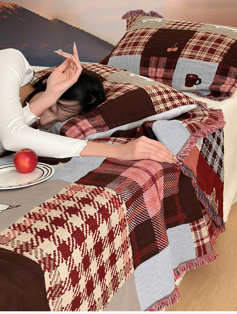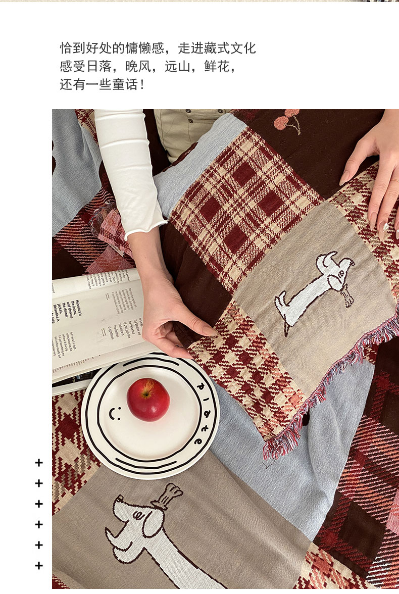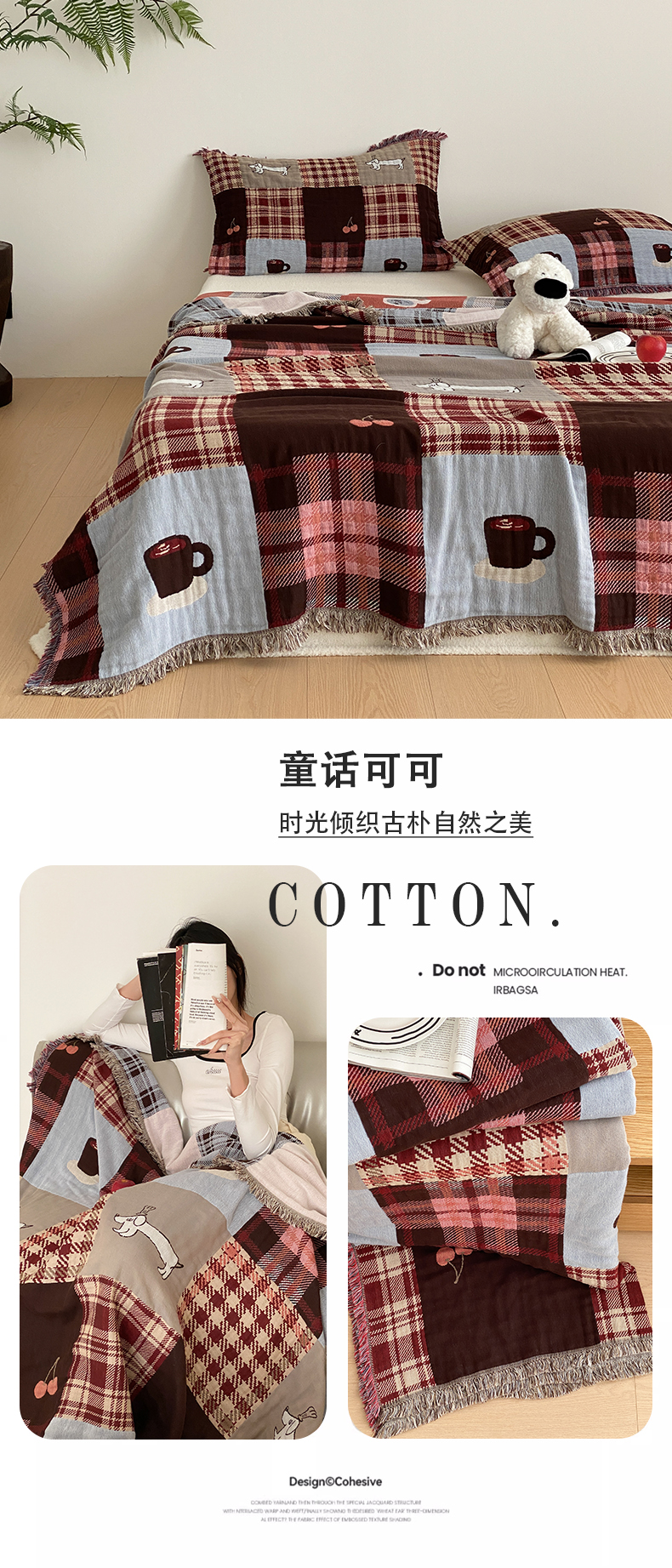 商品名称:麻依 2025新款全棉四层纱布流苏毯旅行披肩休闲毛巾被 童话可可