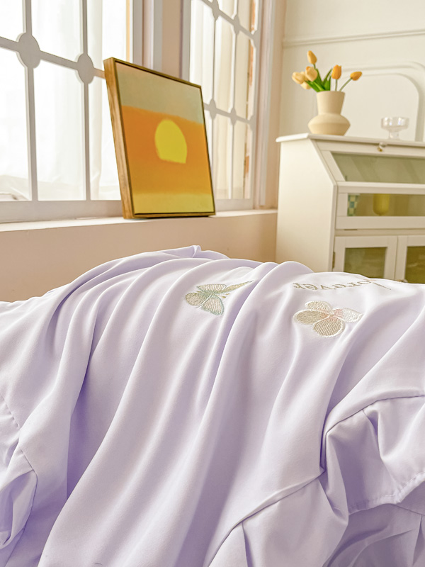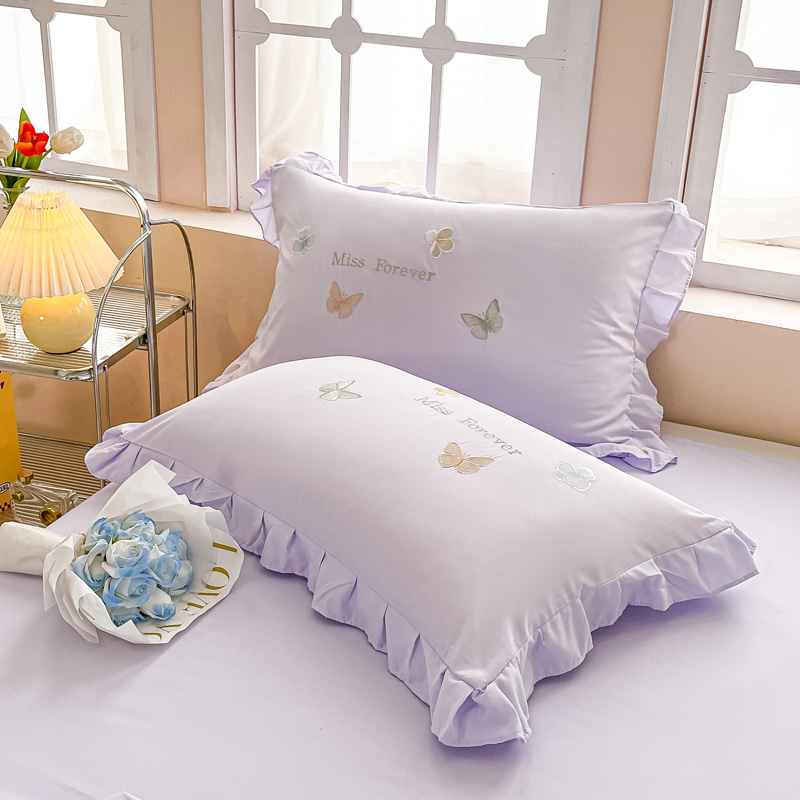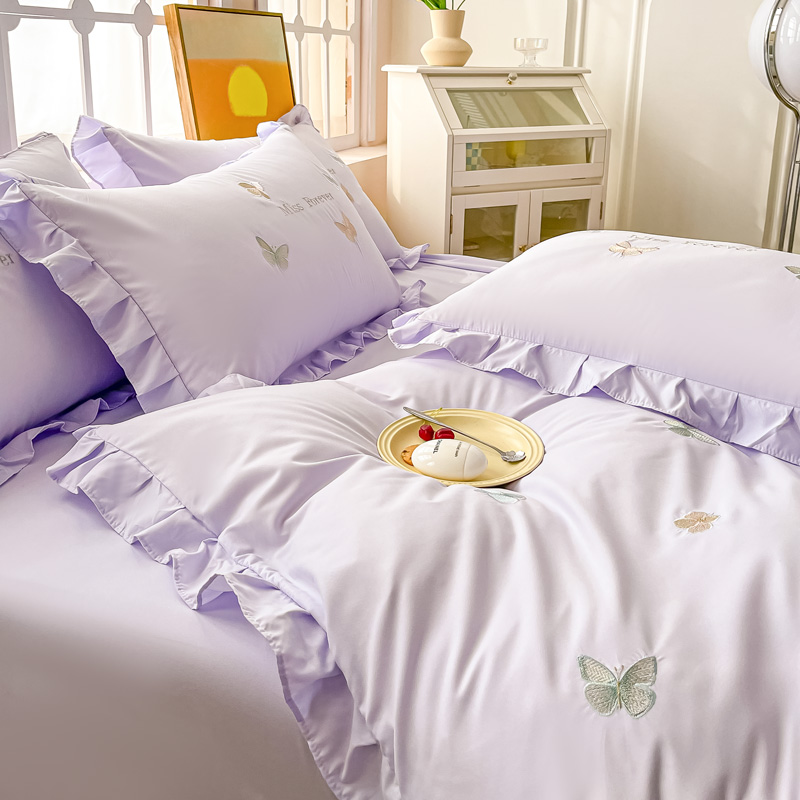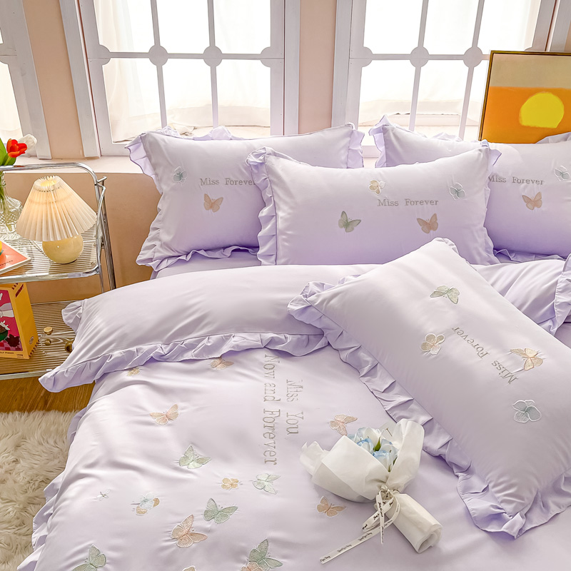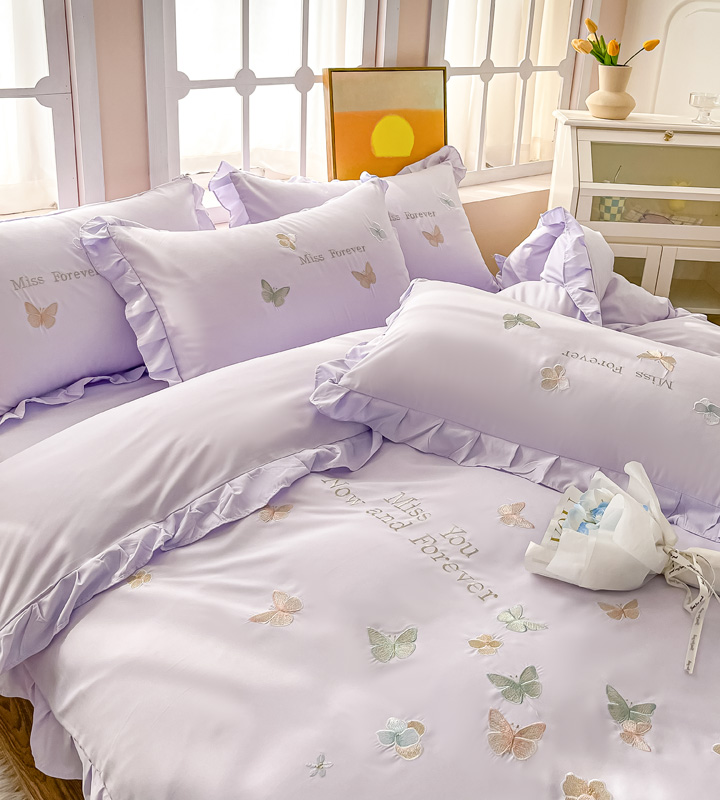 商品名称:恋之语 2025新款水洗棉刺绣花边四件套-蝶羽 蝶羽-紫