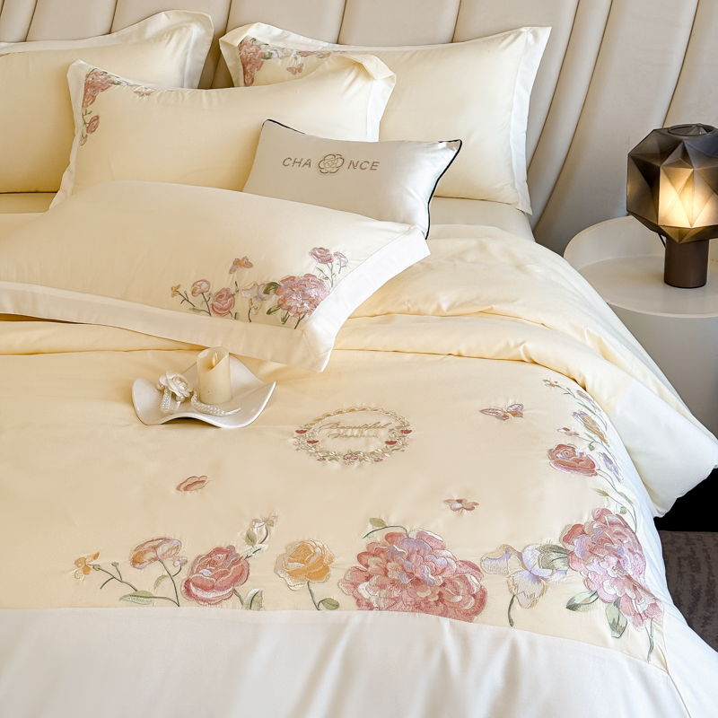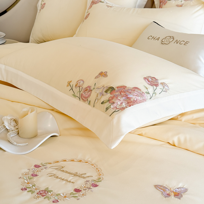 商品名称:恋之语 2025新款水洗棉刺绣四件套-伊莉莎 伊莉莎-黄