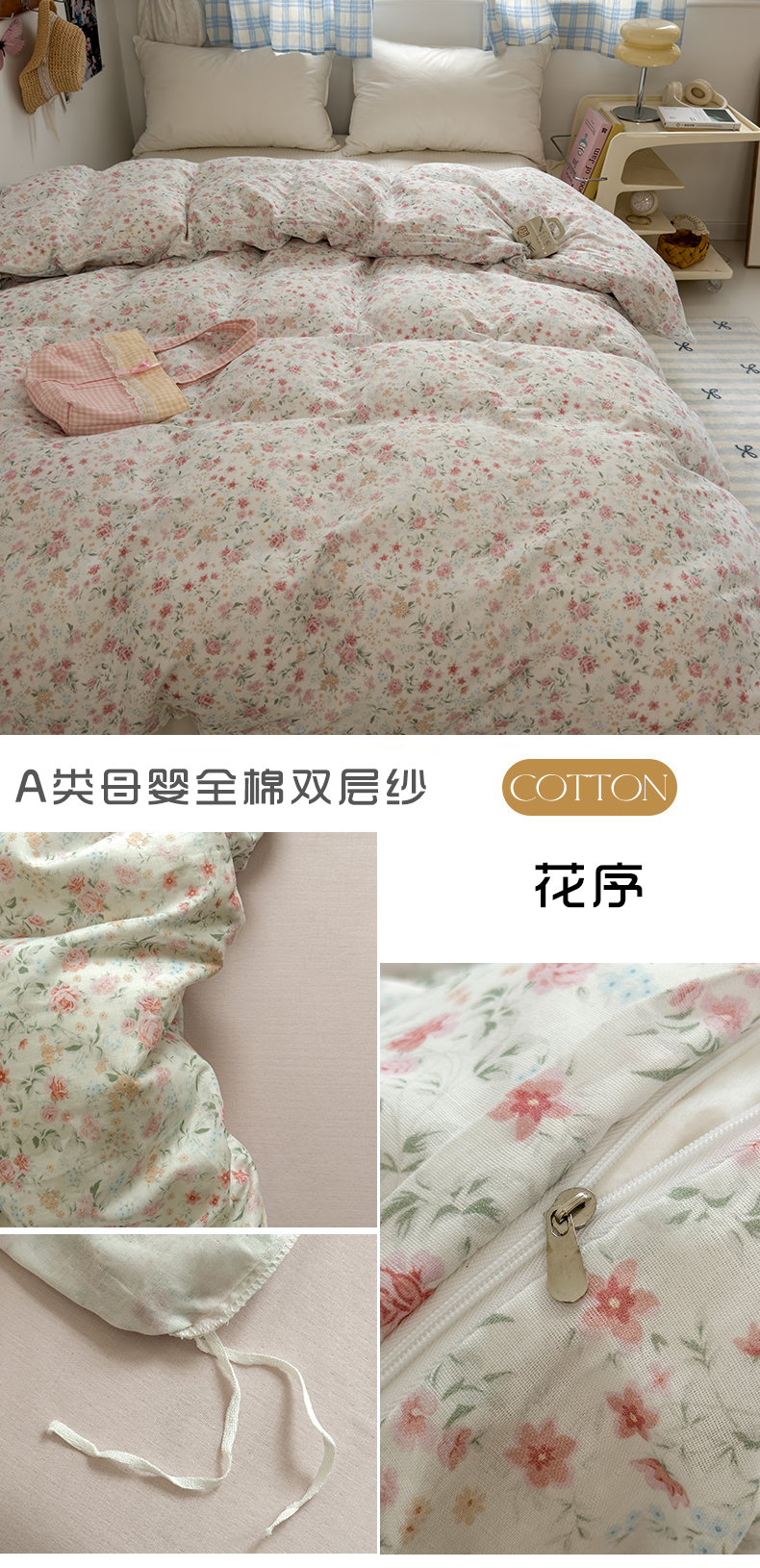 • 91家纺网 家纺一手货源 找家纺 塔塔家居  2025新款全棉纯棉双层纱被套单品单被套被套单件 花序