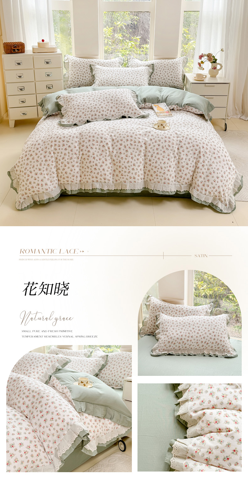 商品名称:晨晨家纺2025新款全棉双层花边双层纱四件套 花知晓