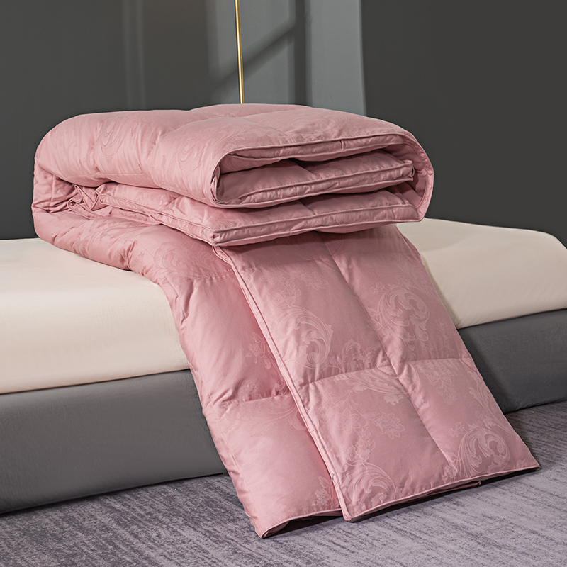 (总)静若居 2025新款高端提花羽绒被鸭绒被贡缎提花单层羽绒被壳,飘颜粉,飘金色,飘高级灰