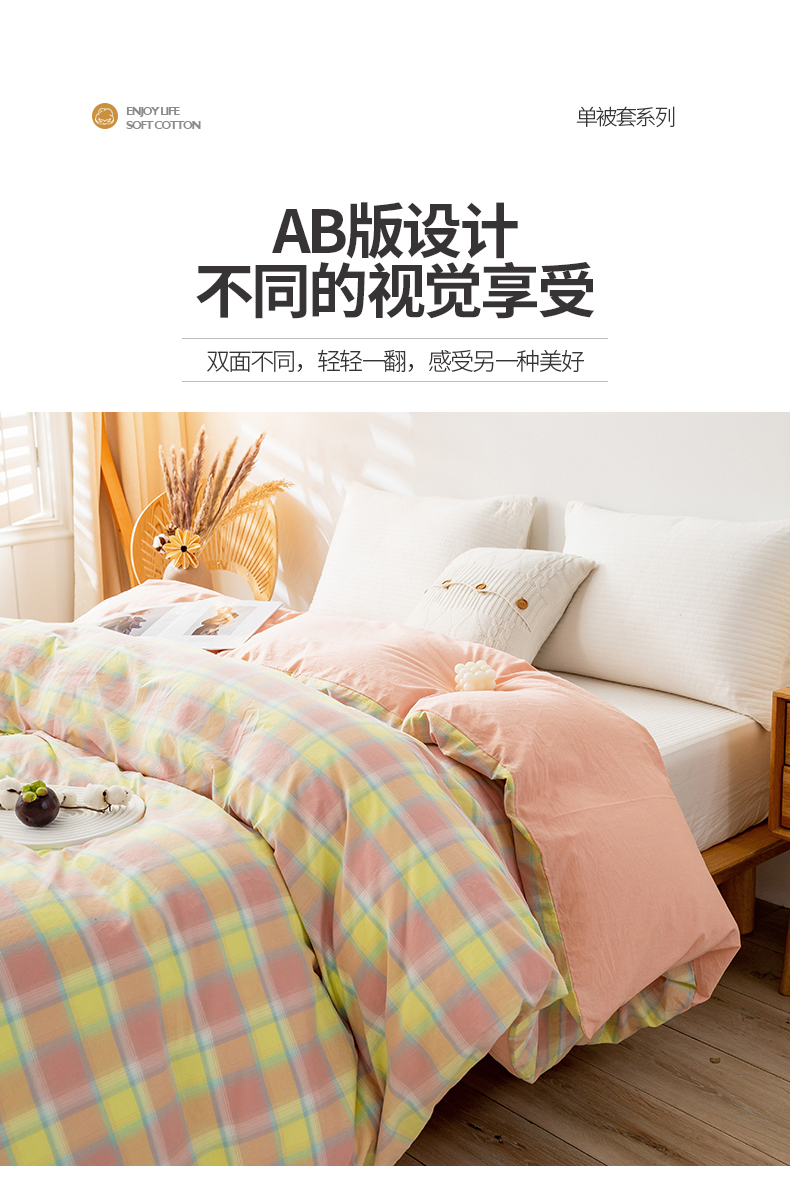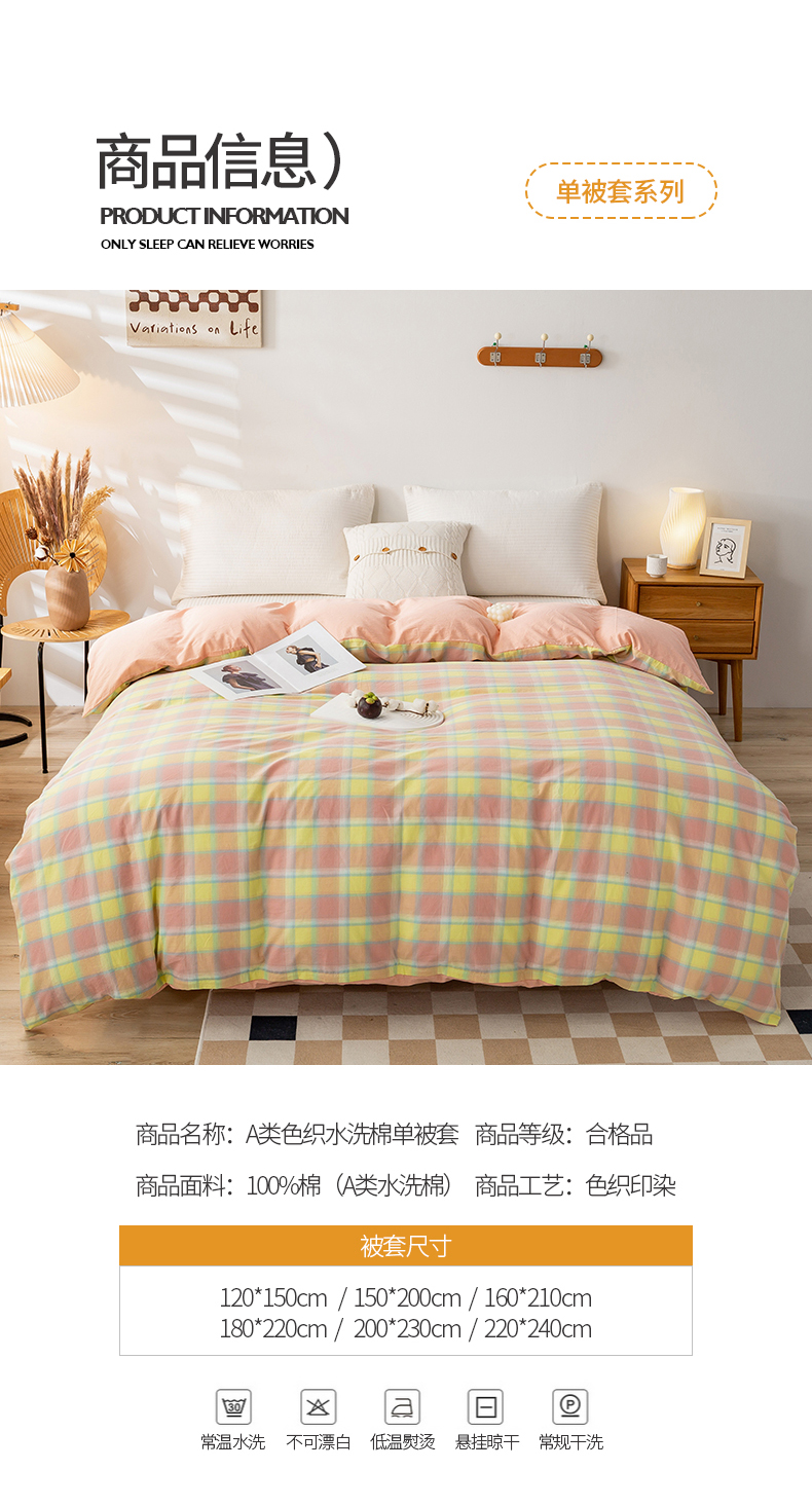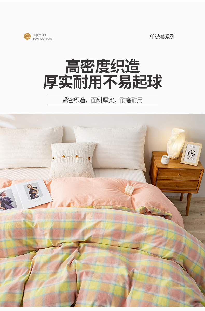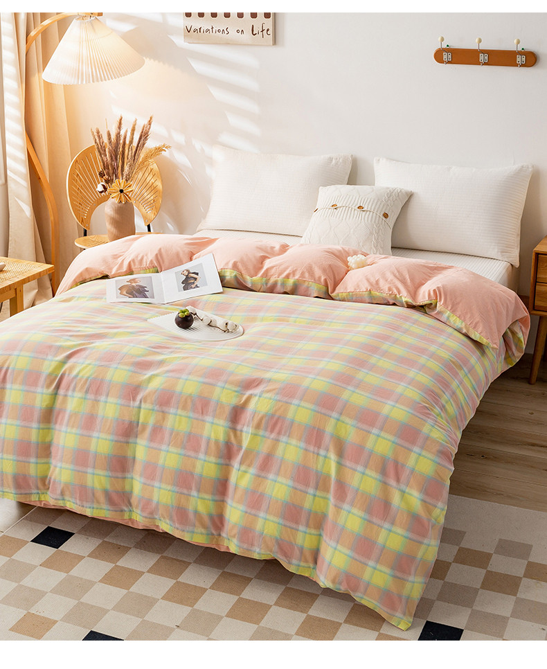 商品名称:2025新款A类色织水洗棉单被套 弗暖粉黄