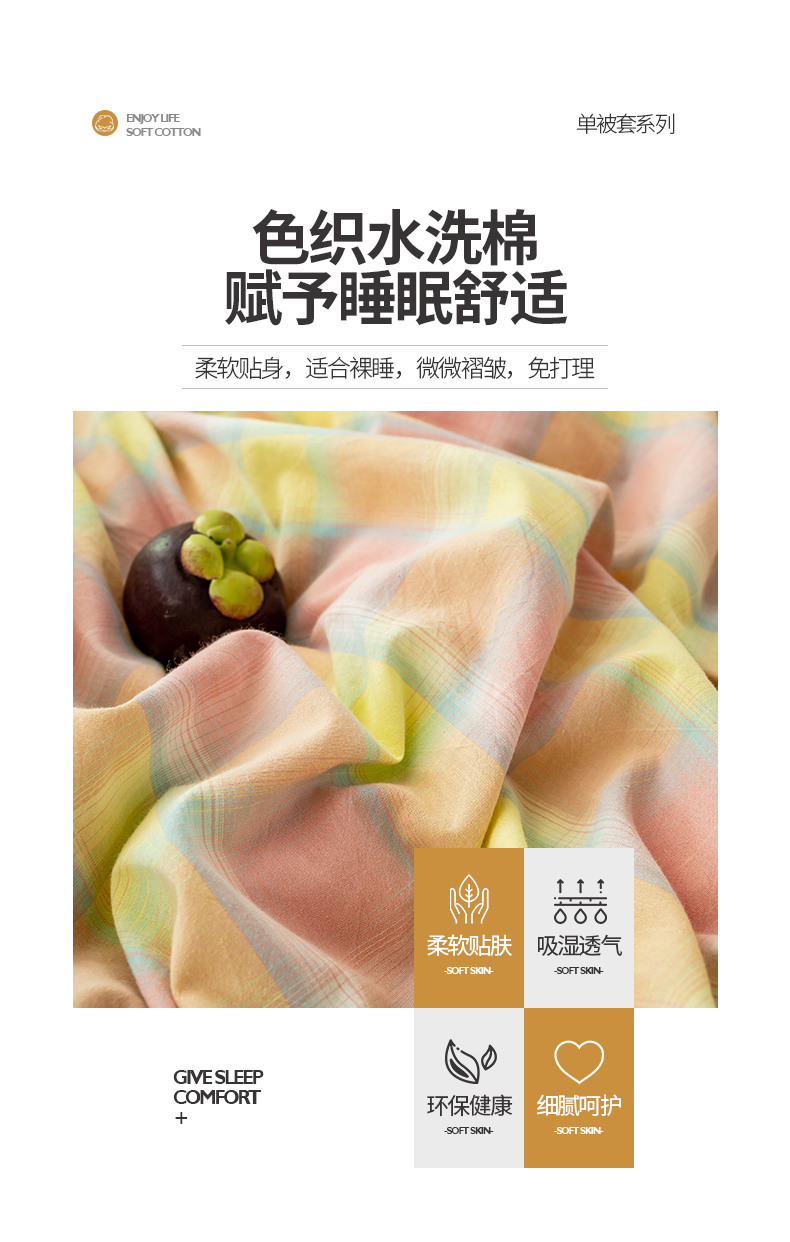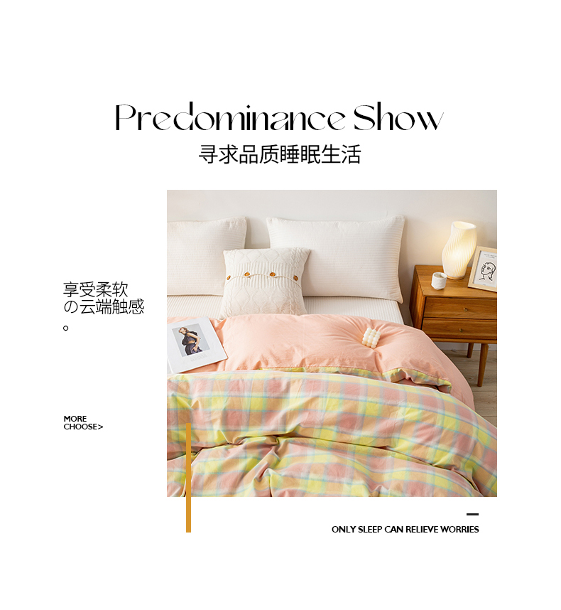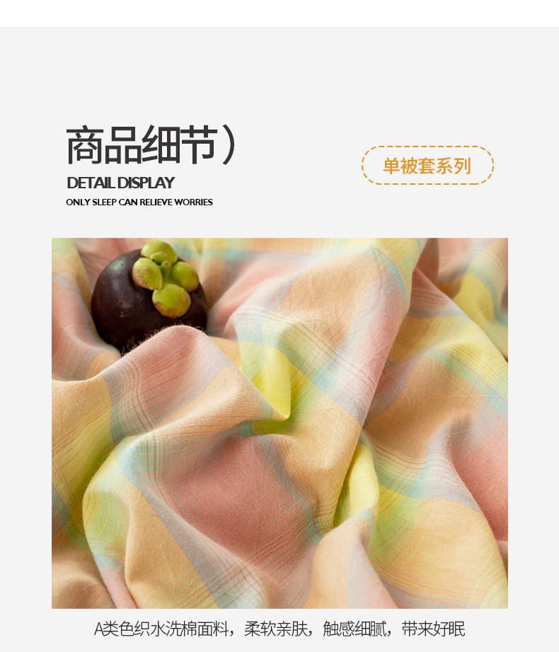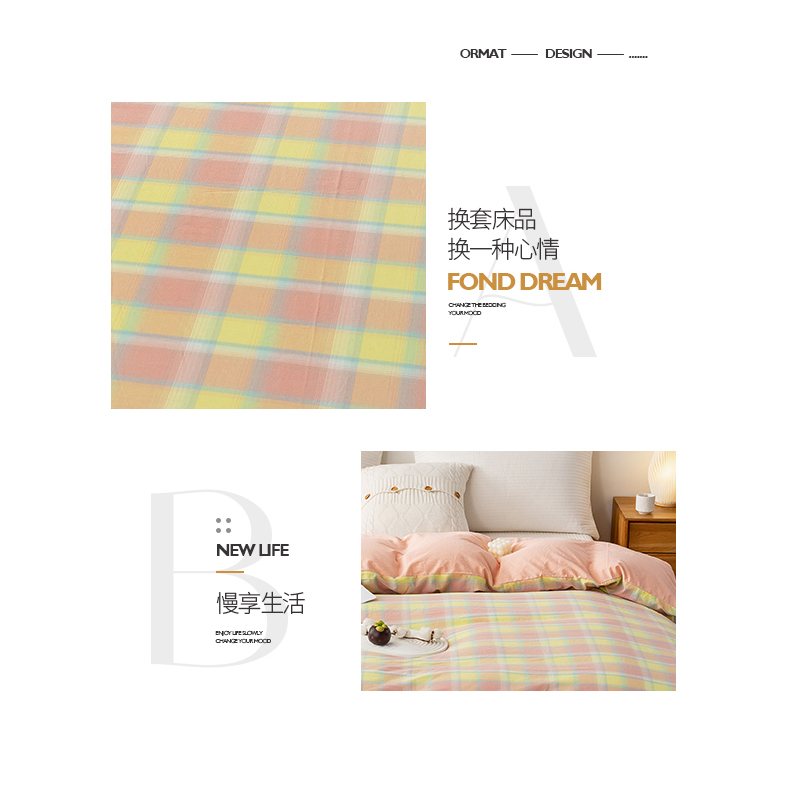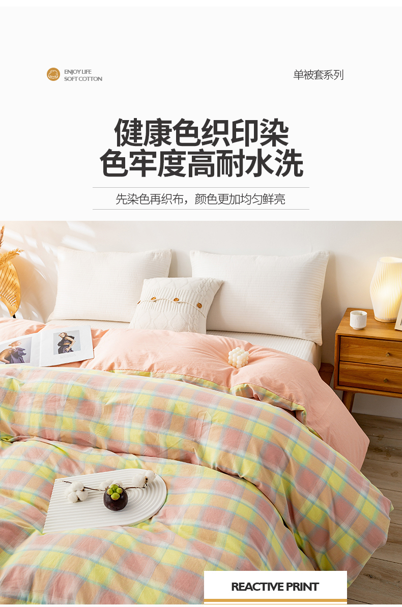 商品名称:2025新款A类色织水洗棉单被套 弗暖粉黄