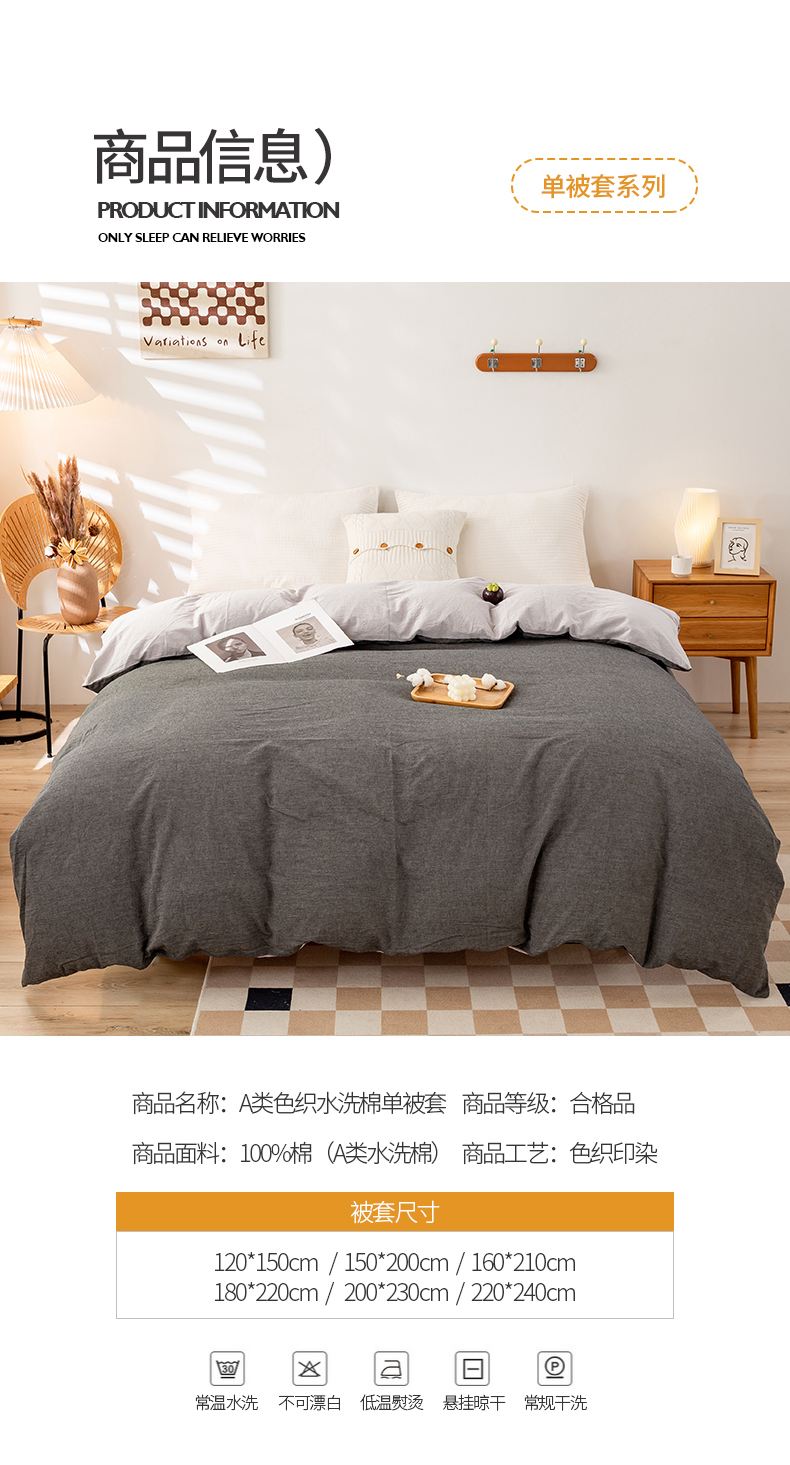 商品名称:2025新款A类色织水洗棉单被套 深灰+浅灰