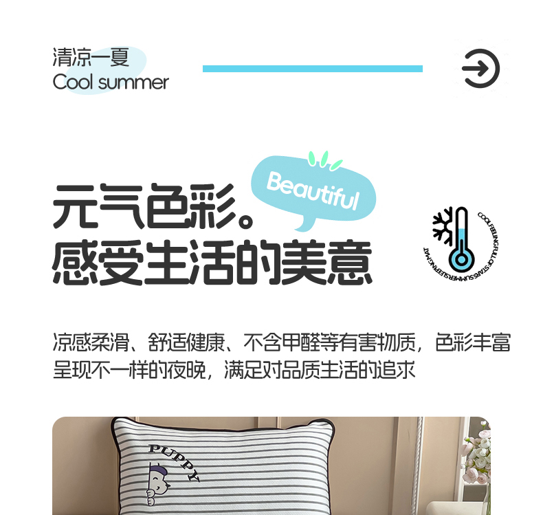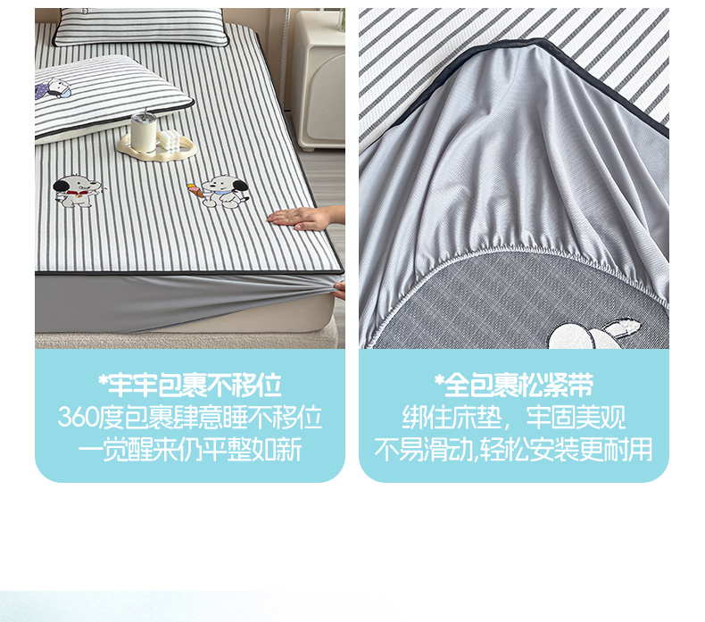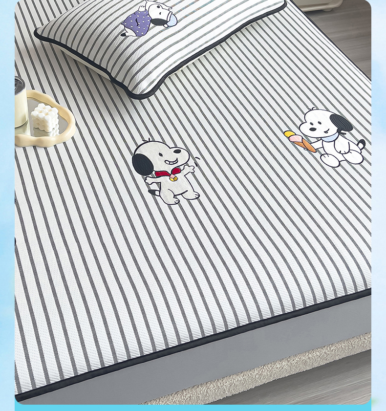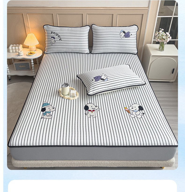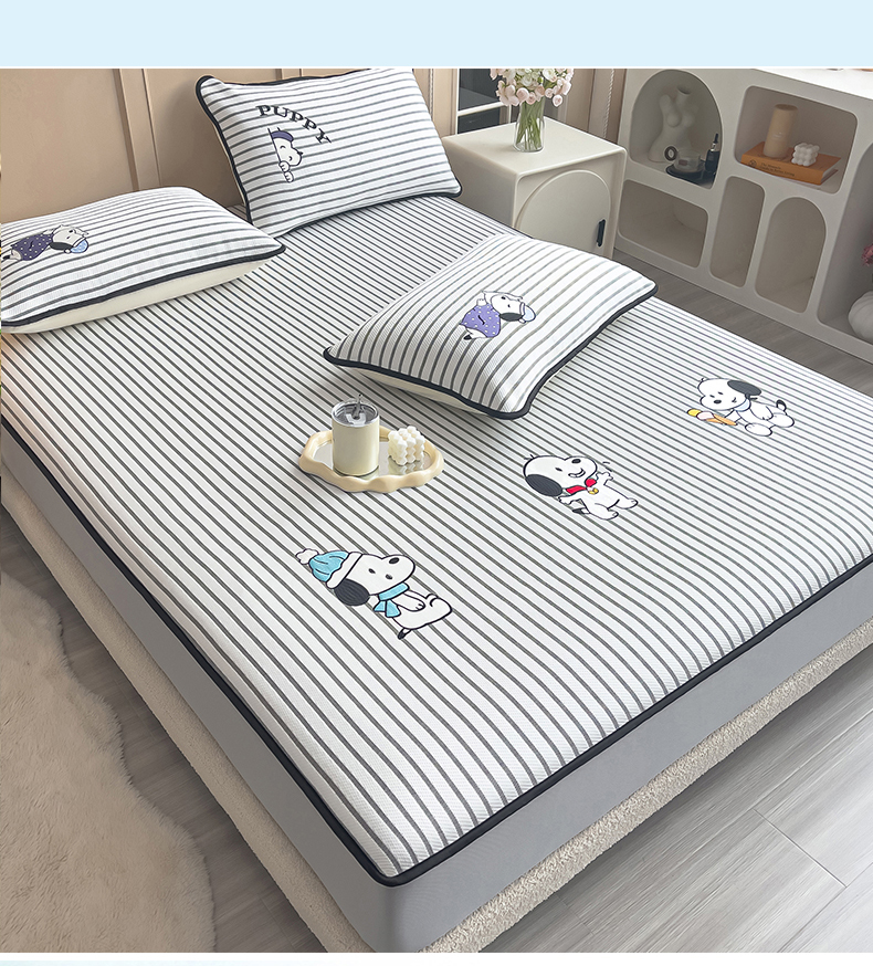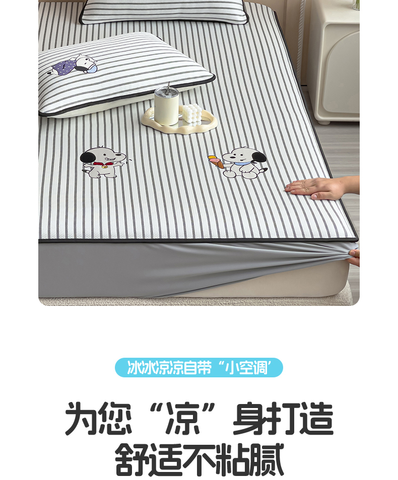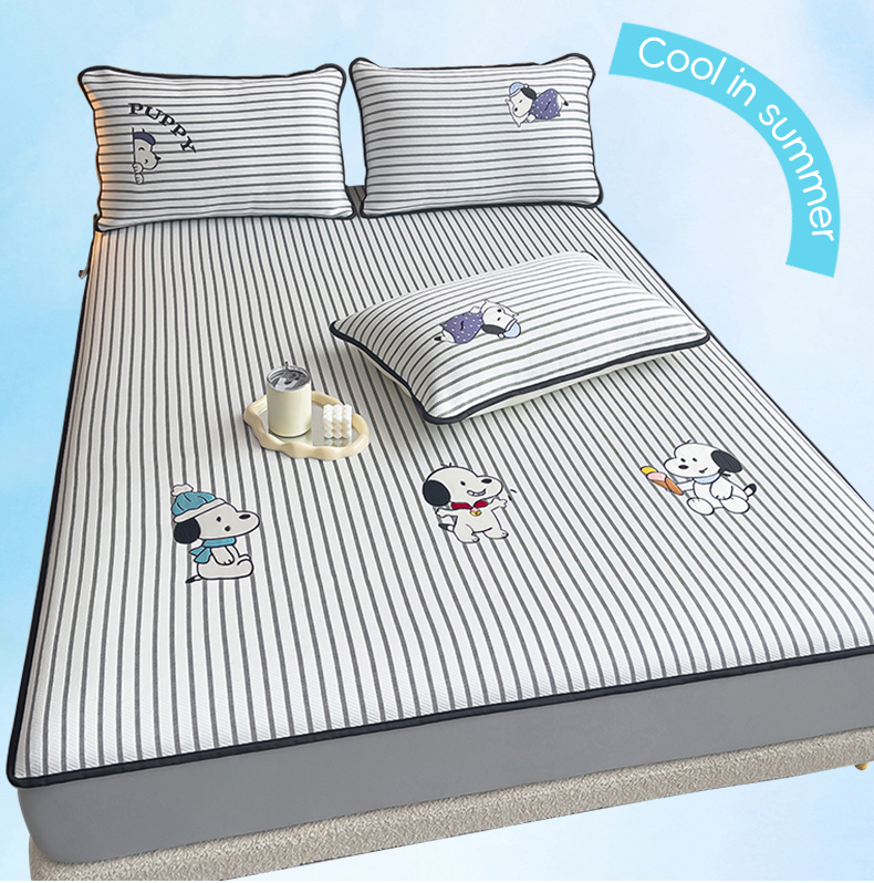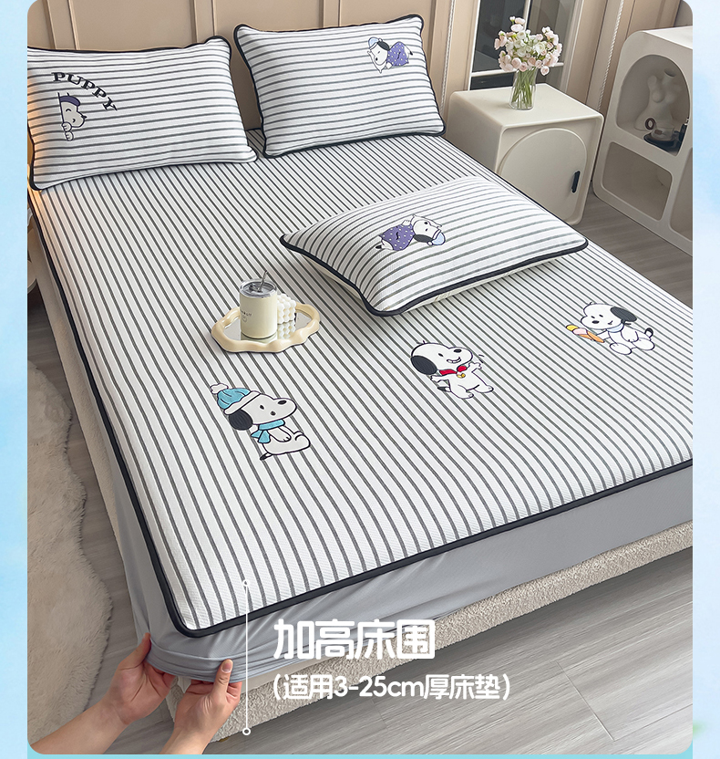 商品名称:炫拼 2025新款A类凉豆豆提花条纹卡通刺绣床笠席三件套 冰淇淋狗
