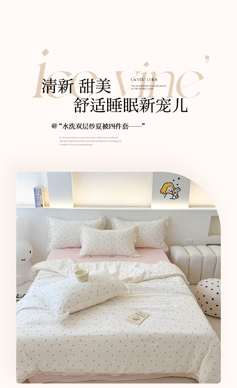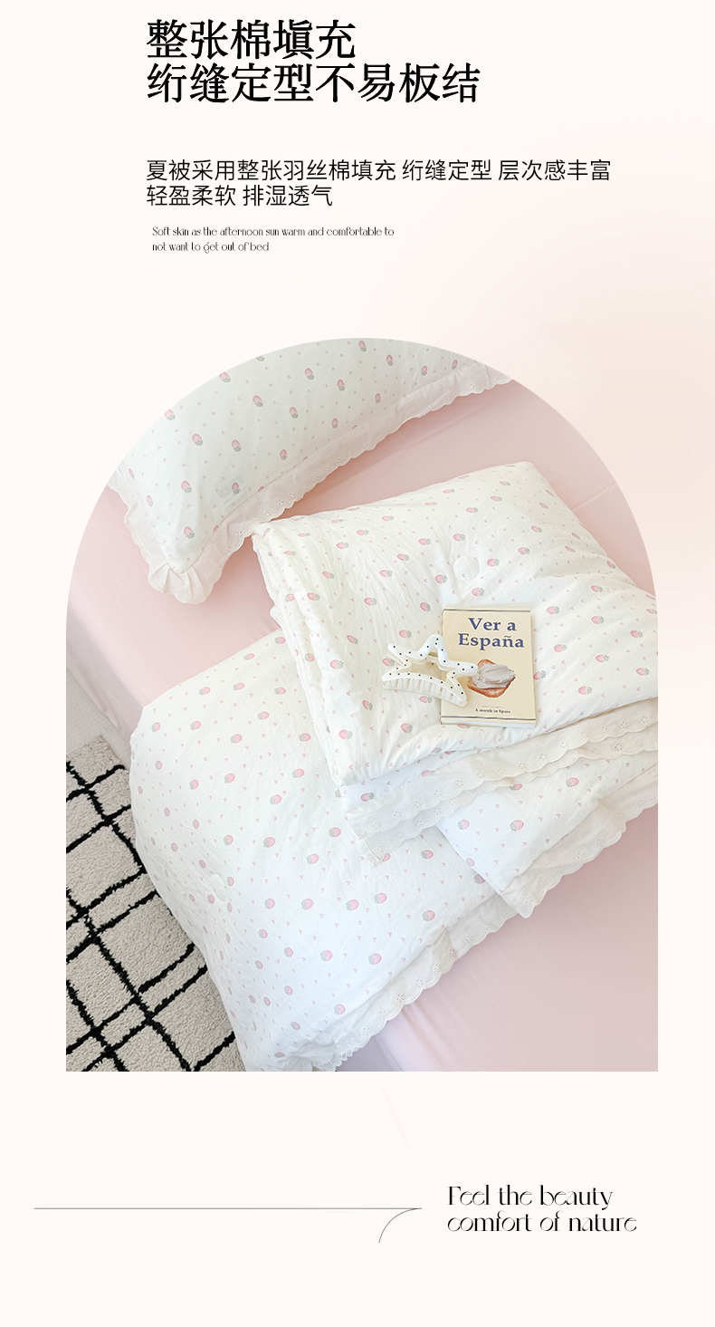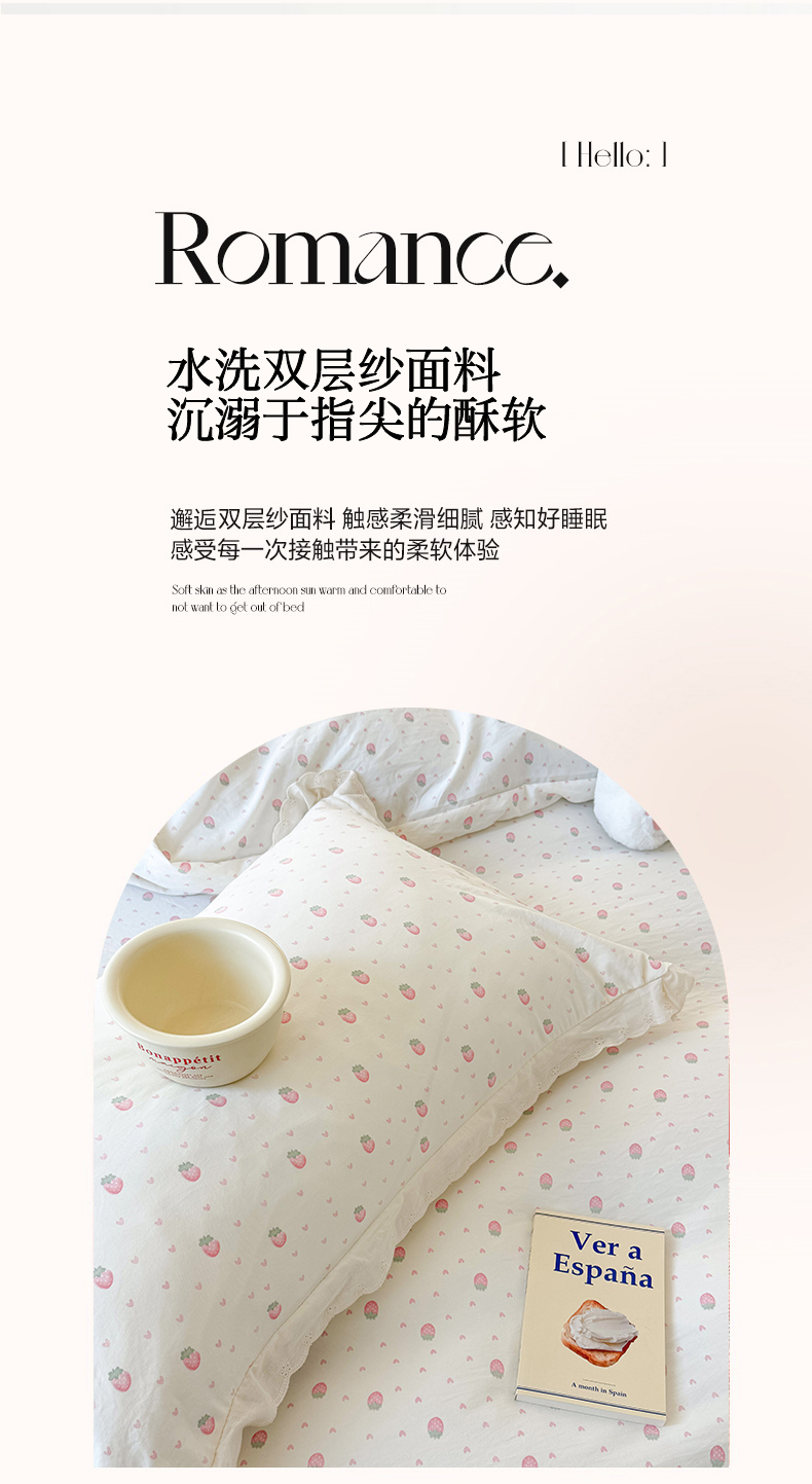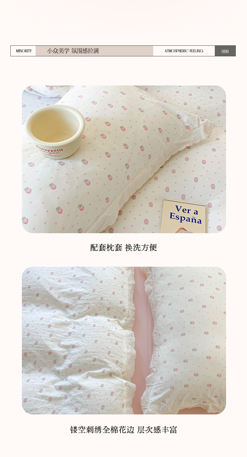 商品名称:吾欢心 2025新款水洗双层纱夏被四件套 草莓多多
