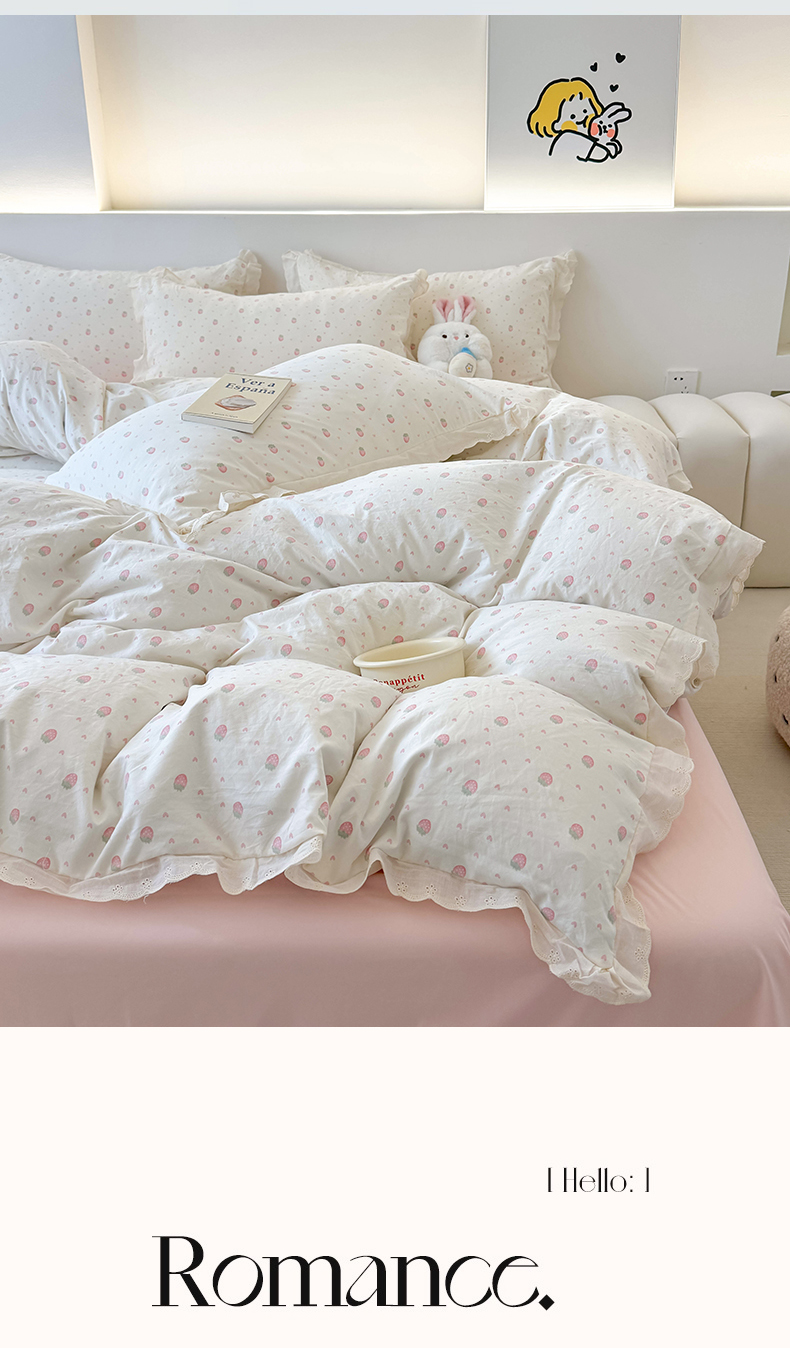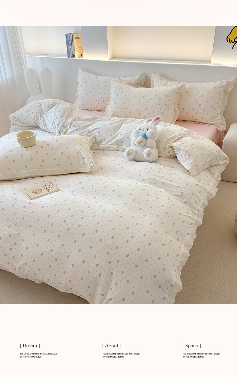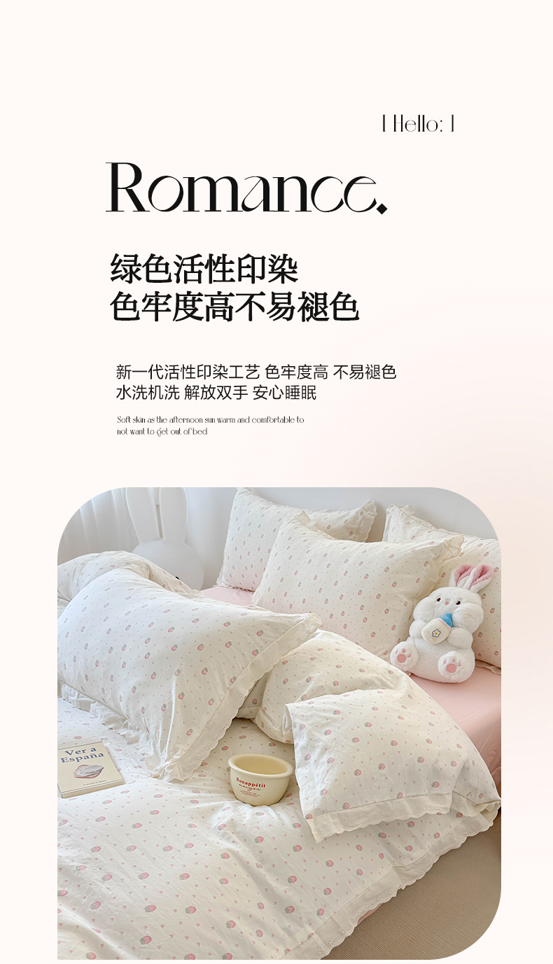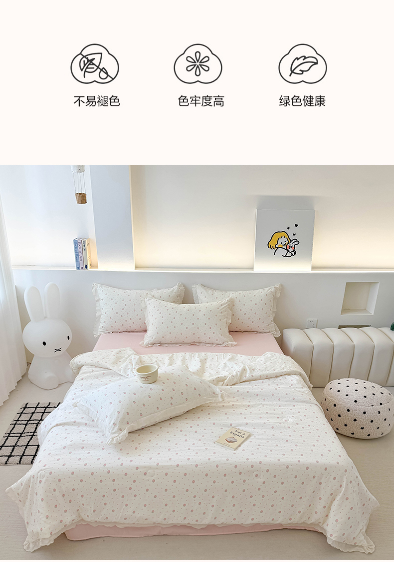 商品名称:吾欢心 2025新款水洗双层纱夏被四件套 草莓多多