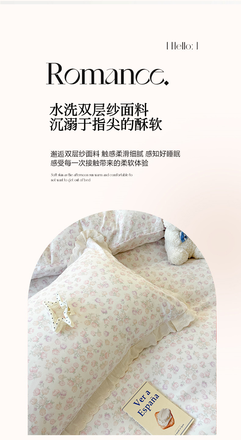商品名称:吾欢心 2025新款水洗双层纱夏被四件套 欧若拉