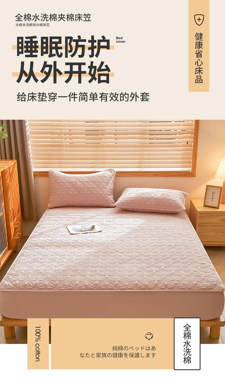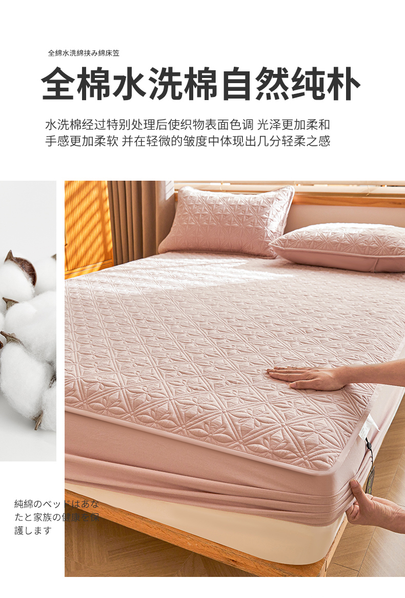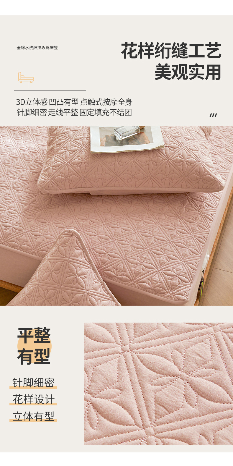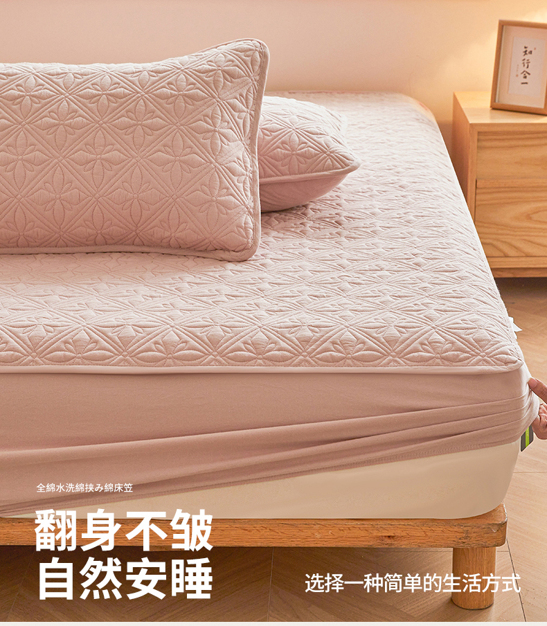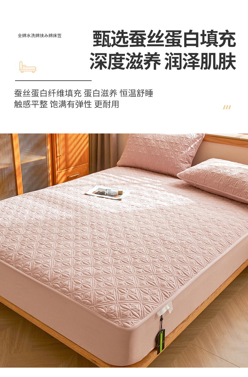 3C 2025全棉蚕丝蛋白夹棉床笠 天星花-樱花粉