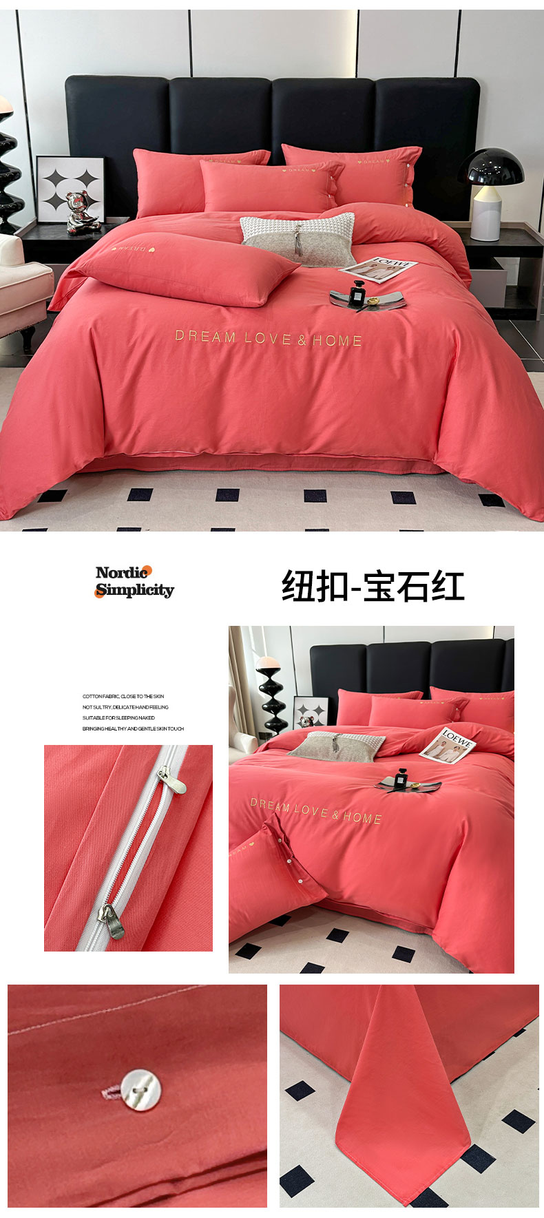 当前位置: 91家纺网 > 商品网购 > 床品套件 > 四件套 > 全棉普通四件套 > 宇彬家纺 2025直播热款13374全棉母婴级纽扣款压线纯色刺绣四件套全棉贡缎新疆长绒棉字母款轻奢 纽扣-宝石红
