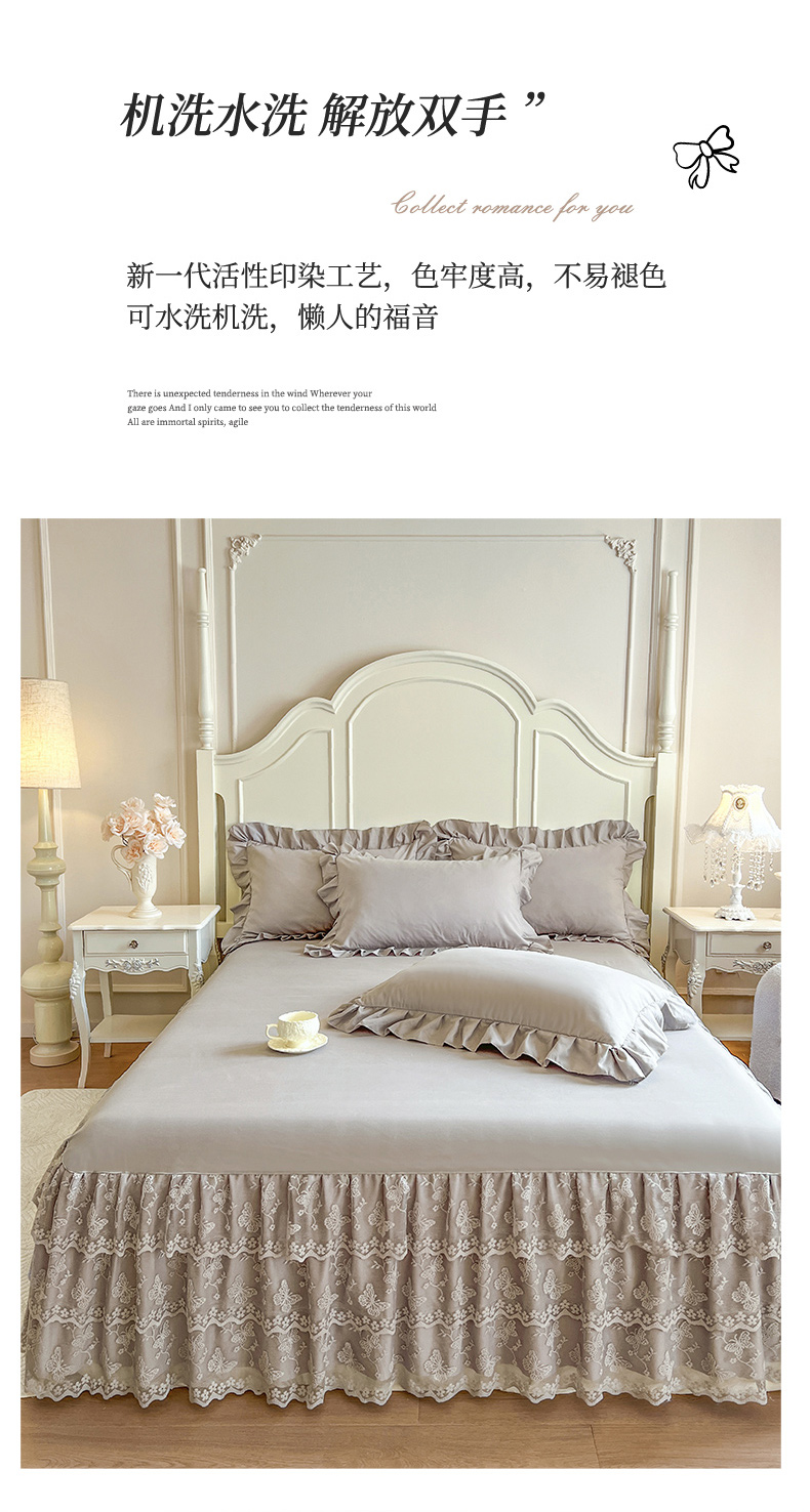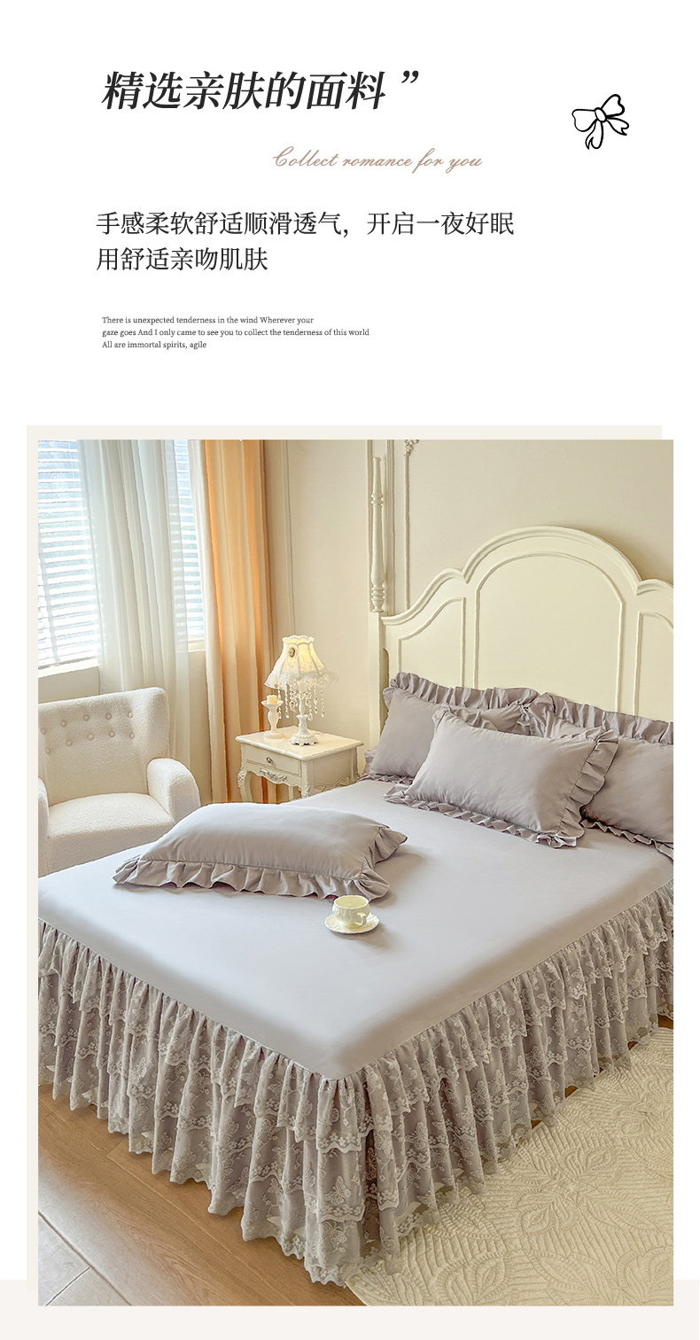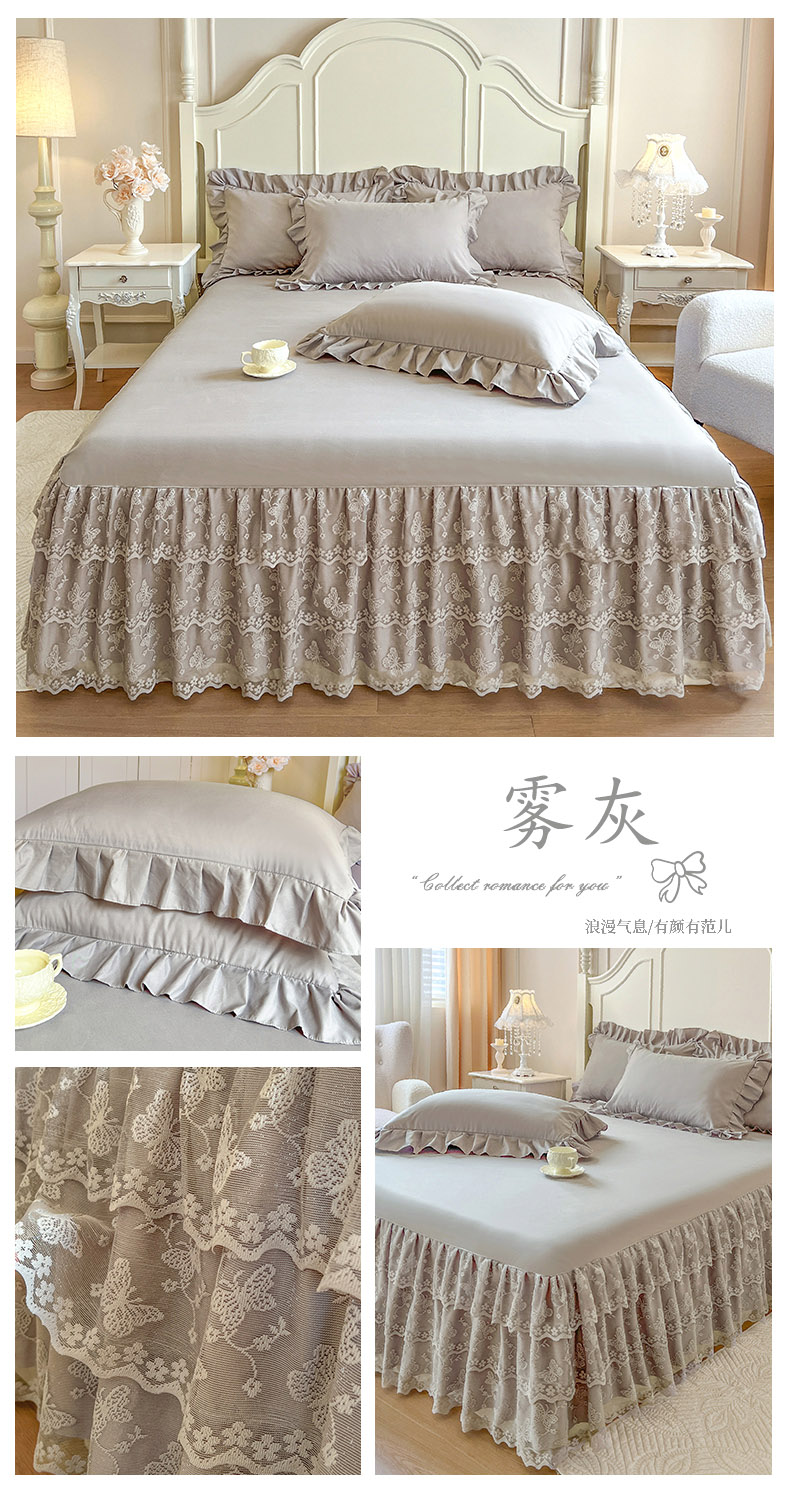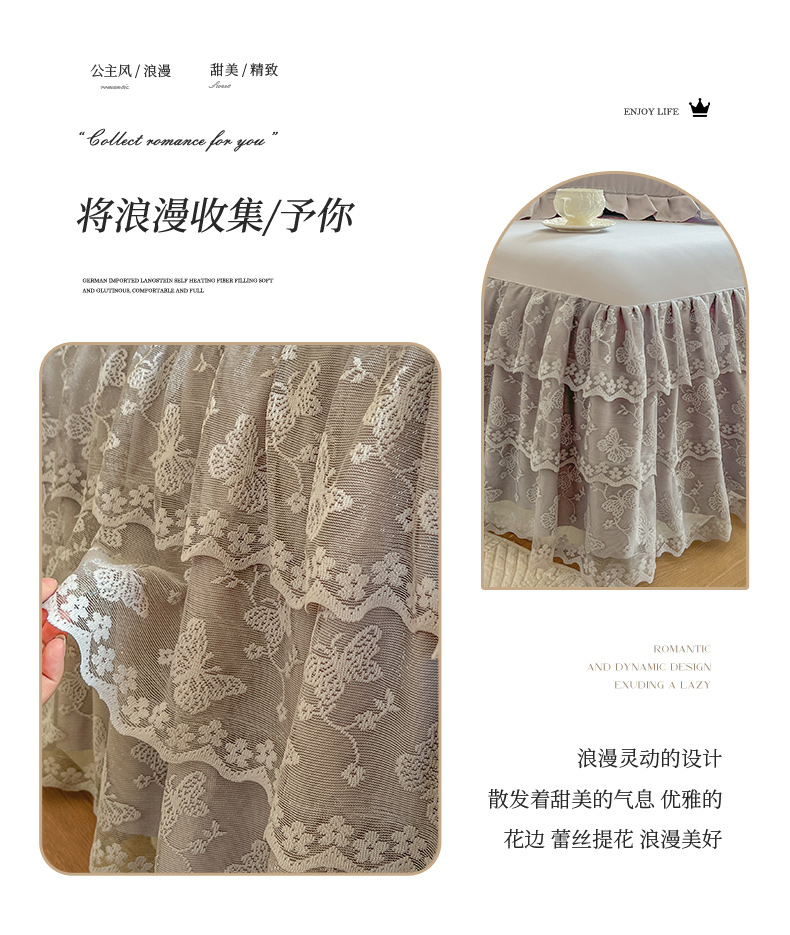 (总)乐朵家居 2025新款 25-1 芯语 蕾丝床裙,豆沙,灰,卡其,绿,米,紫