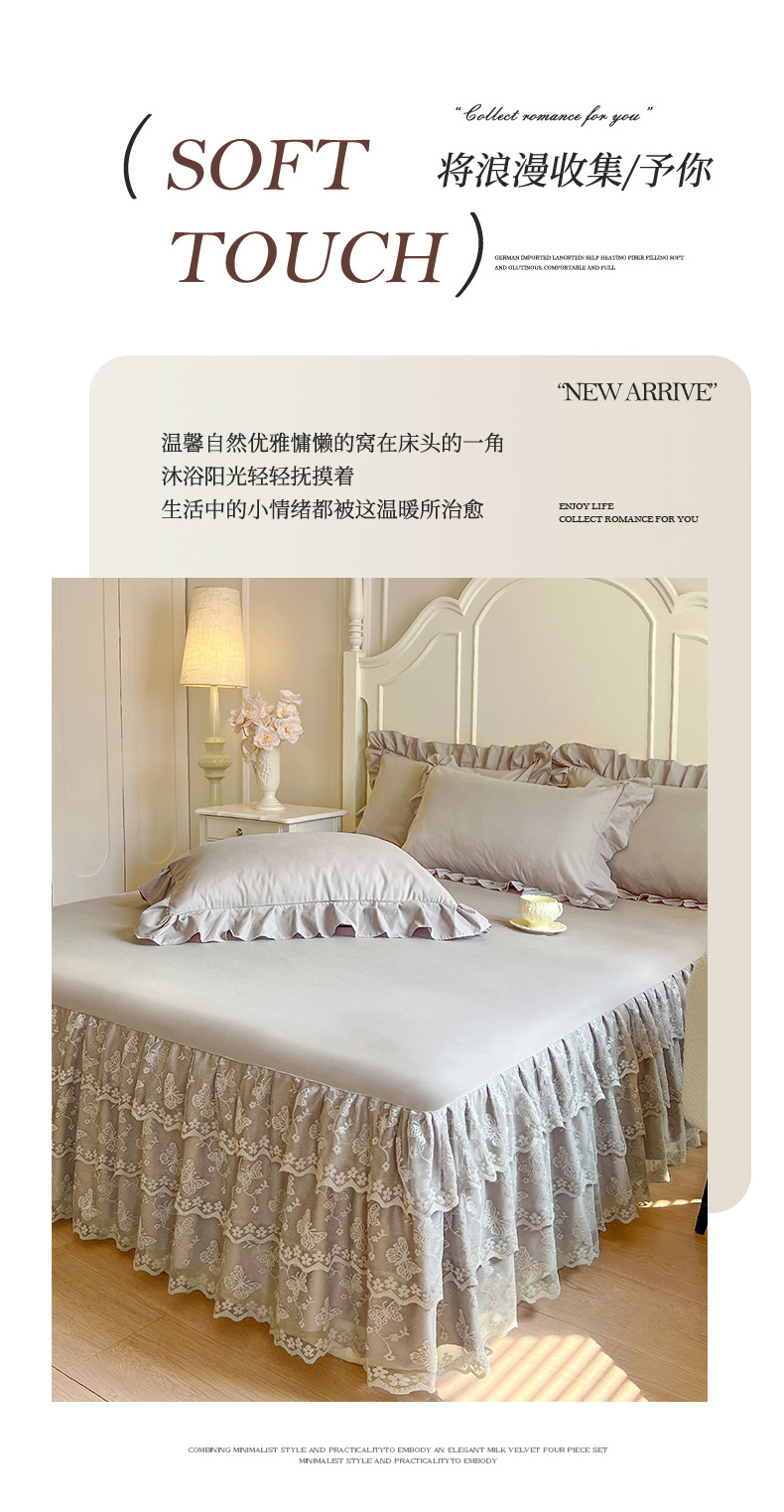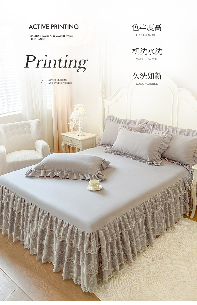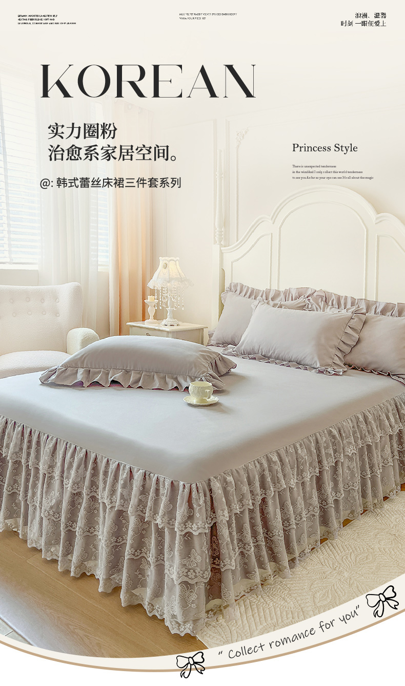 (总)乐朵家居 2025新款 25-1 芯语 蕾丝床裙,豆沙,灰,卡其,绿,米,紫
