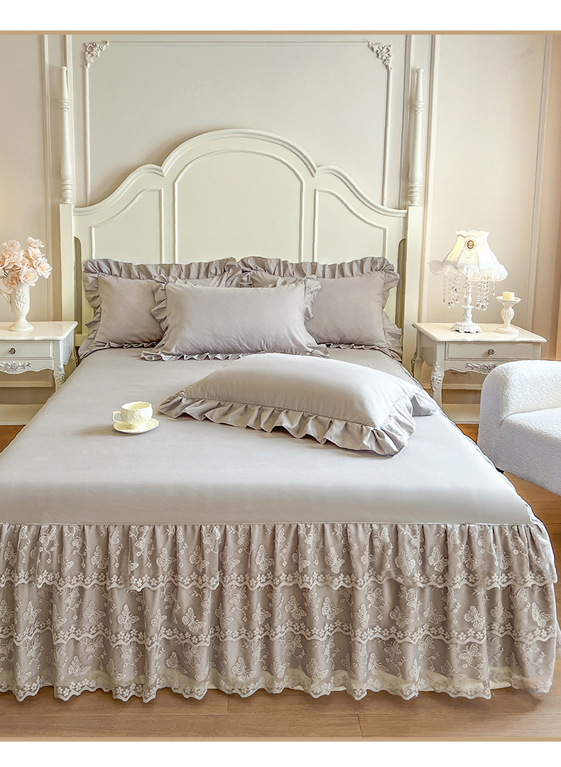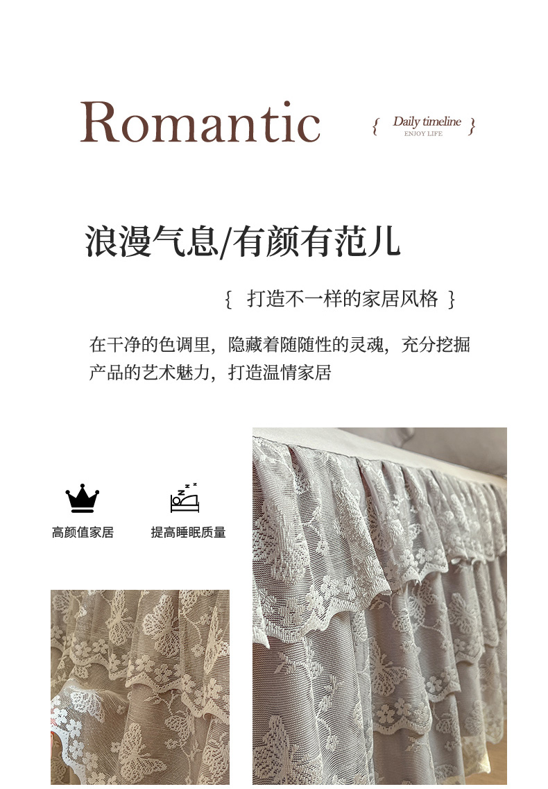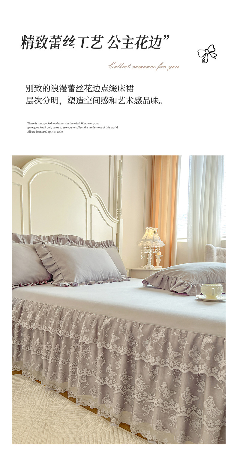 商品名称:乐朵家居 2025新款 25-2 蝶影 蕾丝床裙 -灰