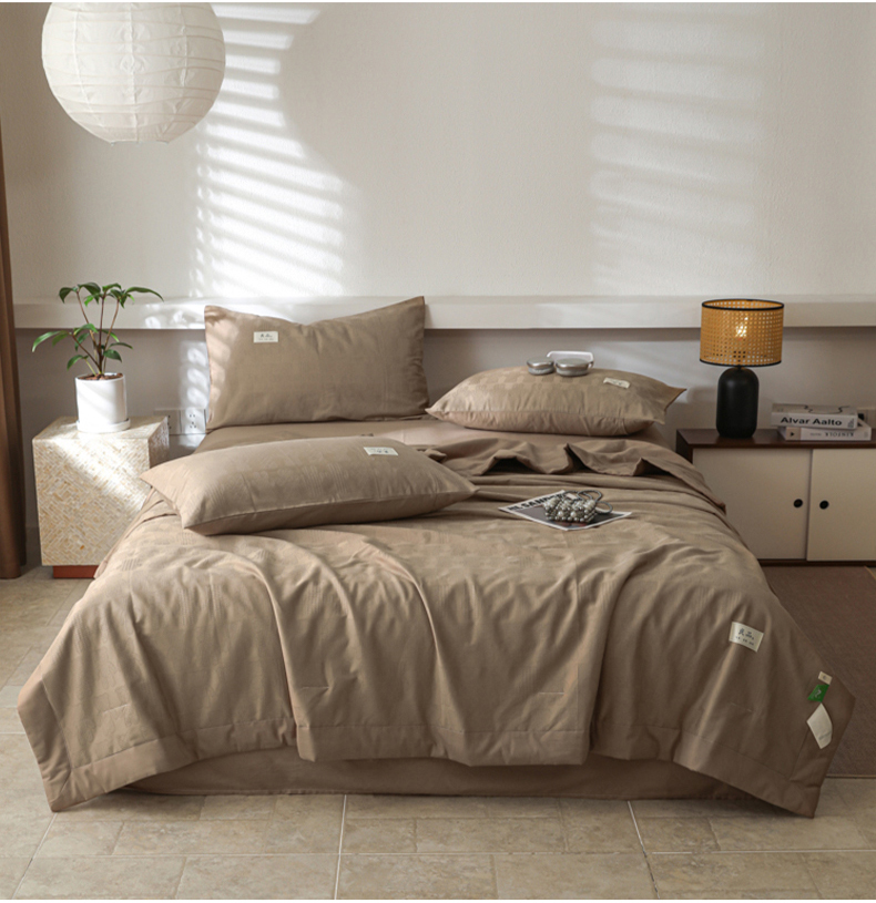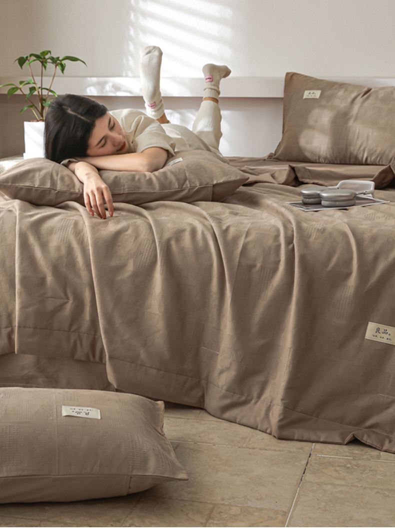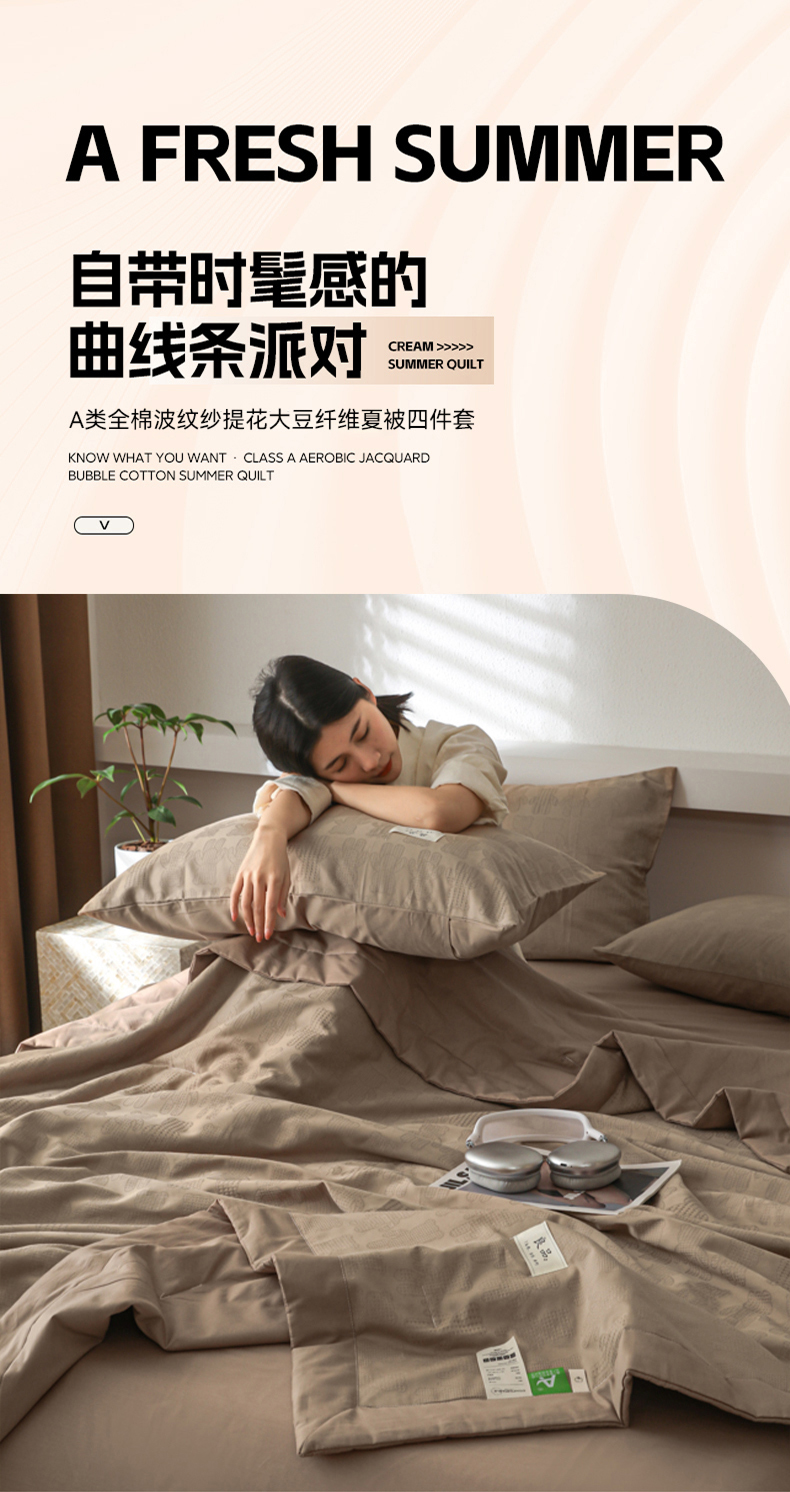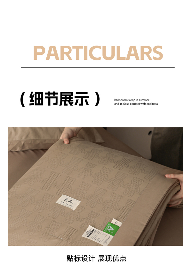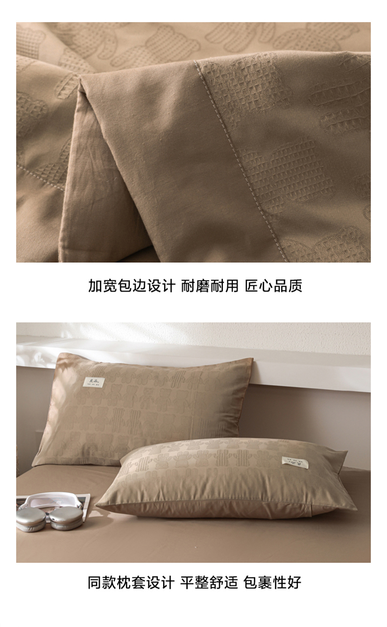 当前位置: 91家纺网 > 商品网购 > 床品套件 > 四件套 > 全棉普通四件套 > 眠博士 2025新款A类全棉波纹纱提花大豆纤维追忆包边夏被四件套 麦穗夏被-小熊卡其