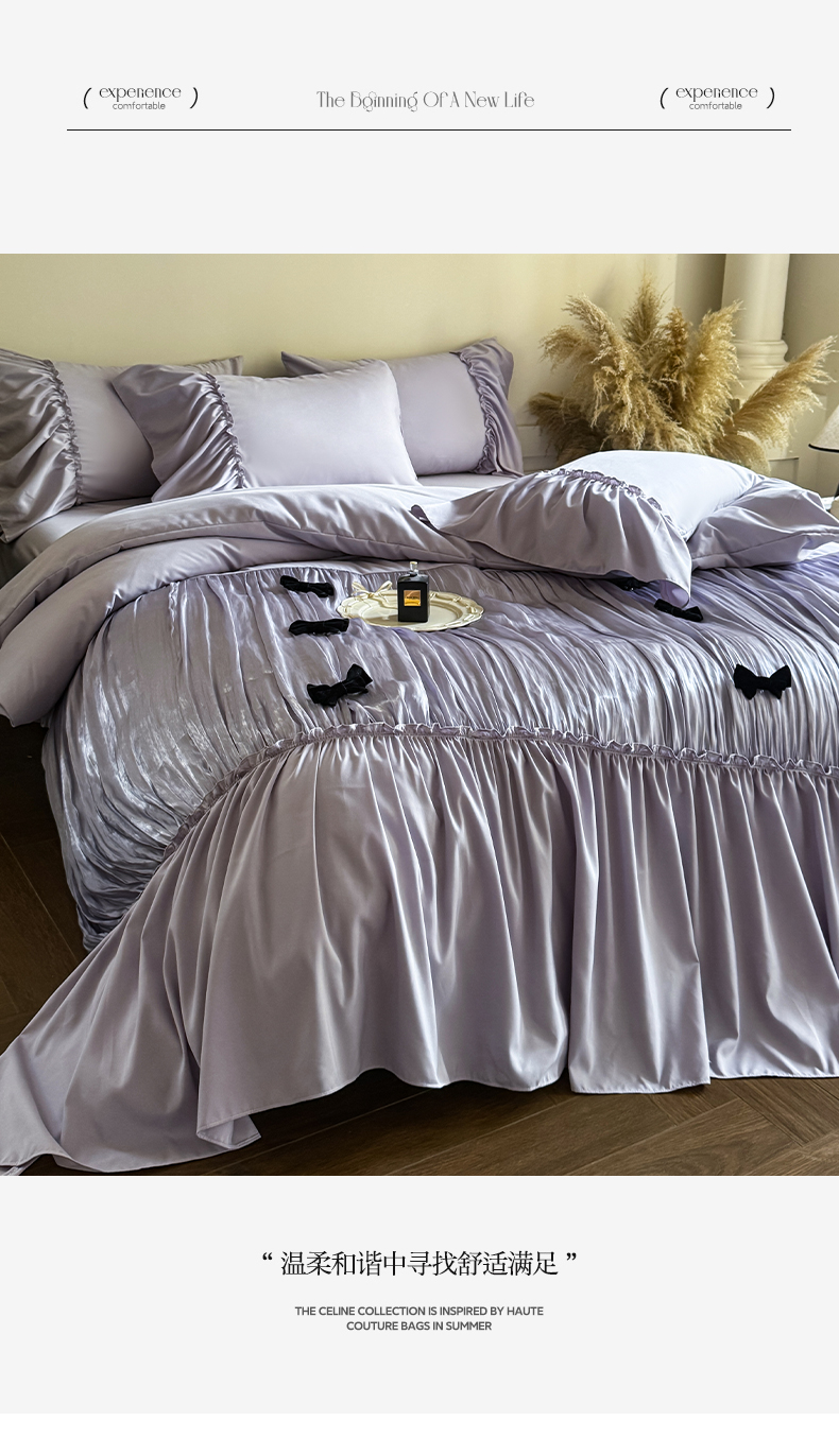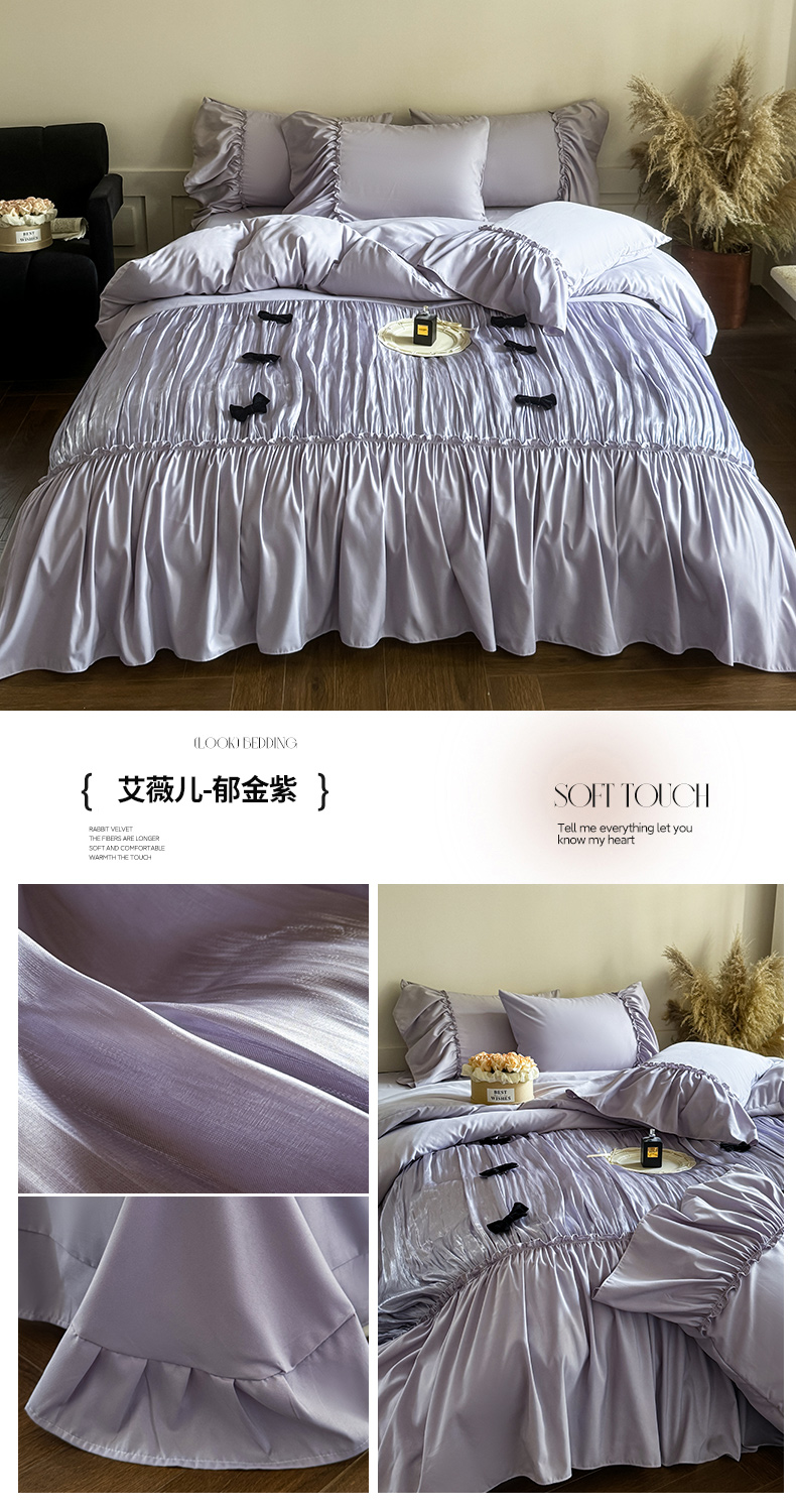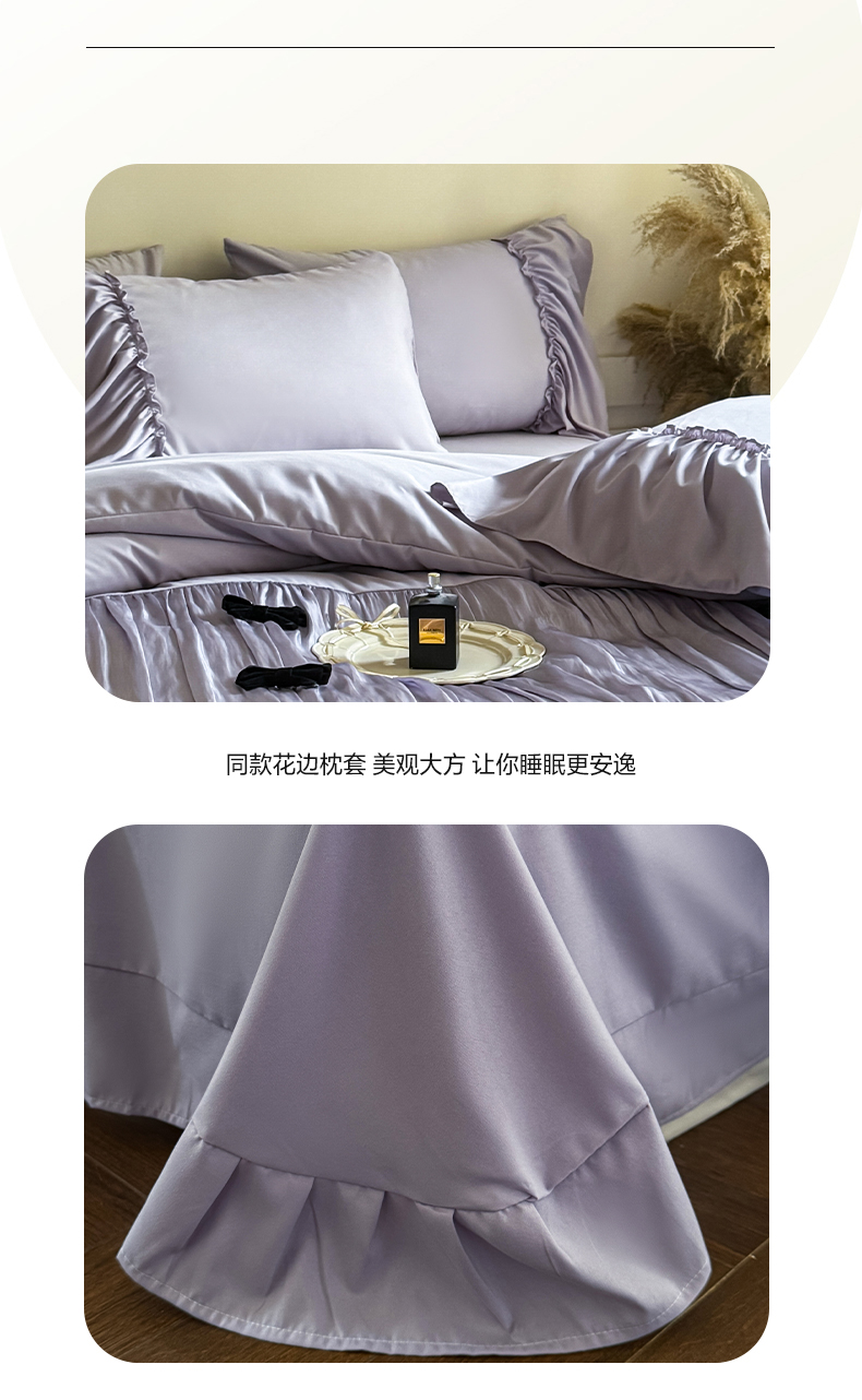 当前位置: 91家纺网 > 商品网购 > 床品套件 > 四件套 > 其它四件套 > 豪美鑫 2025新款亲肤花边四件套-艾薇儿 艾薇儿-郁金紫