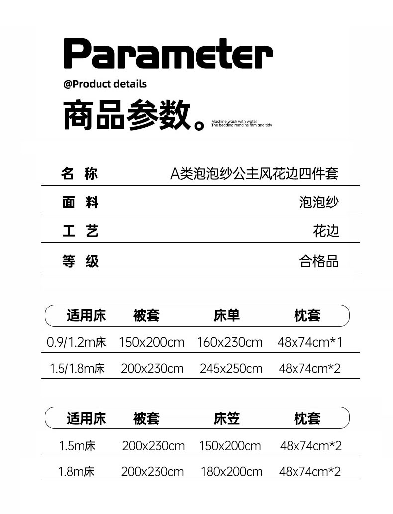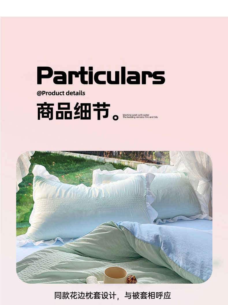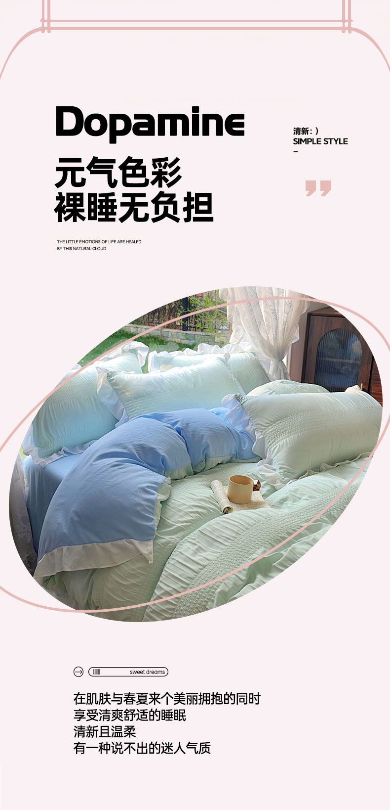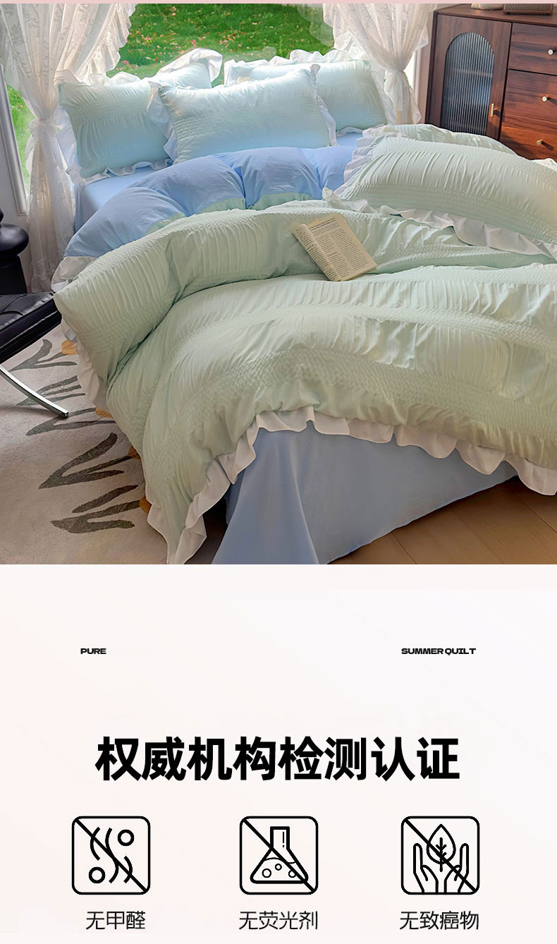当前位置: 91家纺网 > 商品网购 > 床品套件 > 四件套 > 其它四件套 > 灰鲸2025新款泡泡纱公主风花边款四件套 泡泡纱花边款-薄荷绿+天空蓝