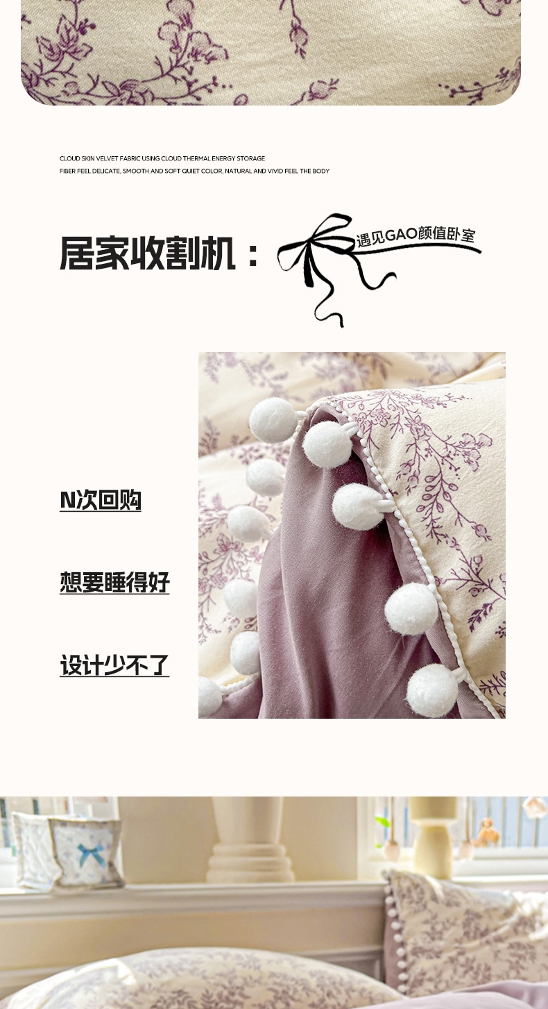 商品名称:朵朵家纺 2025新款球球款云感四件套水洗棉简约风小碎花被套三件套(可定制尺寸 ) 紫颜