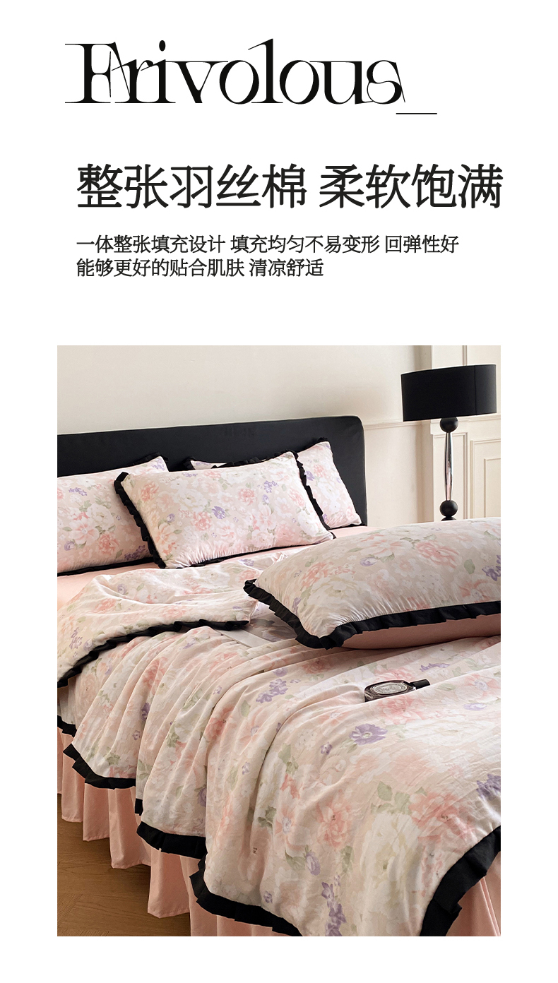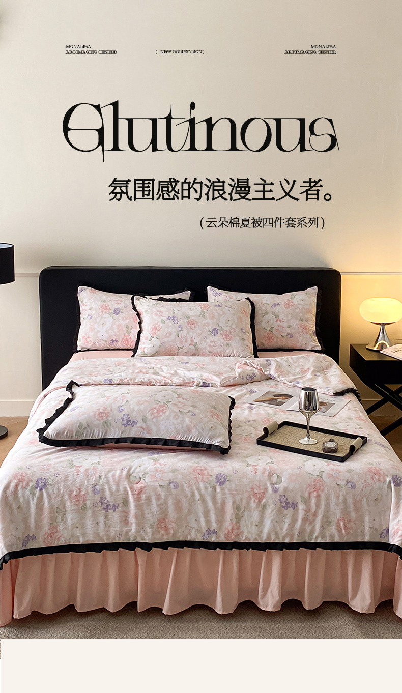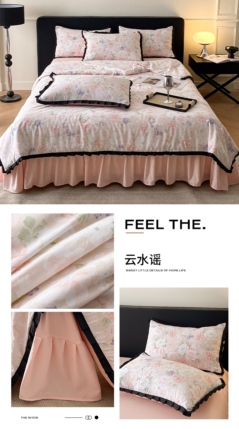 商品名称:2025新款花边床裙款印花云朵棉夏被四件套水洗棉仿全棉纯棉夏凉被空调被 云水谣