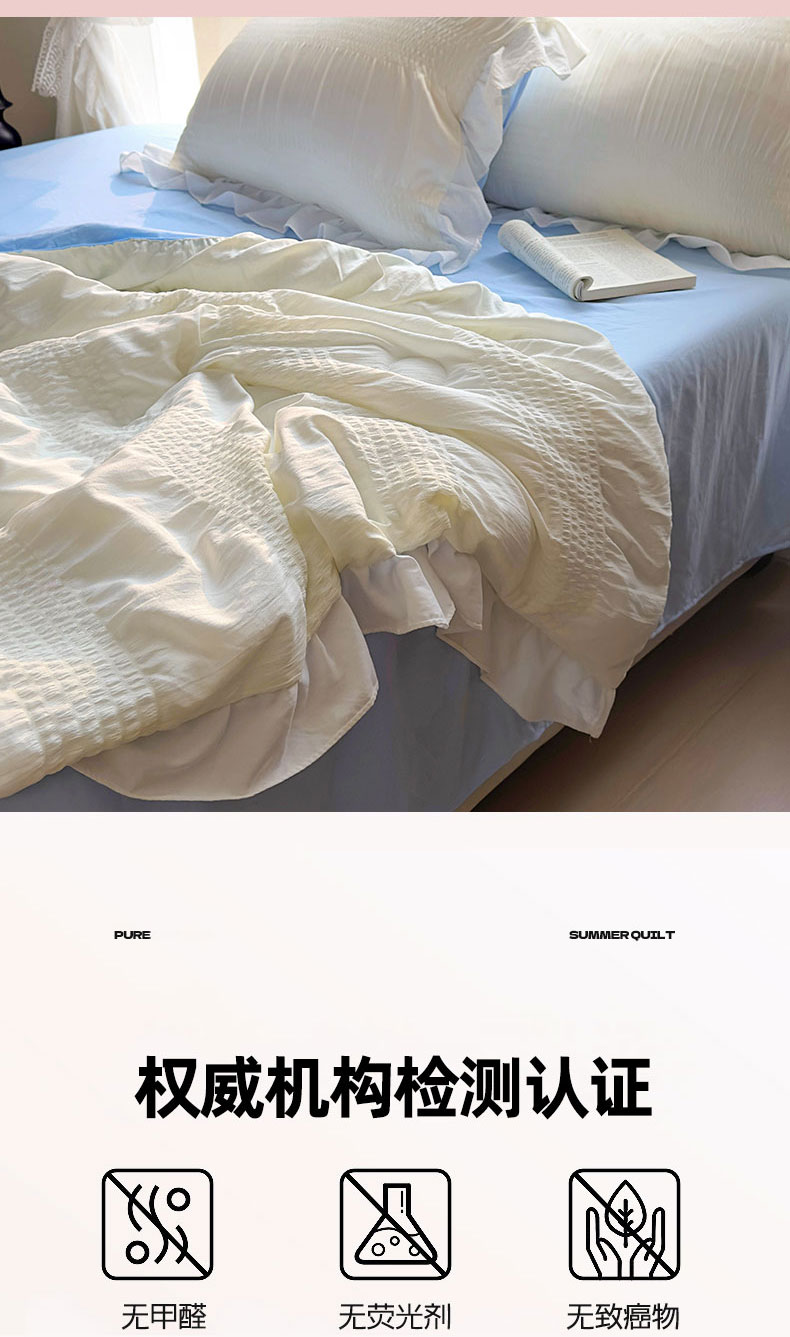 当前位置: 91家纺网 > 商品网购 > 被子 > 夏被 > 灰鲸2025新款泡泡纱公主风花边款夏被夏凉被空调被四件套系列 泡泡纱花边款-奶昔白+天空蓝