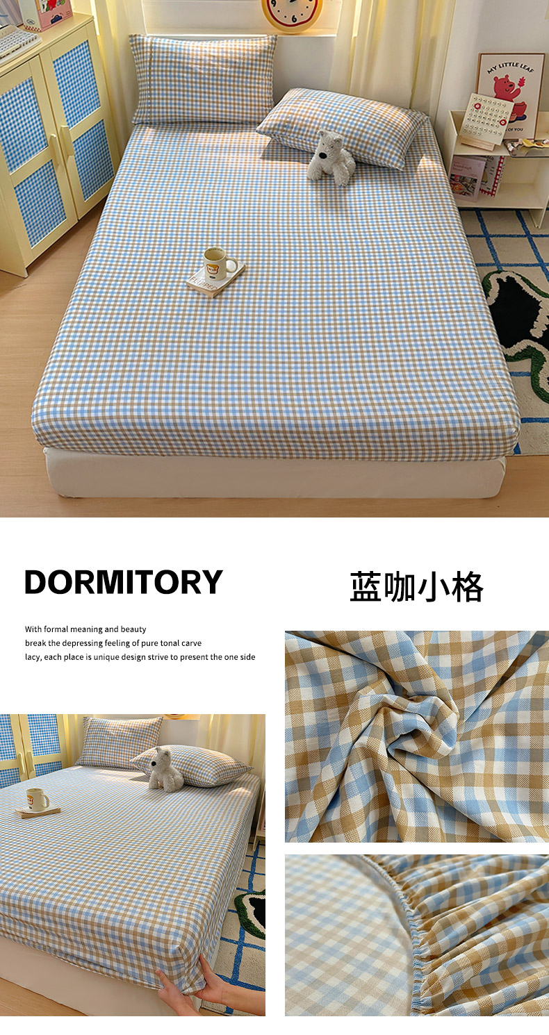 (总)十一家居 2025新款亲肤裸睡云朵棉水洗棉床笠-洛可系列,豆沙小格,粉咖小格,黑小格,蓝调大格,蓝咖小格,蓝小格,糖果小格,桃灰格