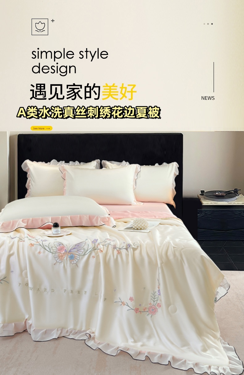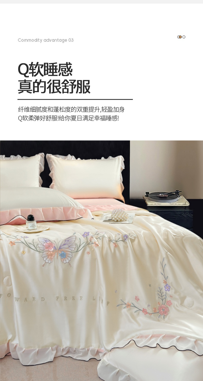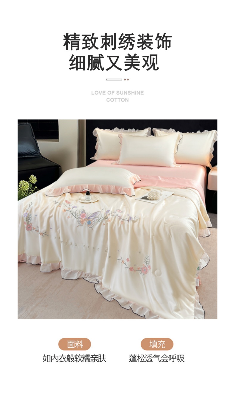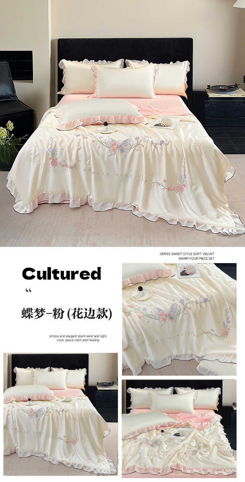 当前位置: 91家纺网 > 商品网购 > 床品套件 > 四件套 > 其它四件套 > 梦舒羽 2025新款刺绣水洗真丝花边夏被四件套宿舍夏凉被床单枕套三件套-蝶梦花边款 蝶梦-粉 花边款